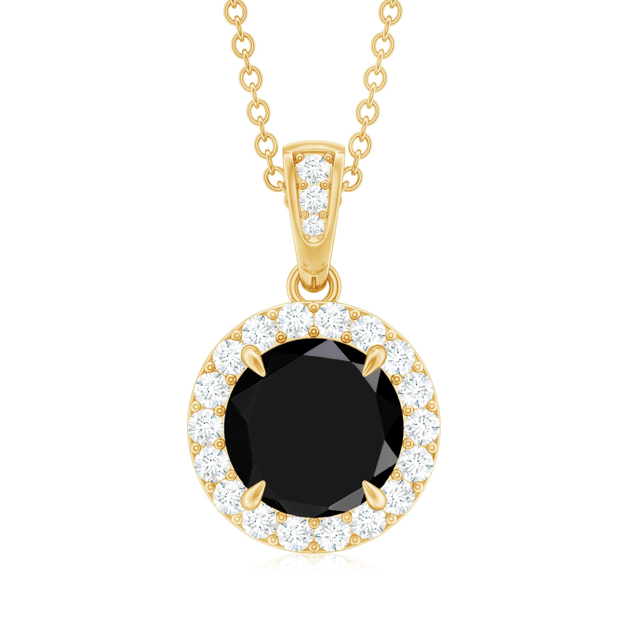 This simple yet elegant Halo Pendant Necklace is adorned with a Round Shape Black Onyx in the center secured by Claw Setting while dainty Round Shape Diamonds are studded as Halo and on the bail of the pendant. Give her a token of your love in the form of this Halo Pendant as an anniversary gift and make her feel special and appreciated on your day of commitment.