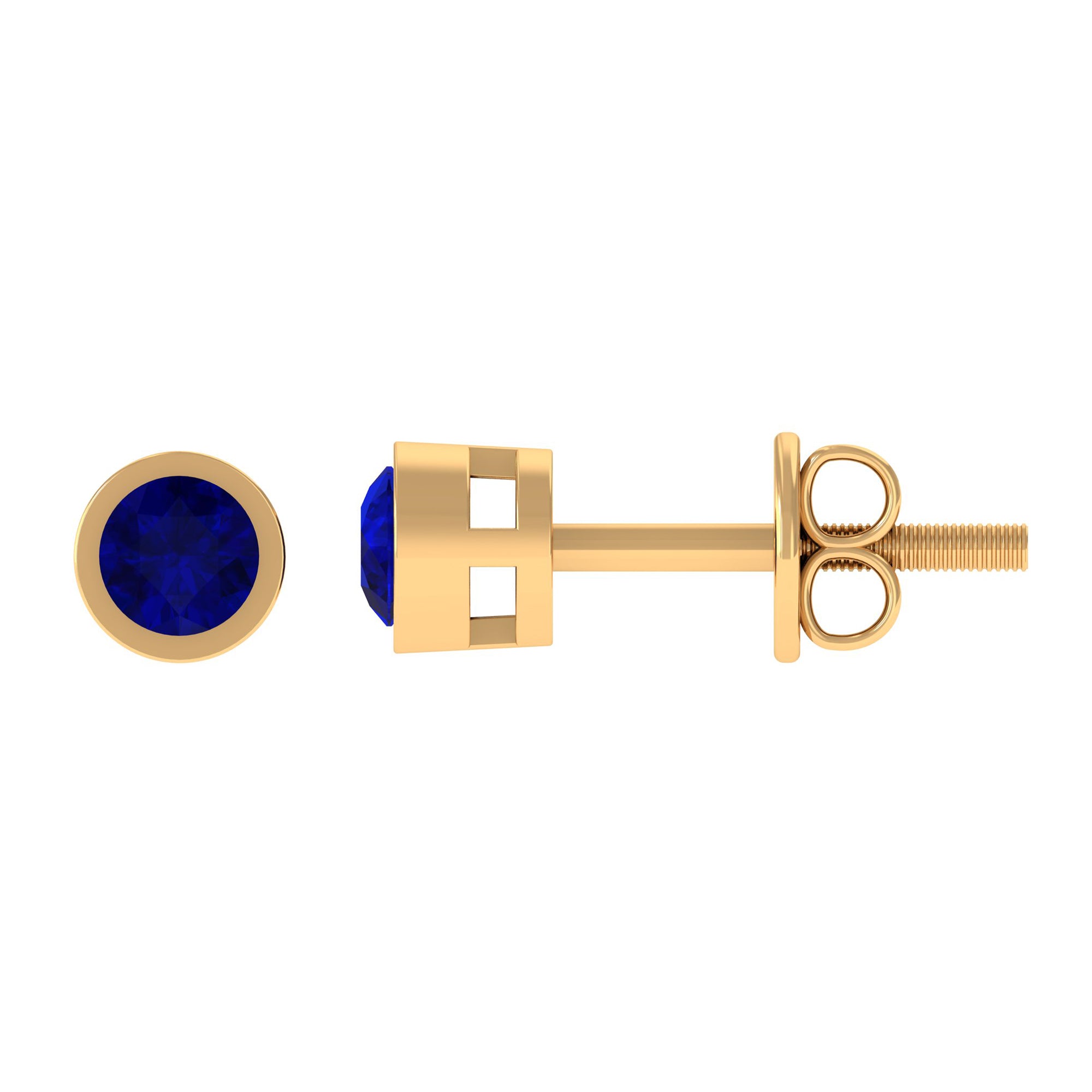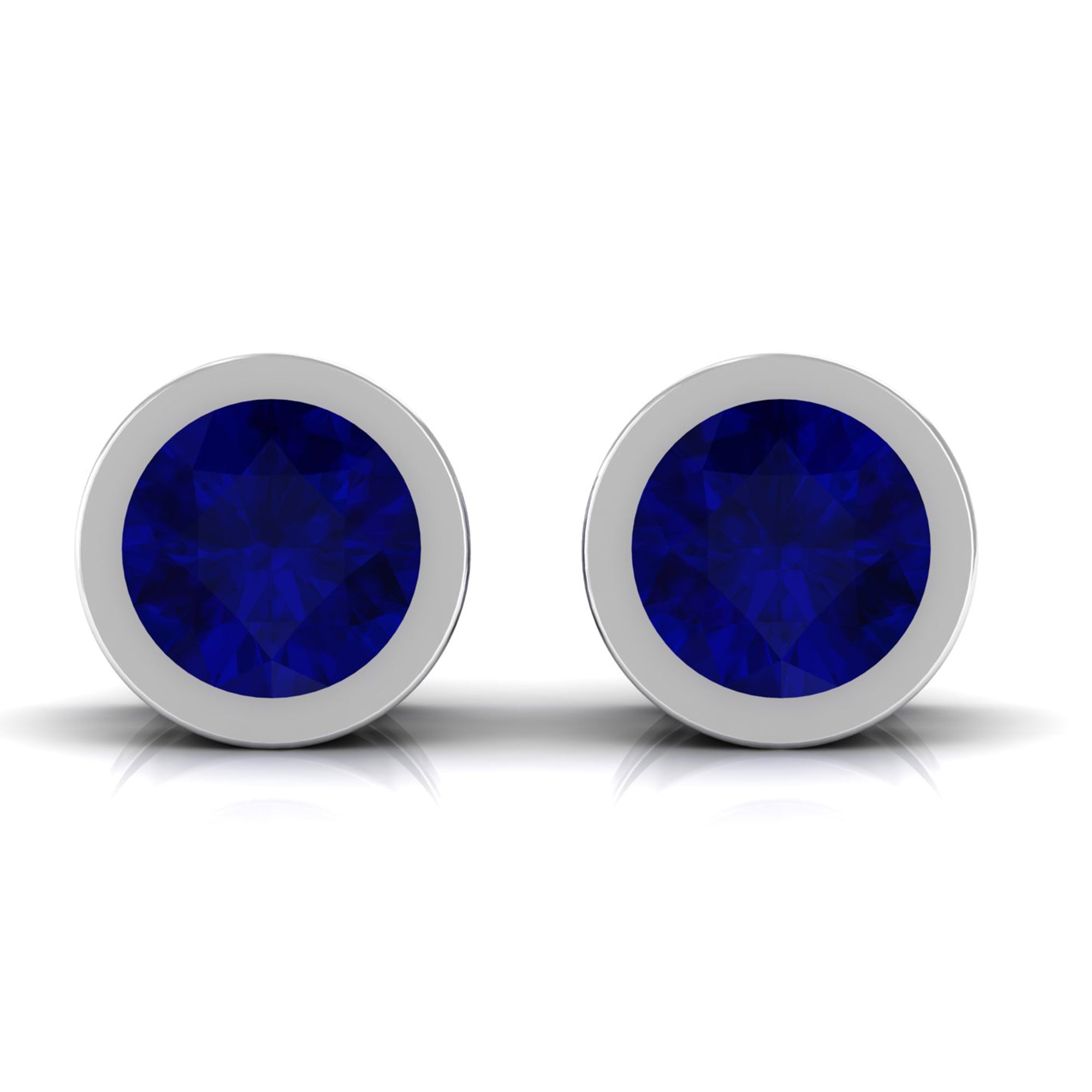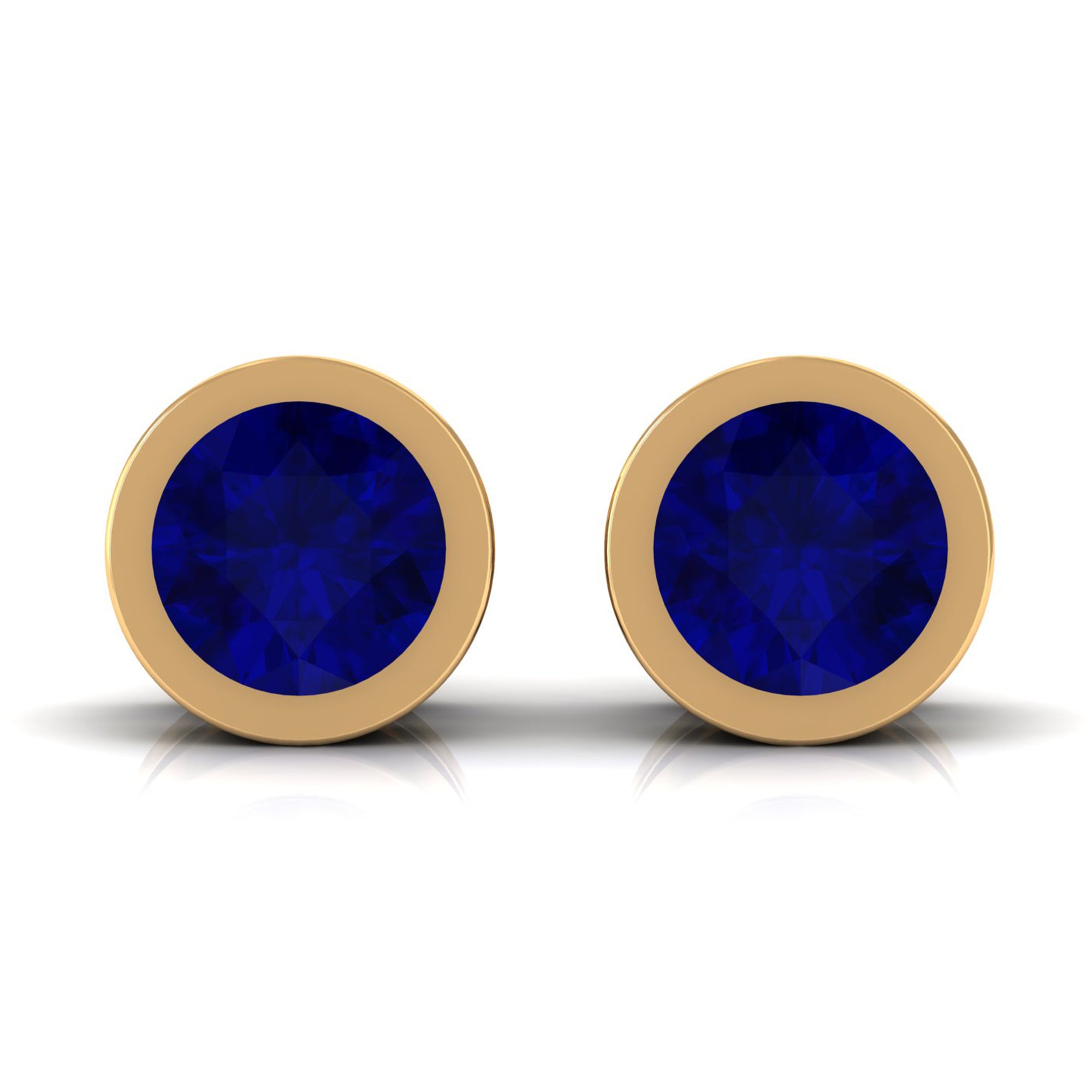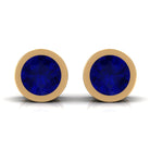 Genuine Blue Sapphire Round Solitaire Stud Earrings in Bezel Setting