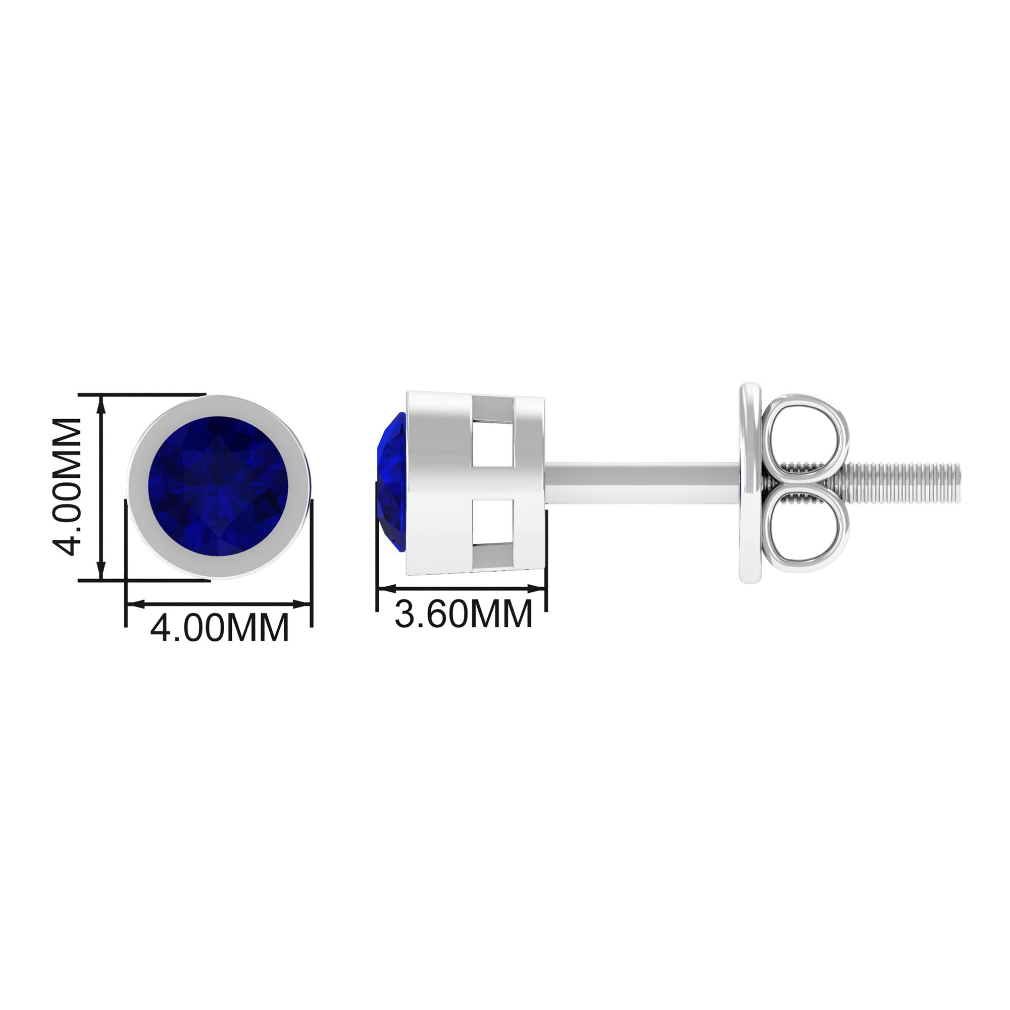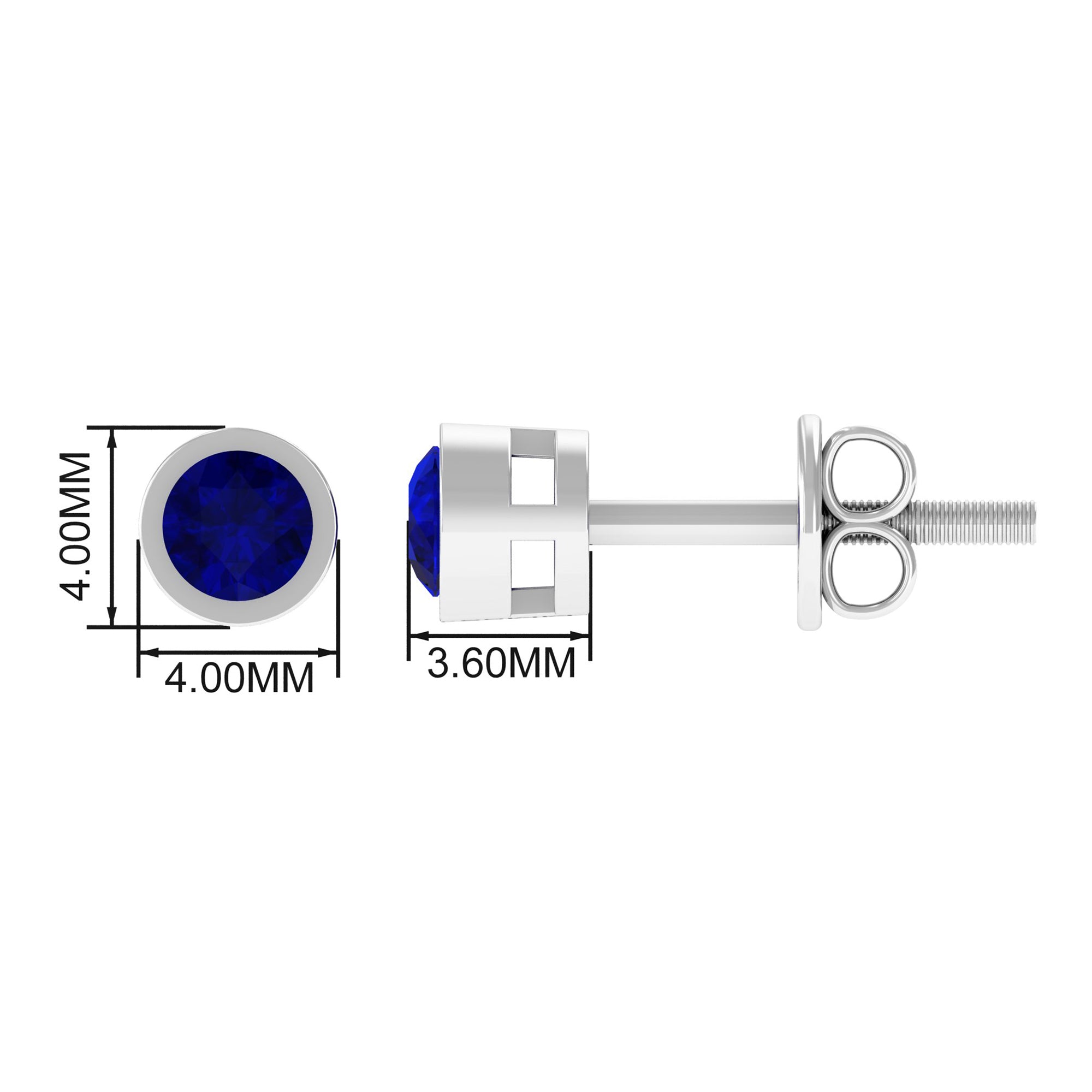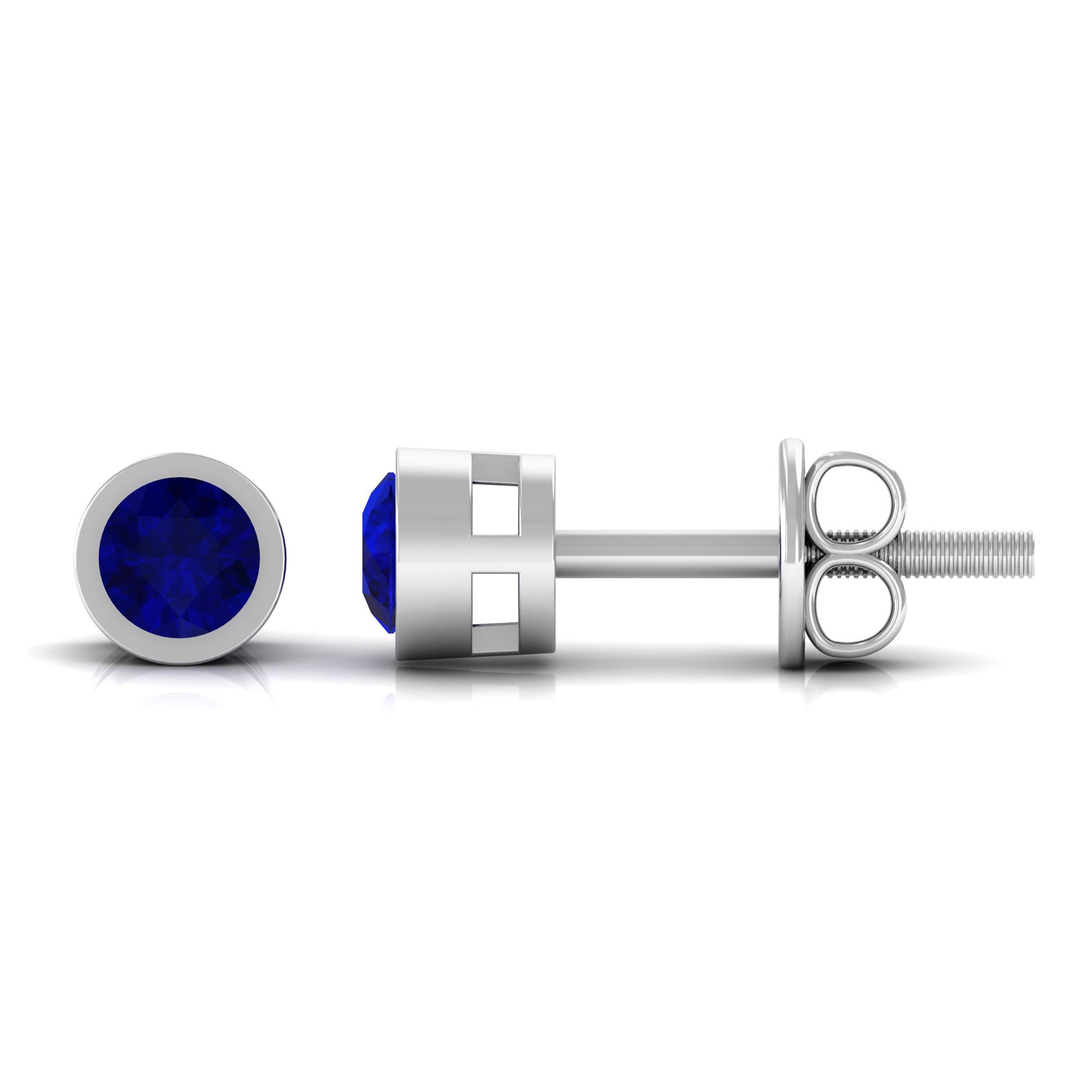 Genuine Blue Sapphire Round Solitaire Stud Earrings in Bezel Setting