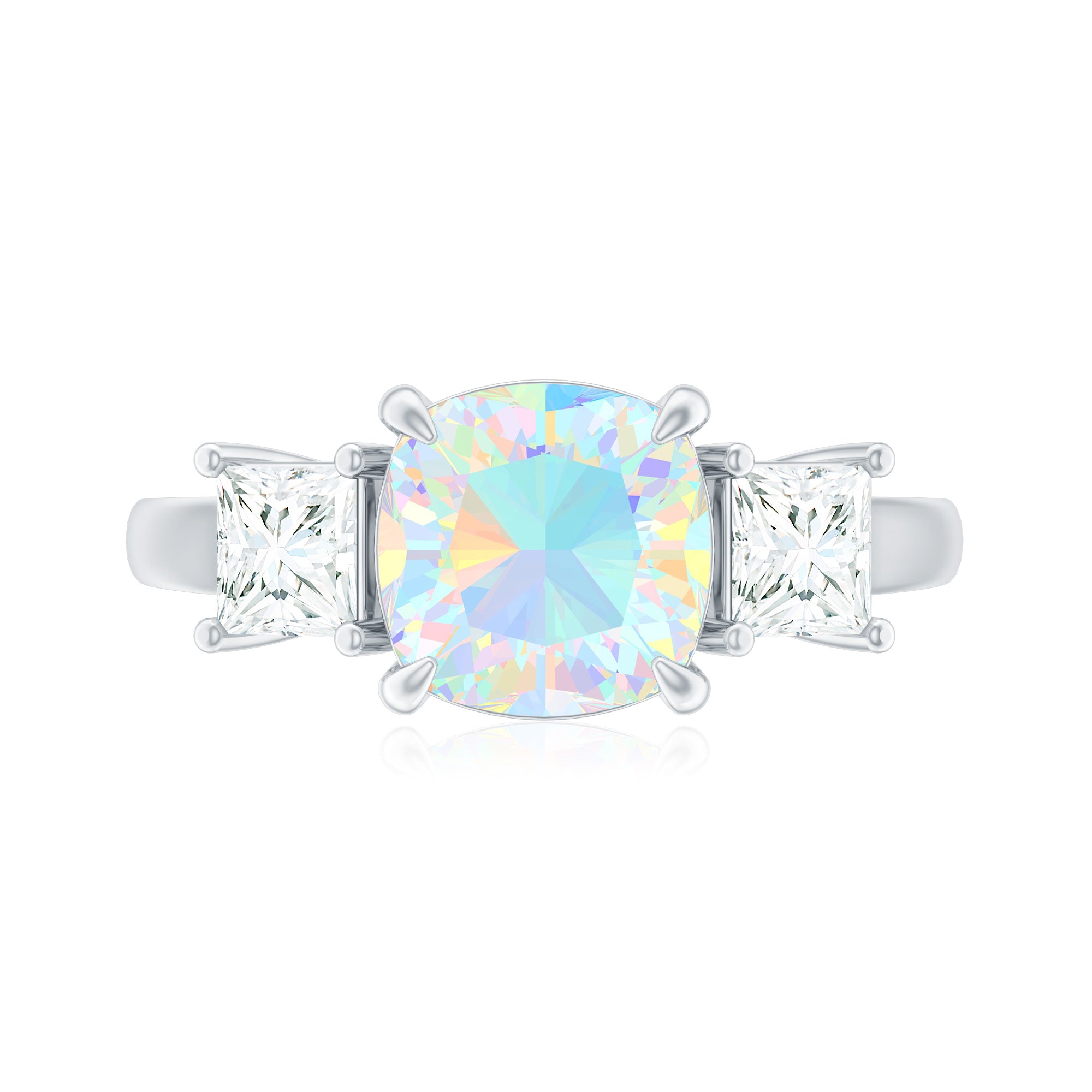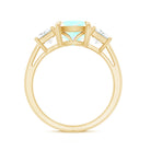Genuine Cushion Cut Ethiopian Opal 3 Stone Engagement Ring with Moissanite