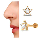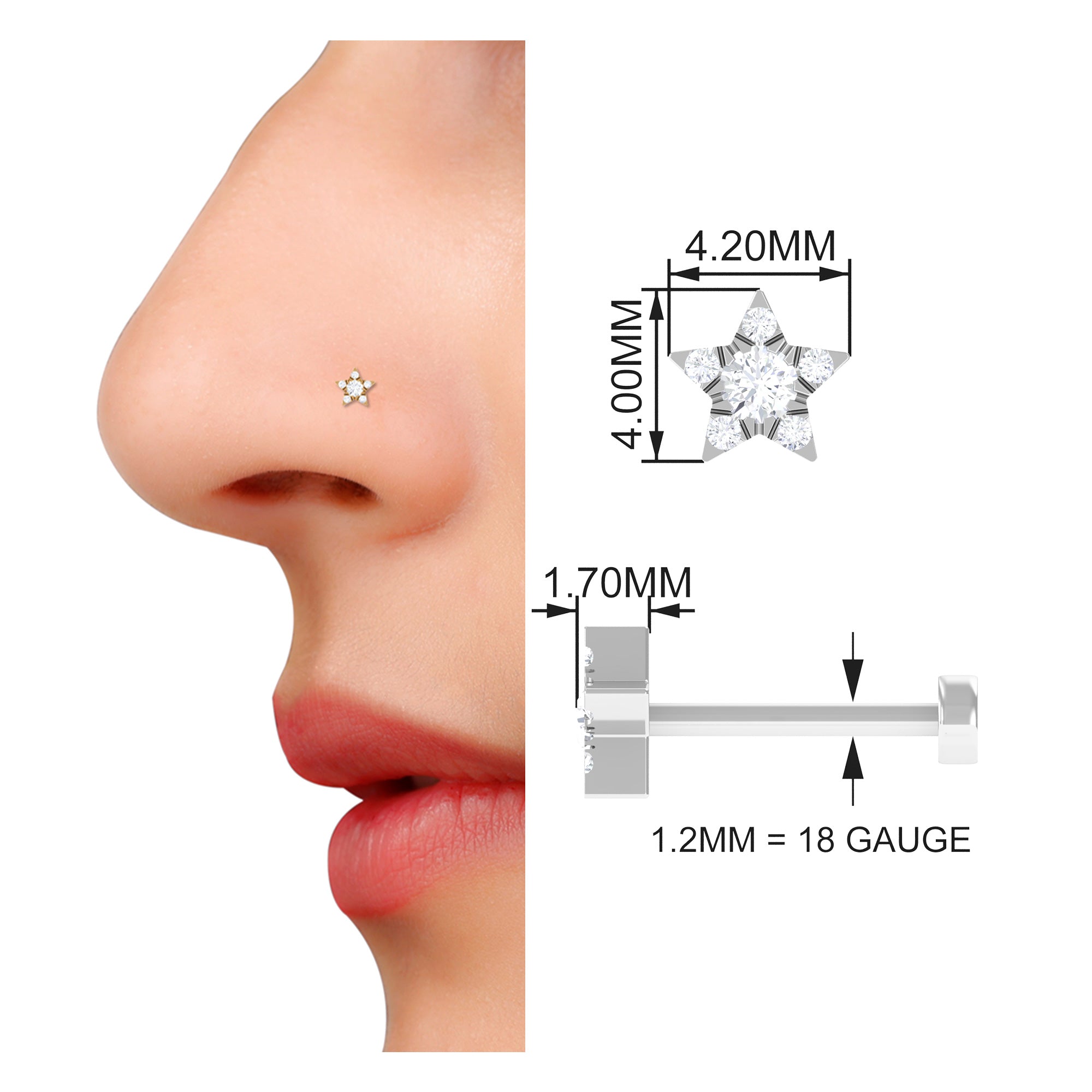 The Diamond Star Nose Pin is adorned with a Round Shape Diamonds in Pave Setting and crafted with Gold, making it a stunning addition to your collection of Nose Jewelry. This Nose Piercing features a simple Flat Back Closure to keep it securely in place. Elevate your look with this elegant and unique Nose Pin and make it a special gift for your loved one.