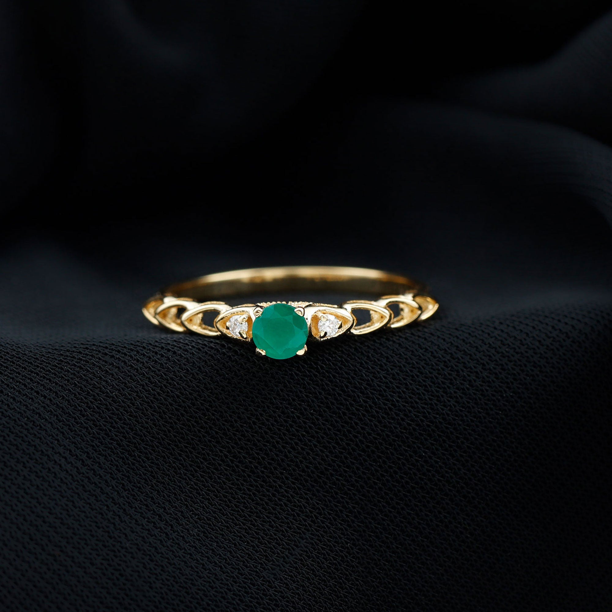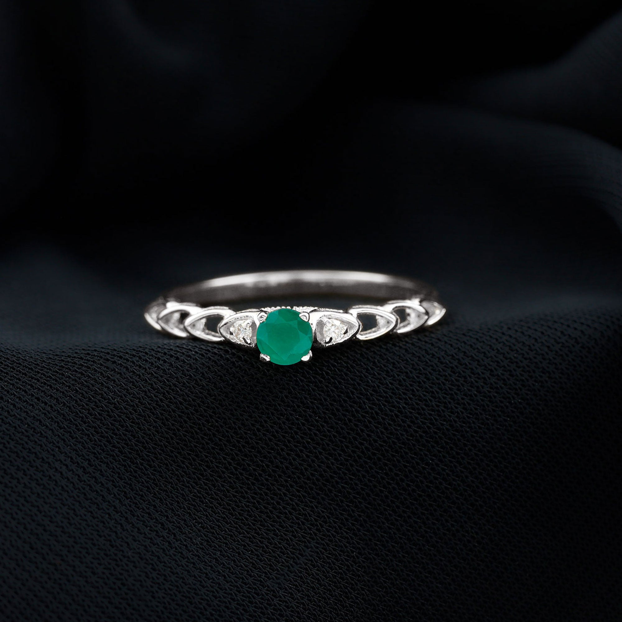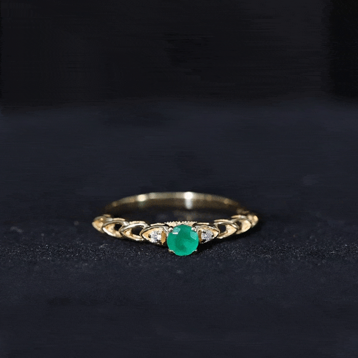 There is something effortlessly romantic about this Emerald Promise Ring that intertwines just like two souls coming together. This Designer Emerald Ring features a unique interlocked band design that instantly catches the eye and tells a story of unity and connection. At the center sits a 5 MM round cut emerald, perfectly balanced between two sparkling diamonds on each side. The arrangement gives the Emerald and Diamond Ring a graceful flow, as if each stone and curve were made to complement the other. The overlapping bands add a modern twist to this Emerald Proposal Ring, symbolizing how two lives can weave together while still keeping their own shine. Every tiny diamond accent brings a soft sparkle, making the piece both delicate and striking. It is the kind of ring that looks just as beautiful with a casual outfit as it does for special occasions. Thoughtfully crafted with AAA quality emerald and HI-SI quality diamonds and precise detailing, this Commitment Ring for Her represents love that is both strong and graceful. Delivered in a premium jewelry box, it is ready to surprise someone special or treat yourself to something you will treasure every day.