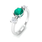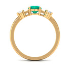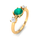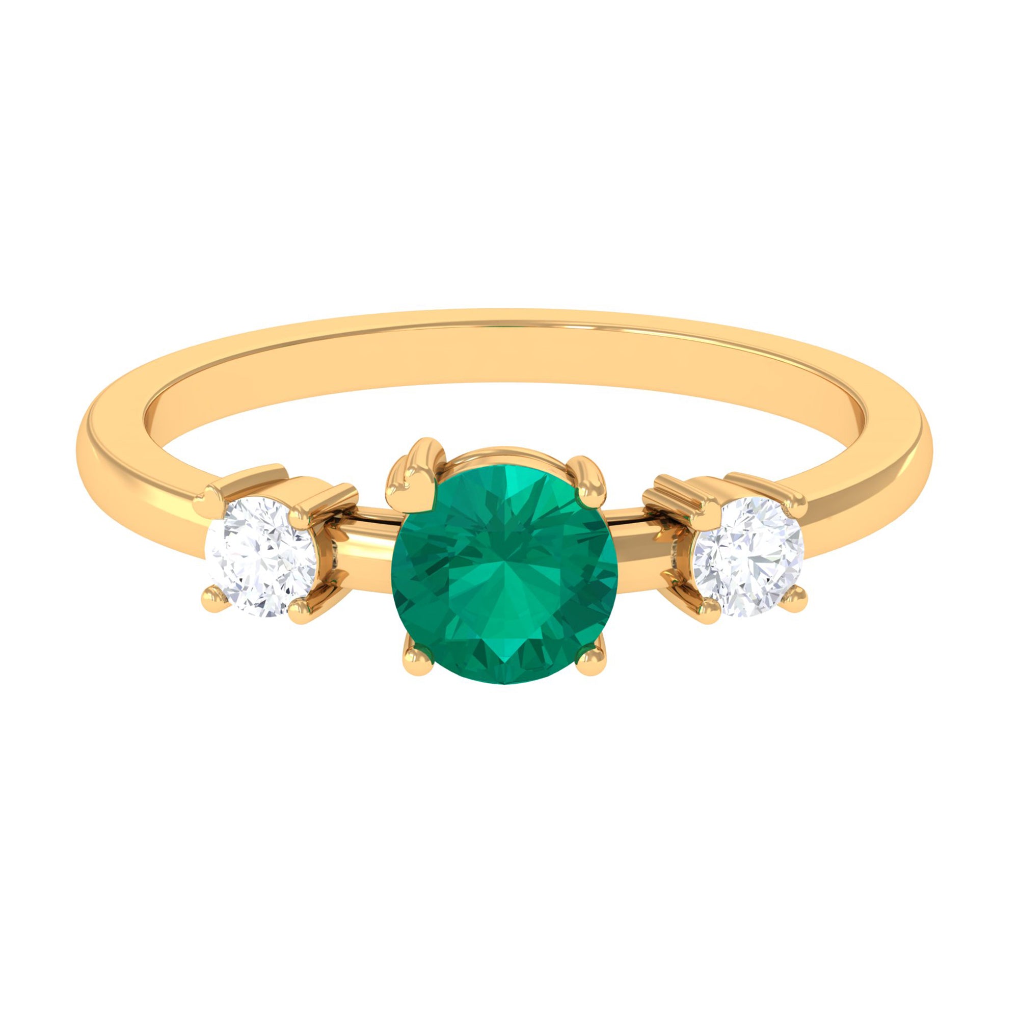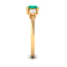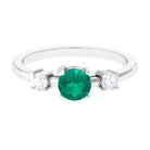 Elevate your everyday elegance with this handcrafted Emerald Promise Ring, featuring 5mm round shape Emerald set at the center in a prong setting with round shape diamond accents. This Minimal Emerald Ring has three stones representing past, present and future. Whether gifted as a promise ring or worn as a stylish everyday piece, this ring radiates timeless beauty with a touch of handmade charm. An elegant Emerald Ring with an eternal design that is always fashionable, set with a 1ct green emerald in the center and diamonds on both sides. Emerald has AAA quality and diamond has HI color SI clarity. Designed with elegance and consideration, this Solitaire Emerald Ring is ideal for everyday use or as a meaningful present to commemorate a promise, anniversary, birthday, or significant achievement. Its subtle design exudes timeless beauty, rendering it a flexible accessory that enhances any fashion. Featuring classic detailing and a gentle luster, this Solitaire Promise Ring embodies a serene sophistication that leaves a memorable impact. Presented in an attractive gift box, it is prepared to become a cherished element of your love narrative or a valued symbol of a relationship that deepens over time.