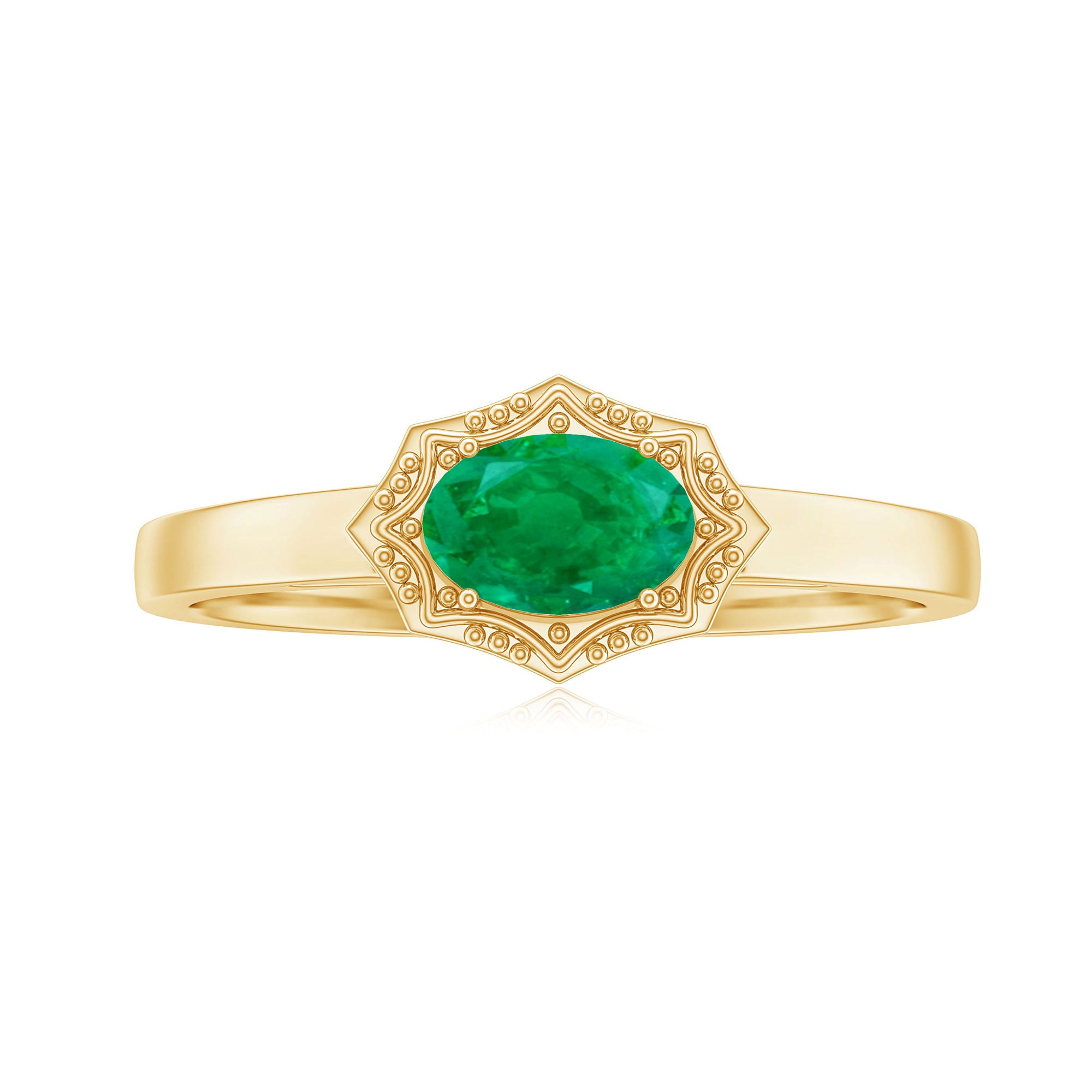 Celebrate timeless beauty with our Vintage Inspired Emerald Ring, a design that brings together classic charm and modern craftsmanship. At its heart lies a stunning 4X6 MM oval cut Emerald, set in an East West style. The solitaire Emerald is beautifully highlighted by intricate vintage-style detailing, inspired by the elegance of past eras. Every element of this design is crafted with care, from the smooth finish to the delicate patterns that enhance the ring’s sophisticated appeal. This Emerald Engagement Ring is a symbol of love, strength, and timeless grace. Its unique setting and refined design make it an ideal choice for an engagement ring, an anniversary gift, or a meaningful keepsake to celebrate life’s special moments. Combining traditional beauty with a modern touch, the Vintage Oval Engagement Ring captures attention with its simplicity and brilliance. Whether worn daily or on special occasions, it adds a touch of elegance and individuality to any look. With its radiant green gemstone and vintage-inspired charm, this Solitaire Emerald Ring perfectly expresses your enduring love and refined taste, a true statement of sophistication and everlasting style.