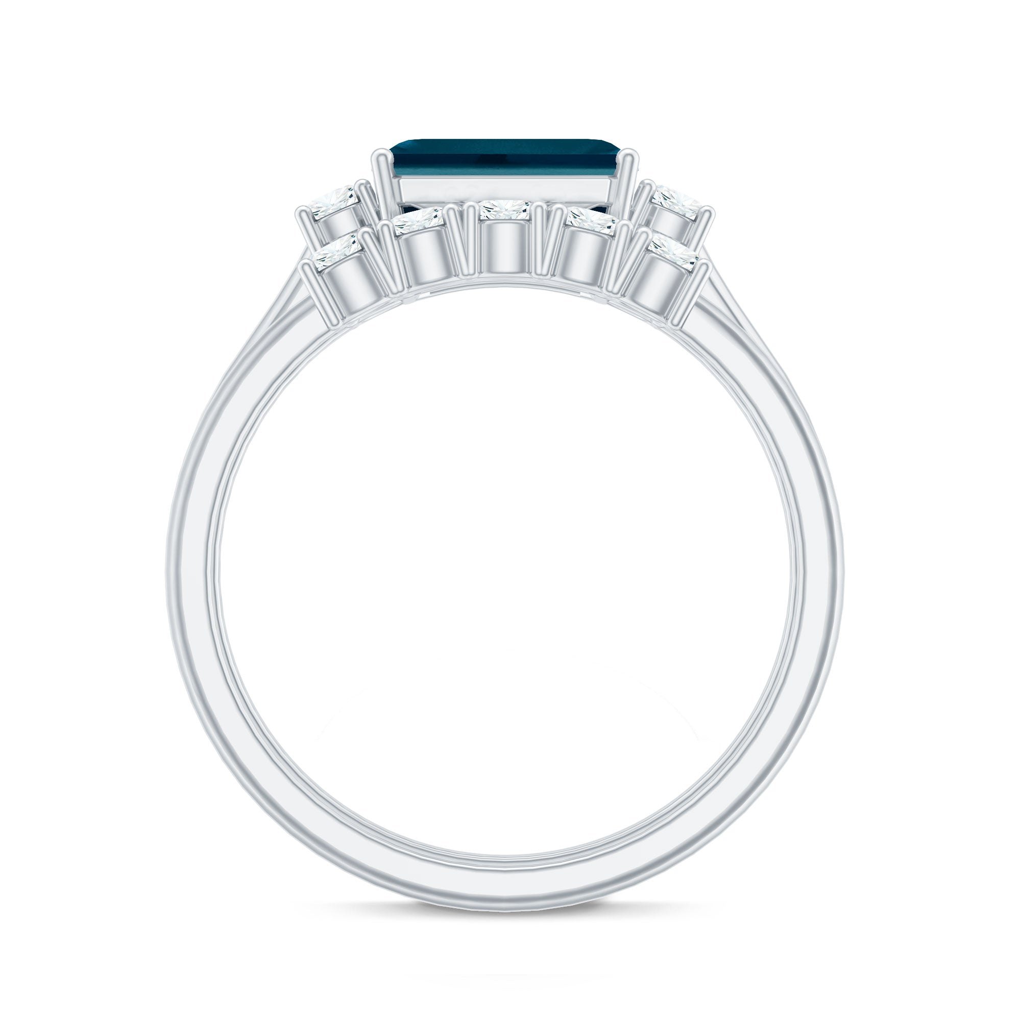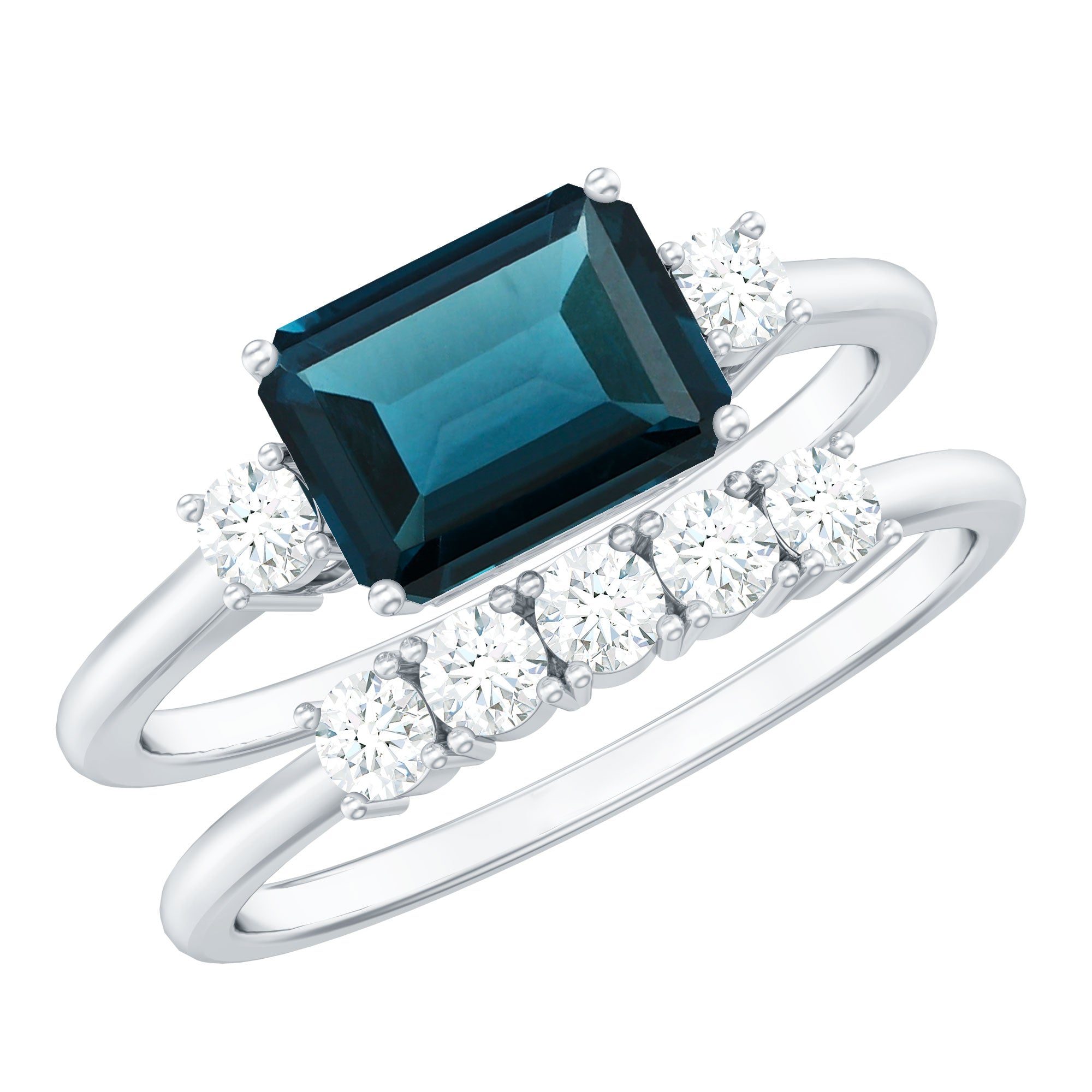 Genuine Emerald Cut London Blue Topaz Engagement Ring with Diamond Wedding Band