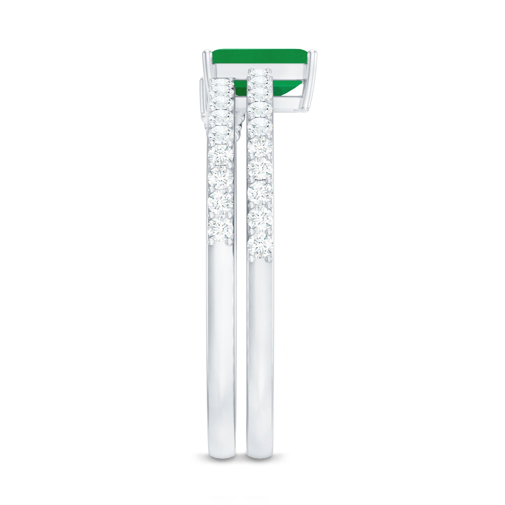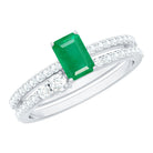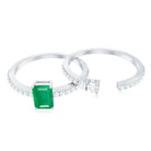 Indulge in the ultimate expression of love with this breathtaking Wedding Bridal Ring Set, designed to make every moment unforgettable. The Solitaire Engagement Ring of this 2 Piece Ring Set features a 4X6 mm Emerald Cut Emerald set in Prong Setting, flanked by sparkling diamond side stones that shimmer with every movement. The chic cuff-style Enhancer Ring adds a modern twist, adorned with dazzling Diamond stones that perfectly complement the engagement ring. Wear them together for a layered, statement look, or let each ring shine on its own for understated elegance. Delivered in a signature jewelry box and available in multiple sizes, this Emerald Cut Wedding Ring Set is a symbol of devotion, timeless beauty and everlasting romance. Perfect for the bride who dreams of sophistication with a contemporary edge, this Wedding Engagement Ring Set transforms every gesture into a sparkling celebration of love. Let this exquisite pair be the beginning of your forever, a treasure that captures the essence of enduring commitment.