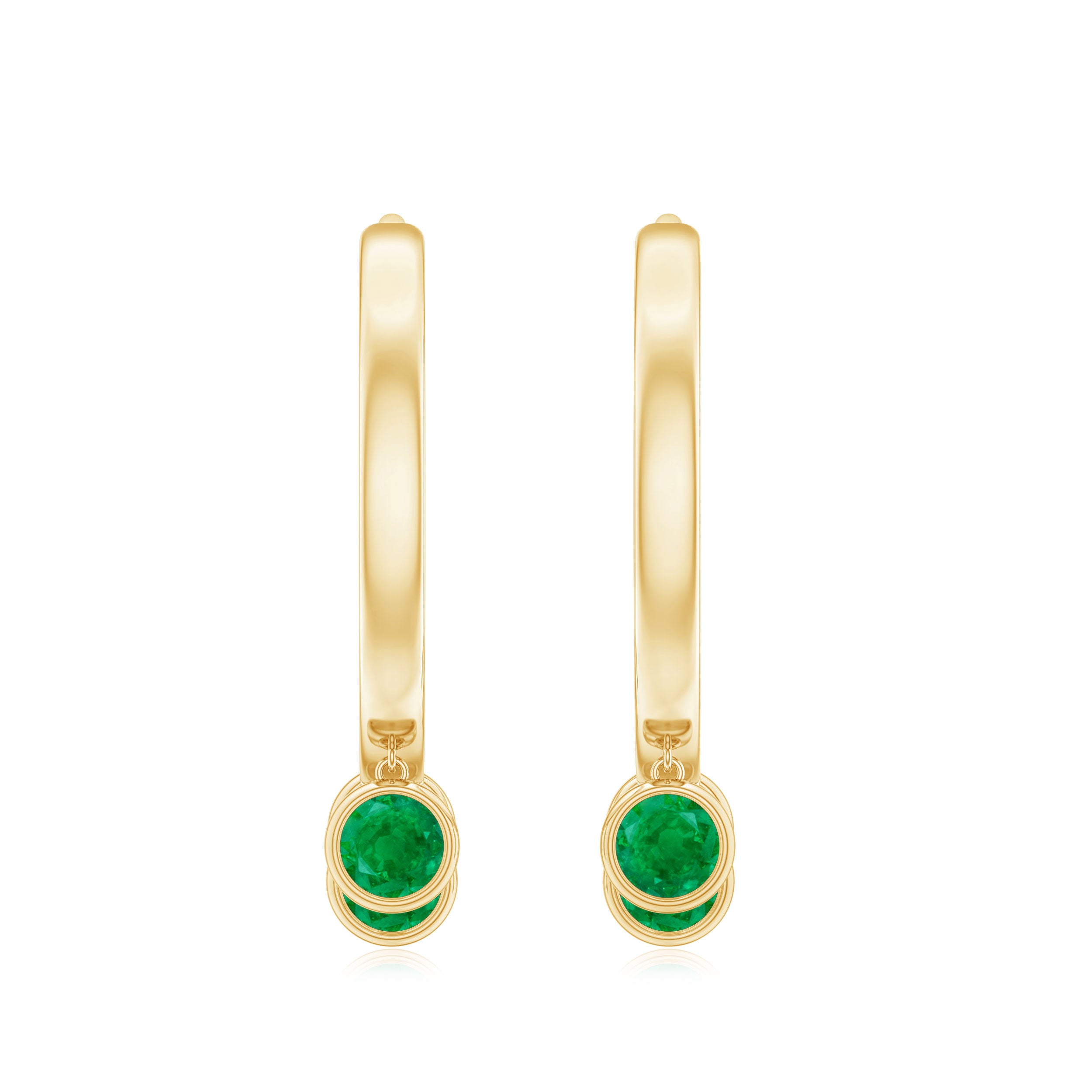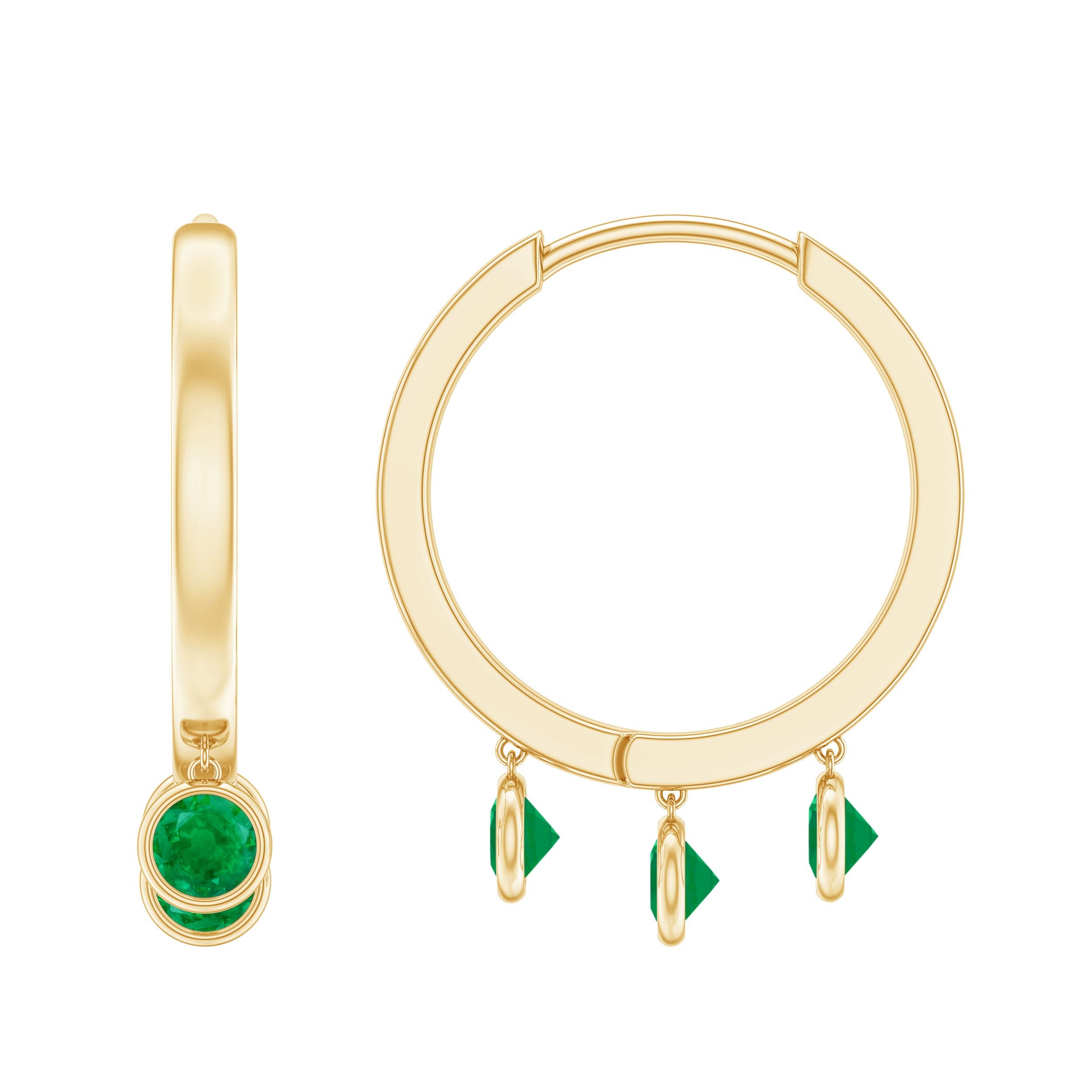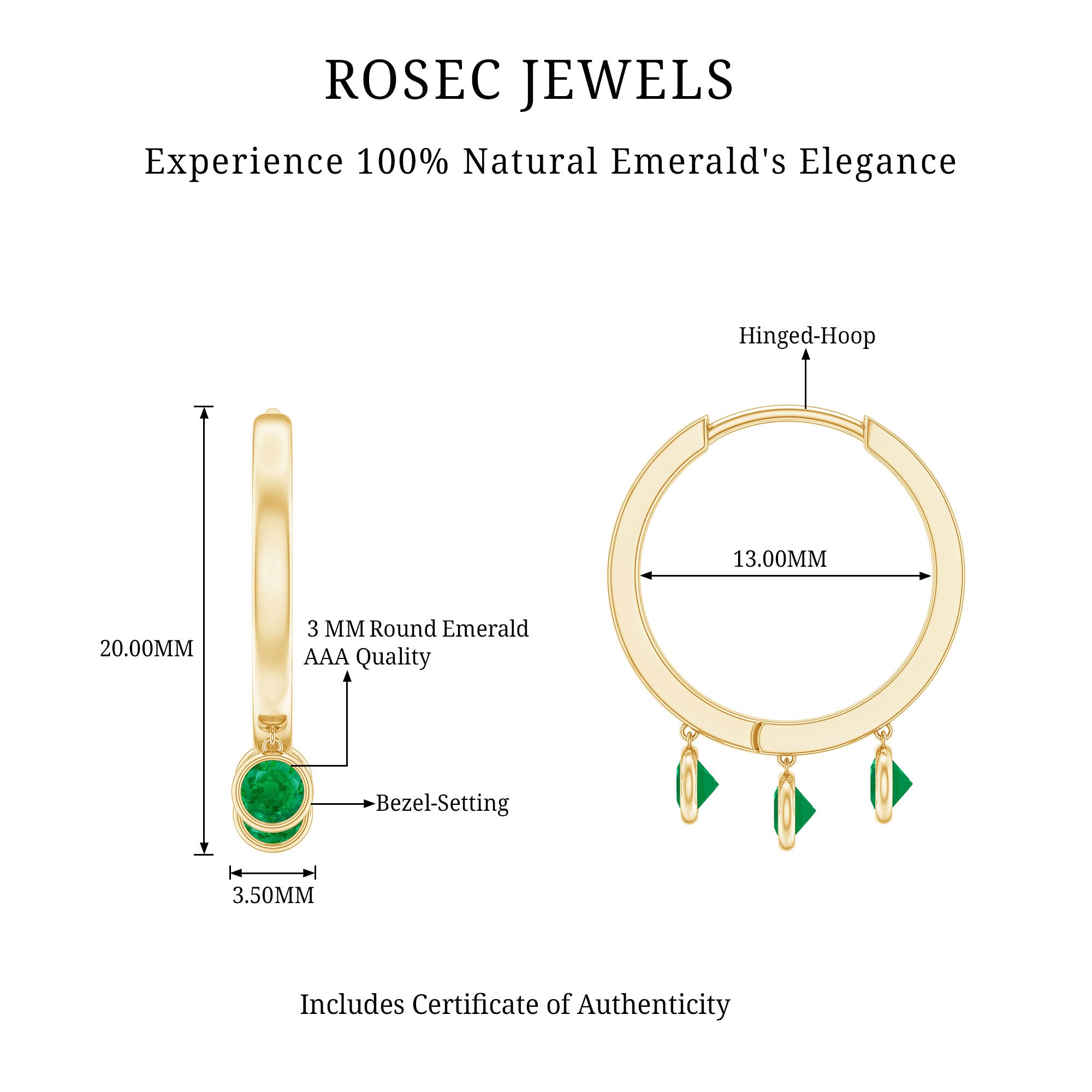 Add a touch of luxury to your look with these stunning genuine emerald three-stone hoop drop earrings. The earring features 3 MM three emerald gemstones in a drop and dangle style, each one hand-selected for its brilliance and color. The emeralds are suspended from delicate hoops, creating a graceful and elegant look. Whether youre dressing up for a special occasion or just want to add a touch of glamour to your everyday style, these earrings are sure to turn heads.