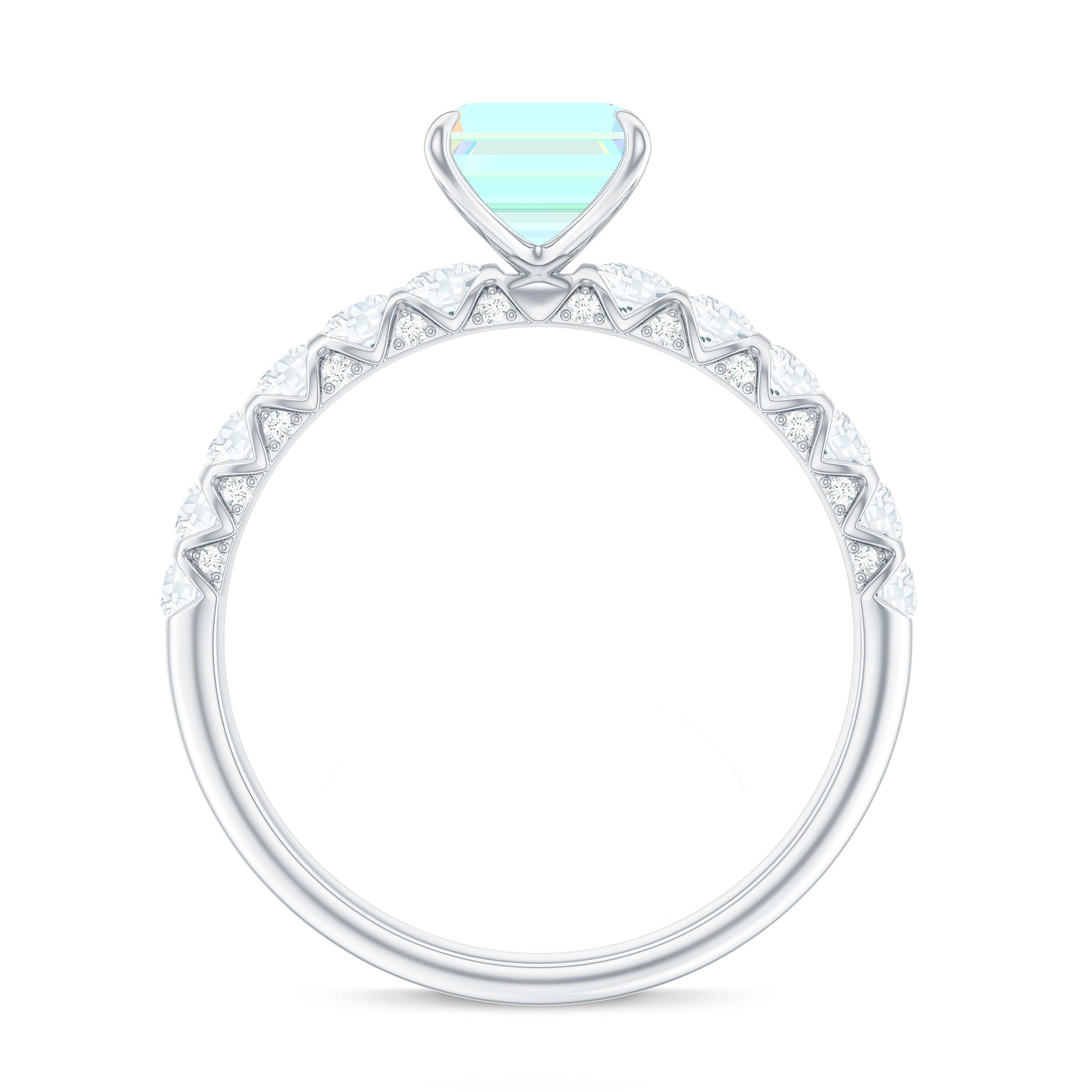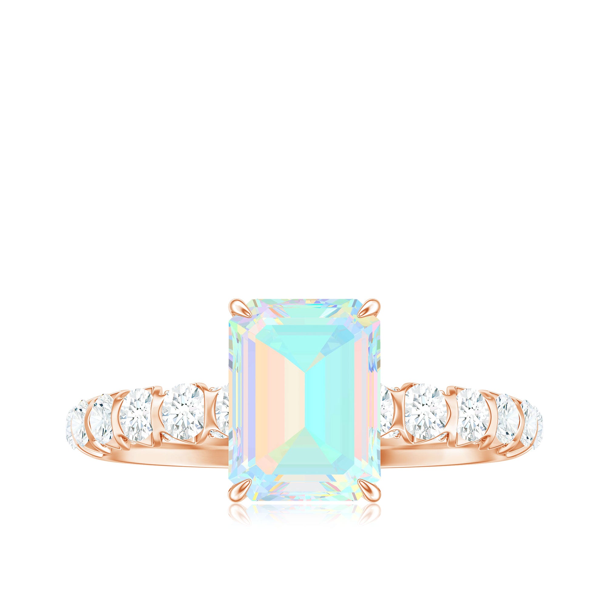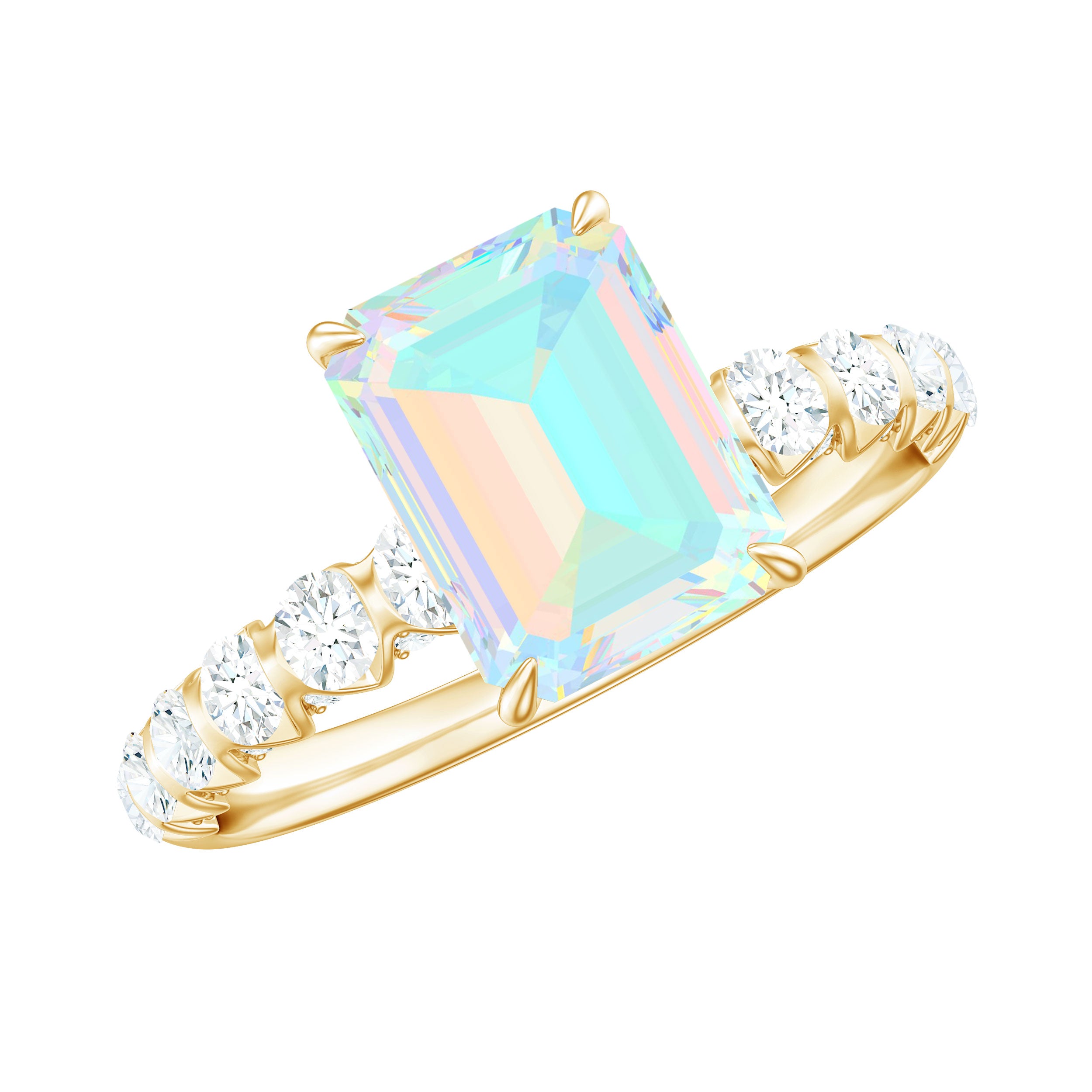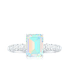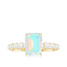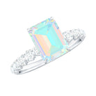 Genuine Ethiopian Opal Emerald Cut Engagement Ring with Diamond Side Stones
