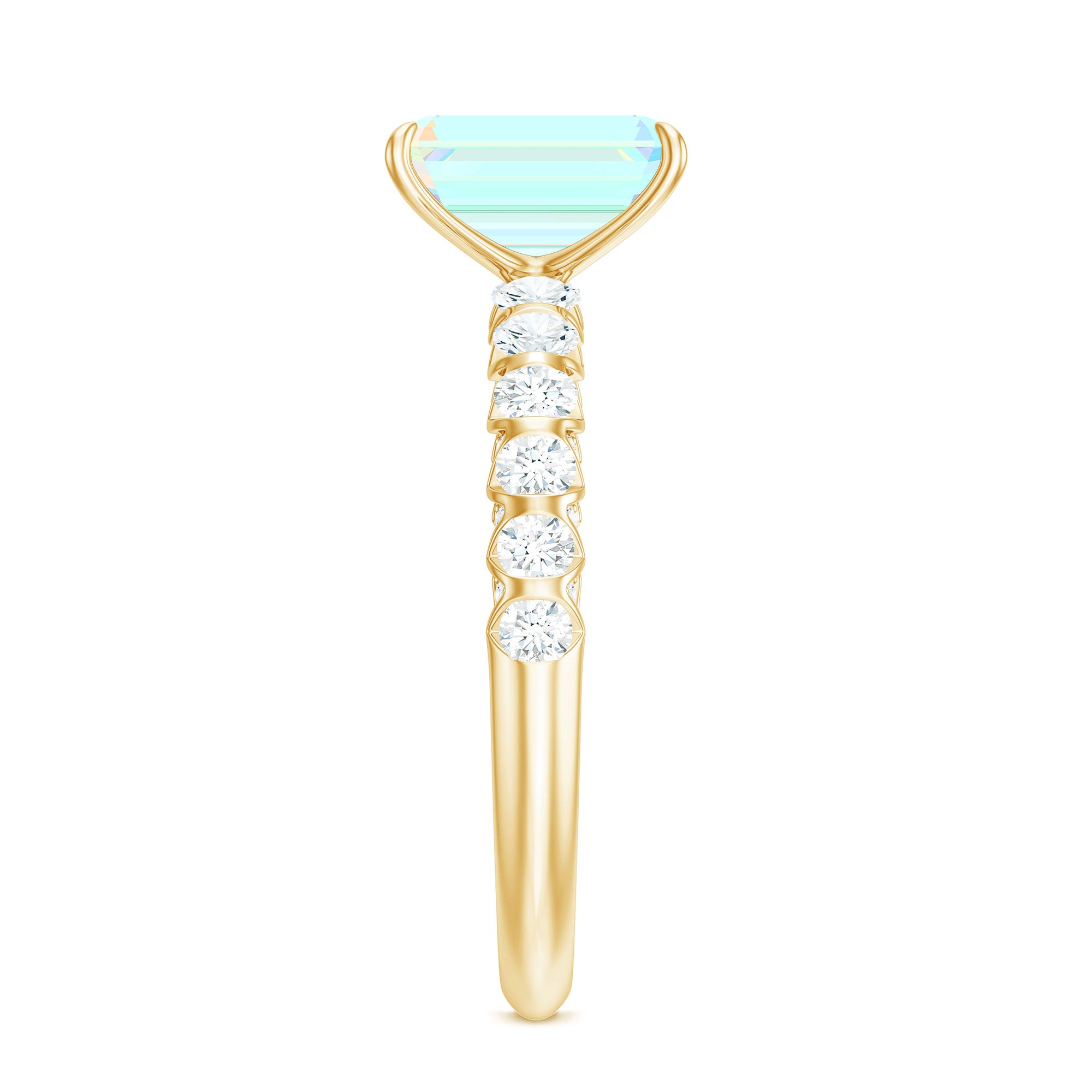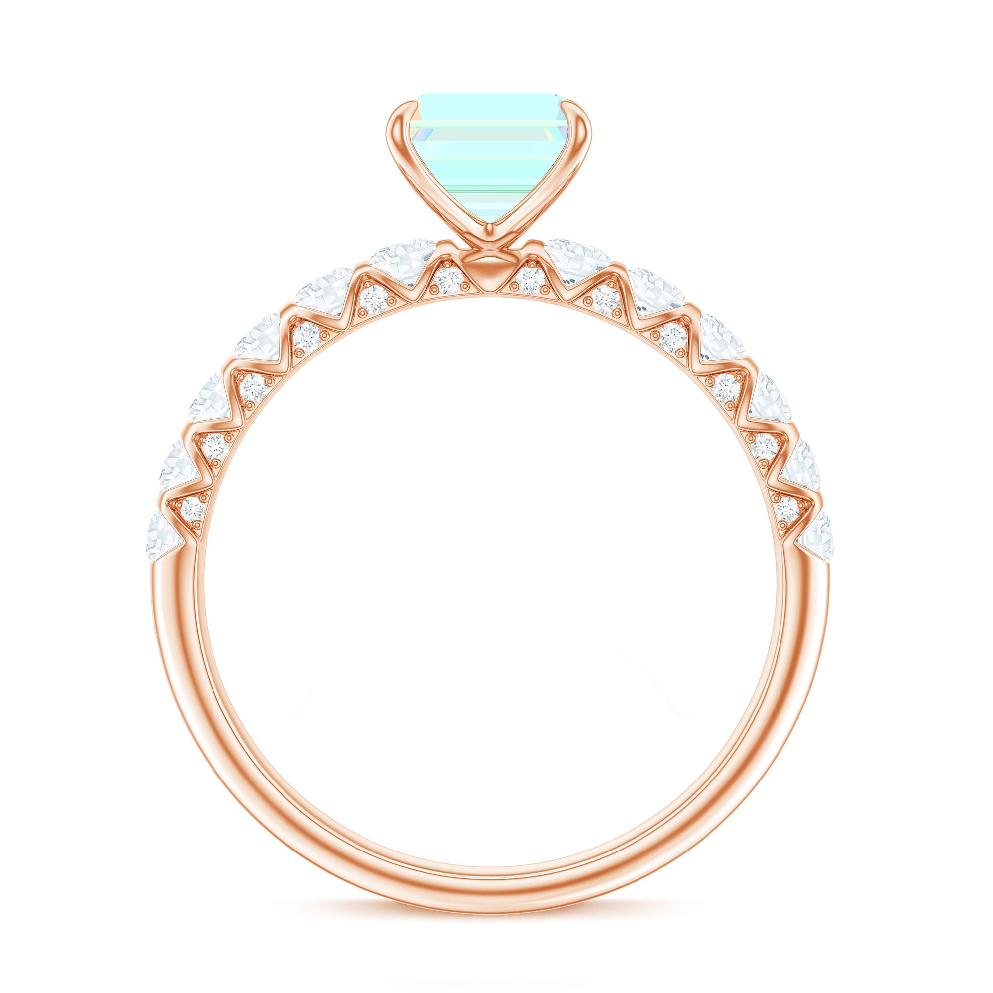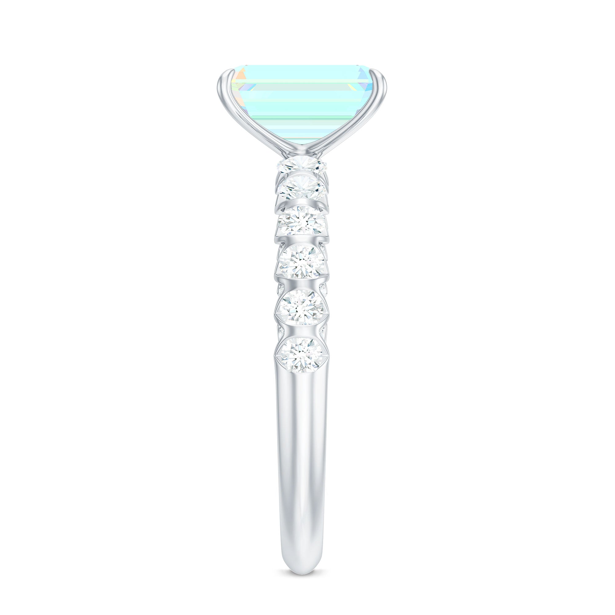 Genuine Ethiopian Opal Emerald Cut Engagement Ring with Diamond Side Stones
