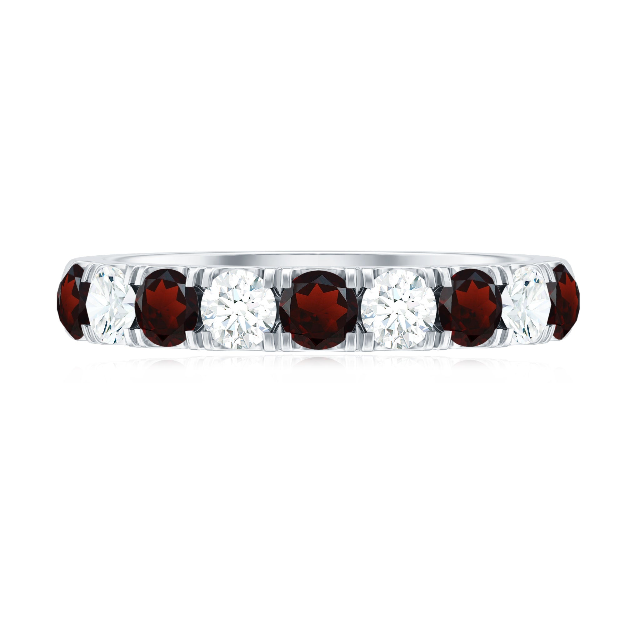 Genuine Garnet Diamond Half Eternity Wedding Ring