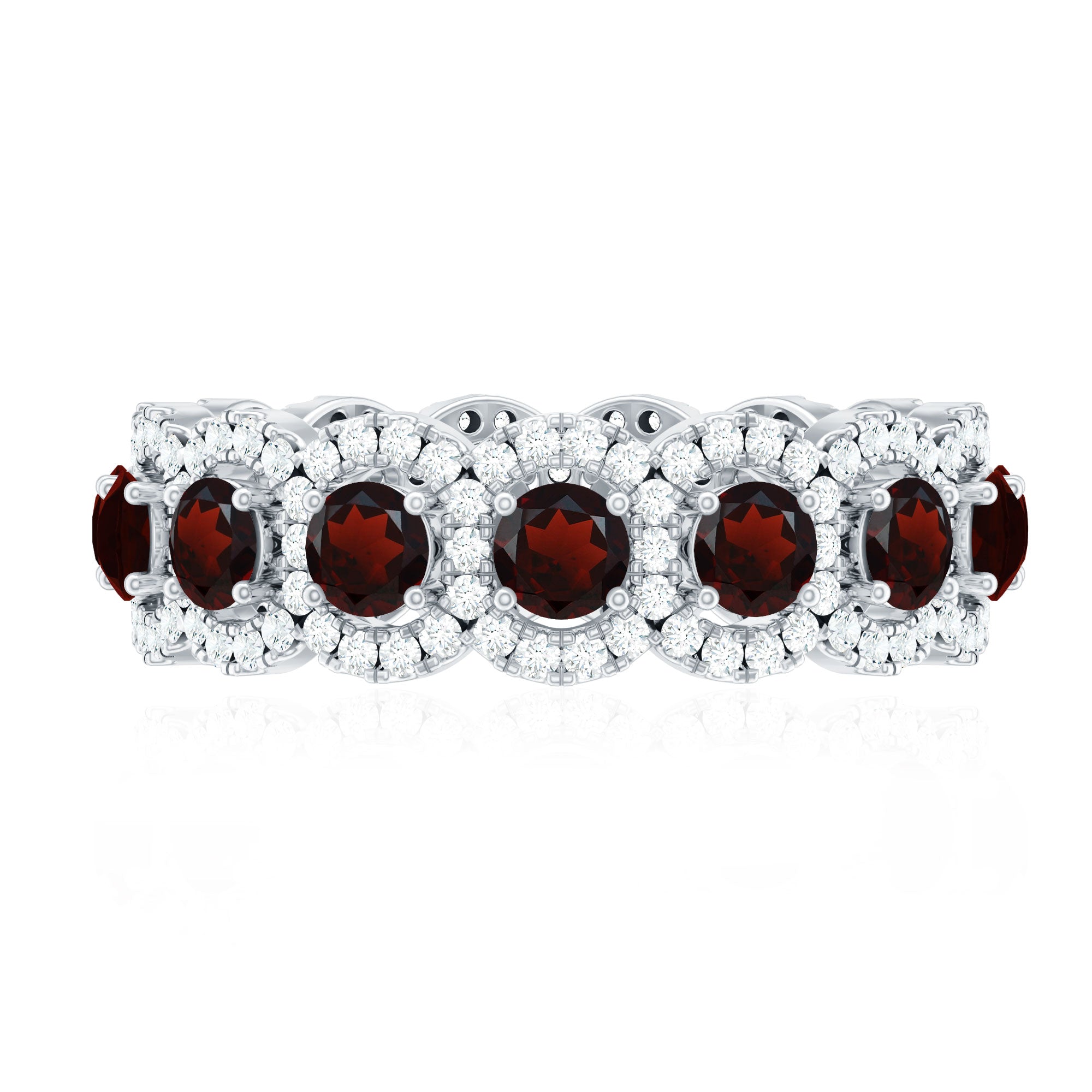 Genuine Garnet Eternity Wedding Band with Moissanite