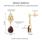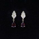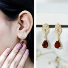 Genuine Garnet Teardrop Earrings with Diamond Leaf Design