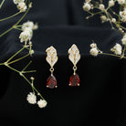 Celebrate the beauty of nature with these stunning Nature-Inspired Garnet Drop Earrings. Designed to capture the essence of natural elegance, these Teardrop Earrings feature a graceful leaf motif adorned with sparkling round cut EF-VS quality lab grown diamonds. Dangling below is a beautifully faceted 6X8 MM pear shaped real Garnet set in prong setting and known as the January birthstone. The garnets used are of AAA quality, ensuring exceptional color, clarity, and brilliance. Suspended delicately, the garnet drop adds a rich and sophisticated contrast to the dazzling diamond encrusted leaves above. Crafted in Yellow Gold Plated Silver, the metal beautifully complements the richness of the garnet and the sparkle of the diamonds. The Garnet and Diamond Earrings are thoughtfully designed with a secure screw back closure, offering comfort and peace of mind whether you are wearing them casually or for a special occasion. Perfect for those who admire nature’s delicate beauty, or for anyone born in January, these Leaf Earrings make a thoughtful gift or a meaningful self-purchase.