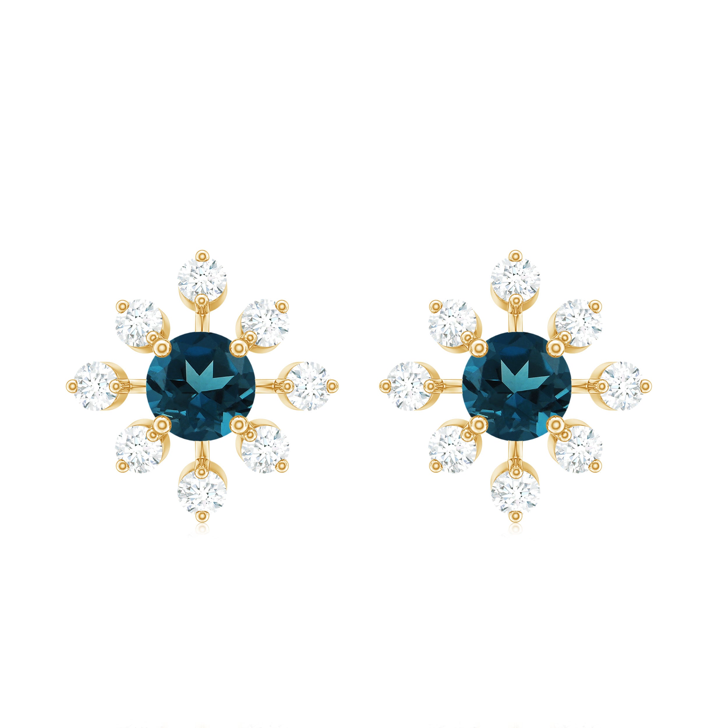 Genuine London Blue Topaz and Diamond Flower Stud Earrings