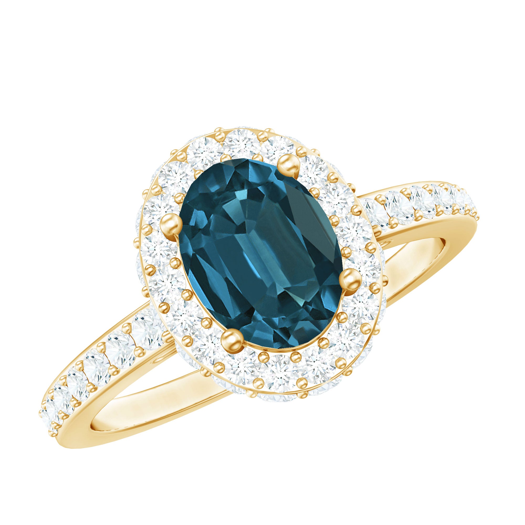 Genuine London Blue Topaz Classic Engagement Ring with Moissanite Halo