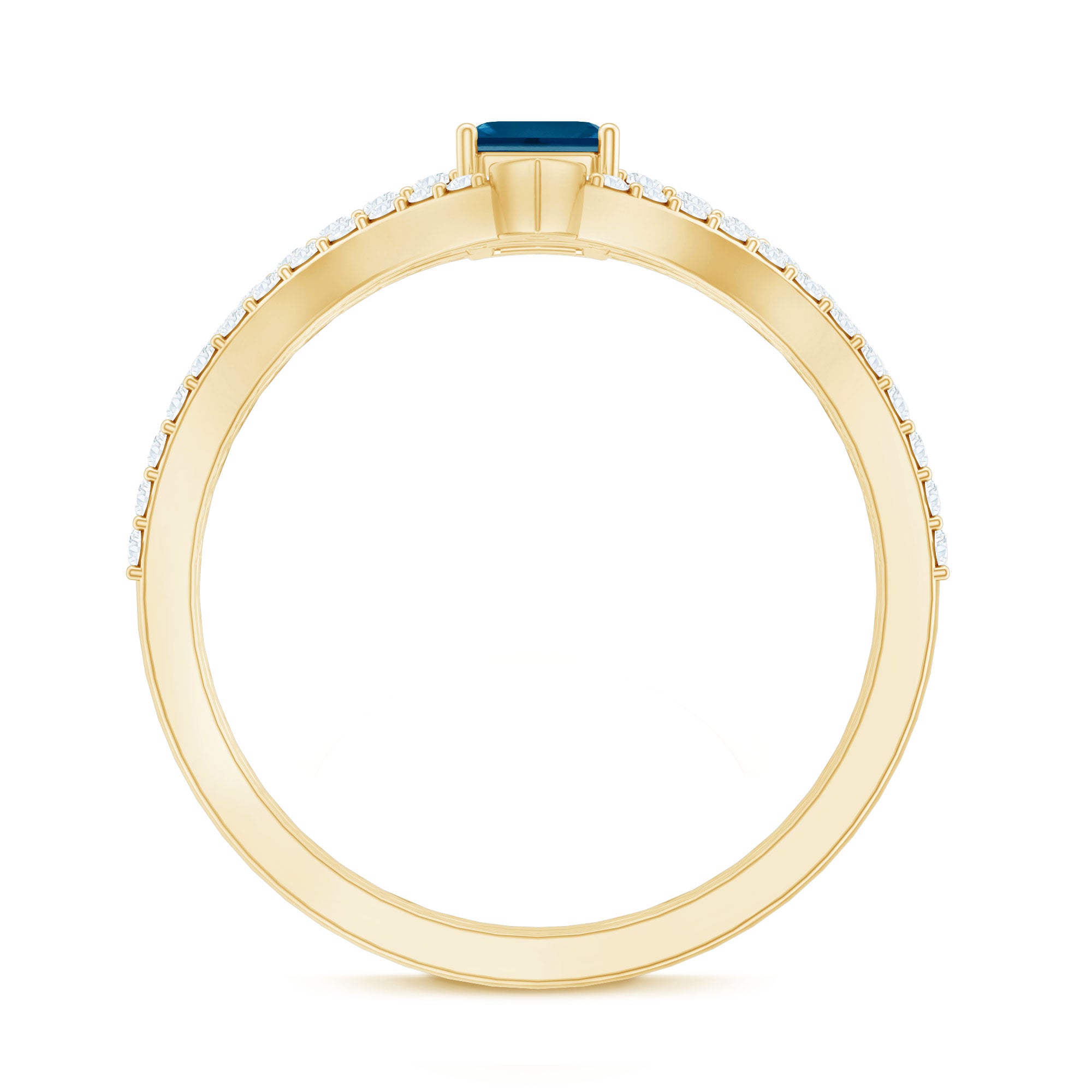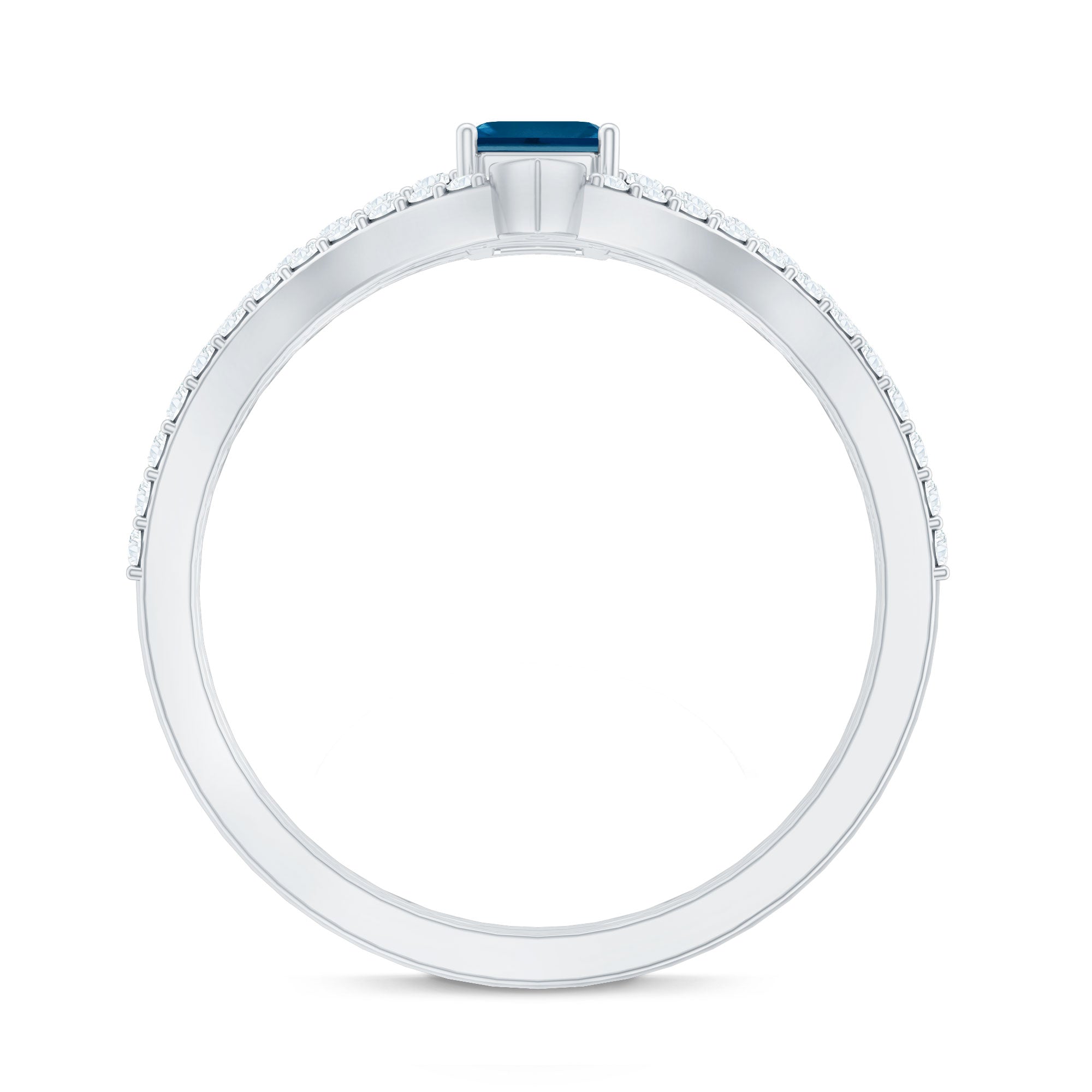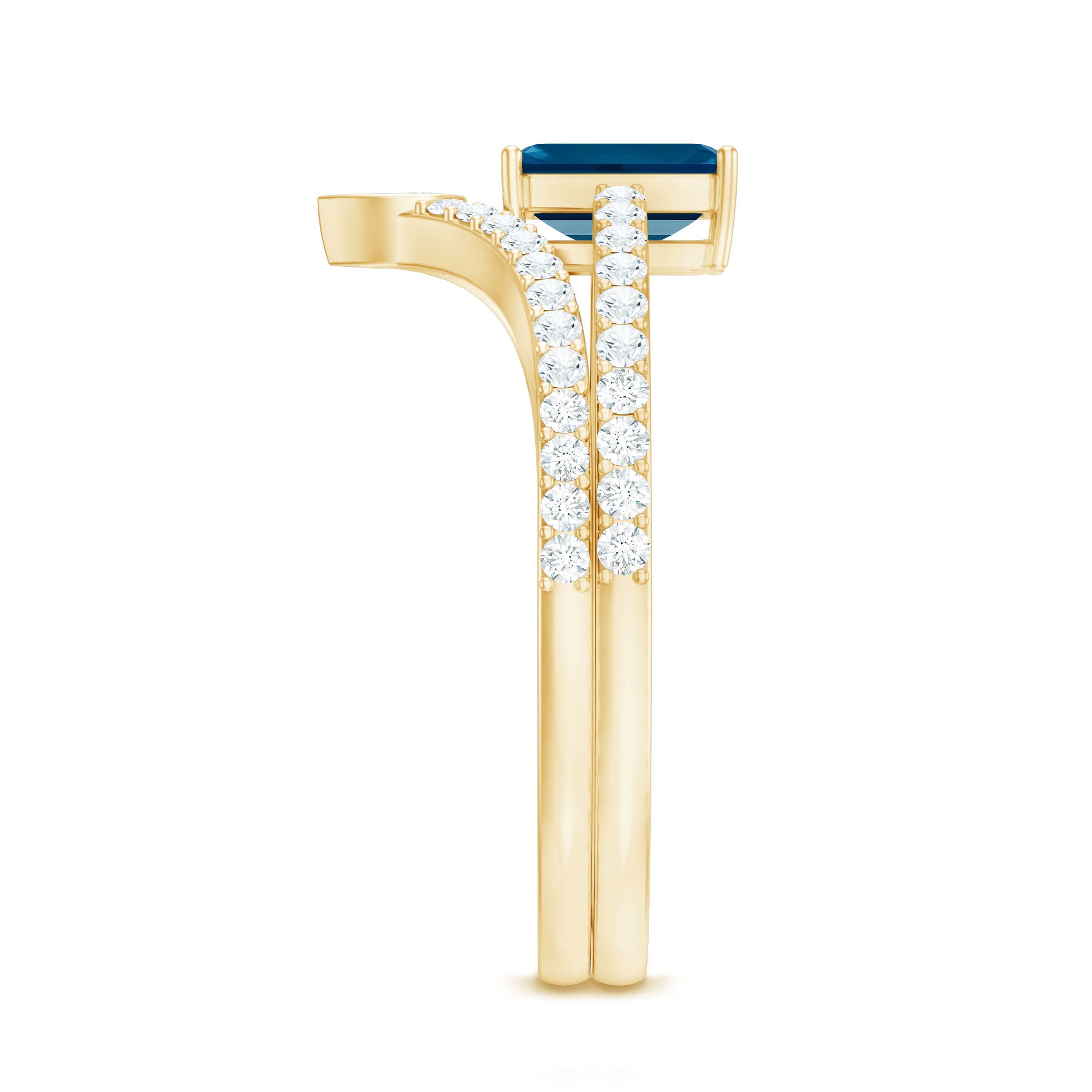 Genuine London Blue Topaz Emerald Cut Engagement Ring Set with Diamond Band