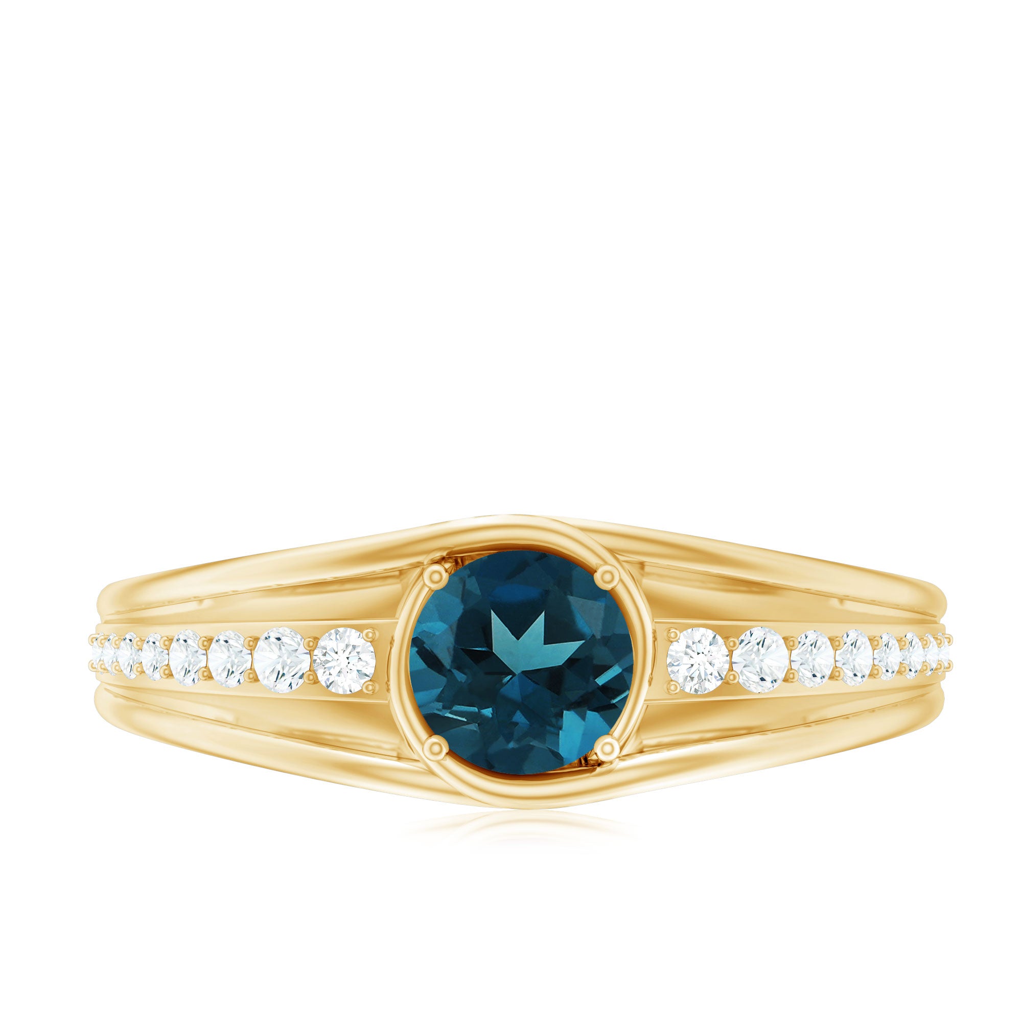 Genuine London Blue Topaz Engagement Ring with Diamond Side Stones