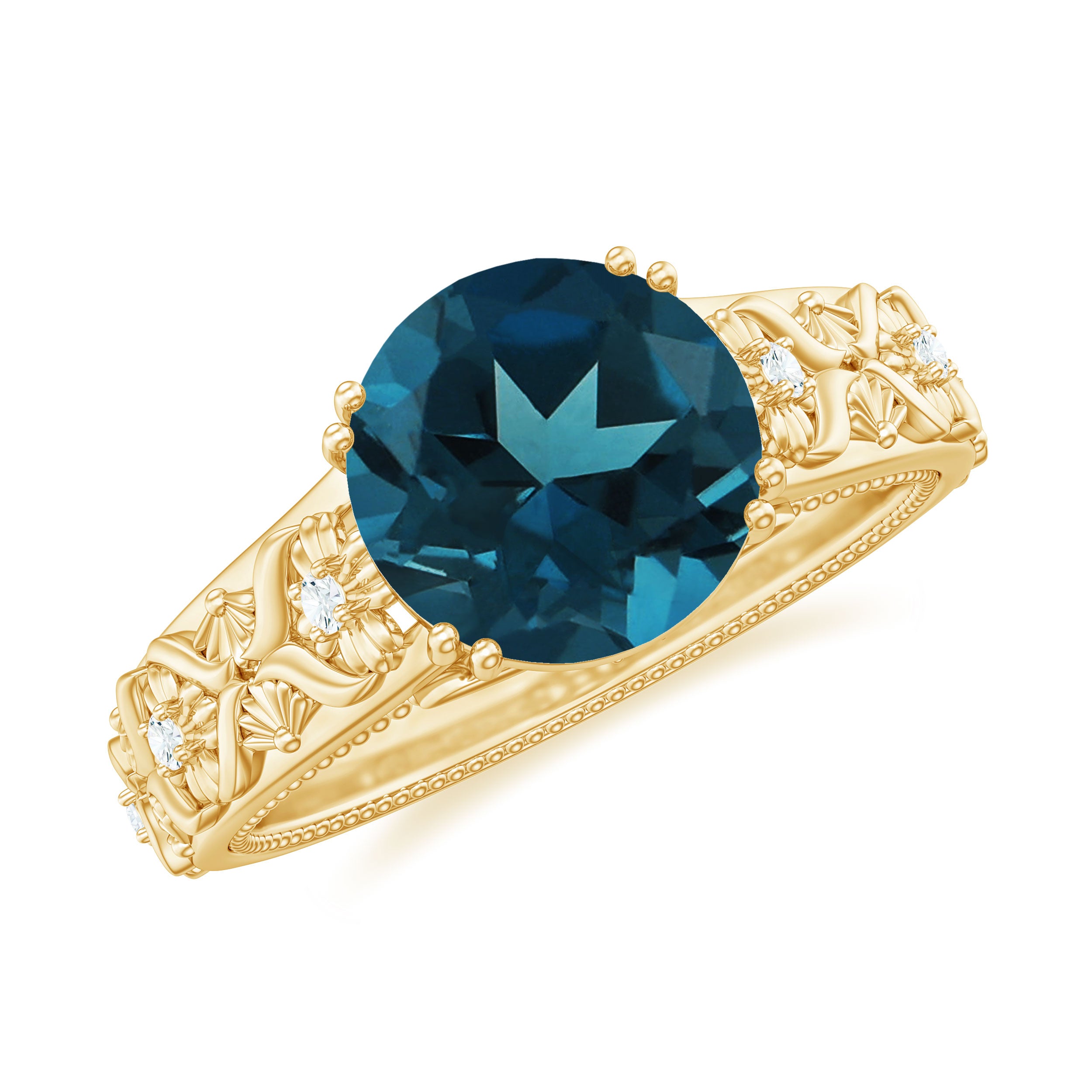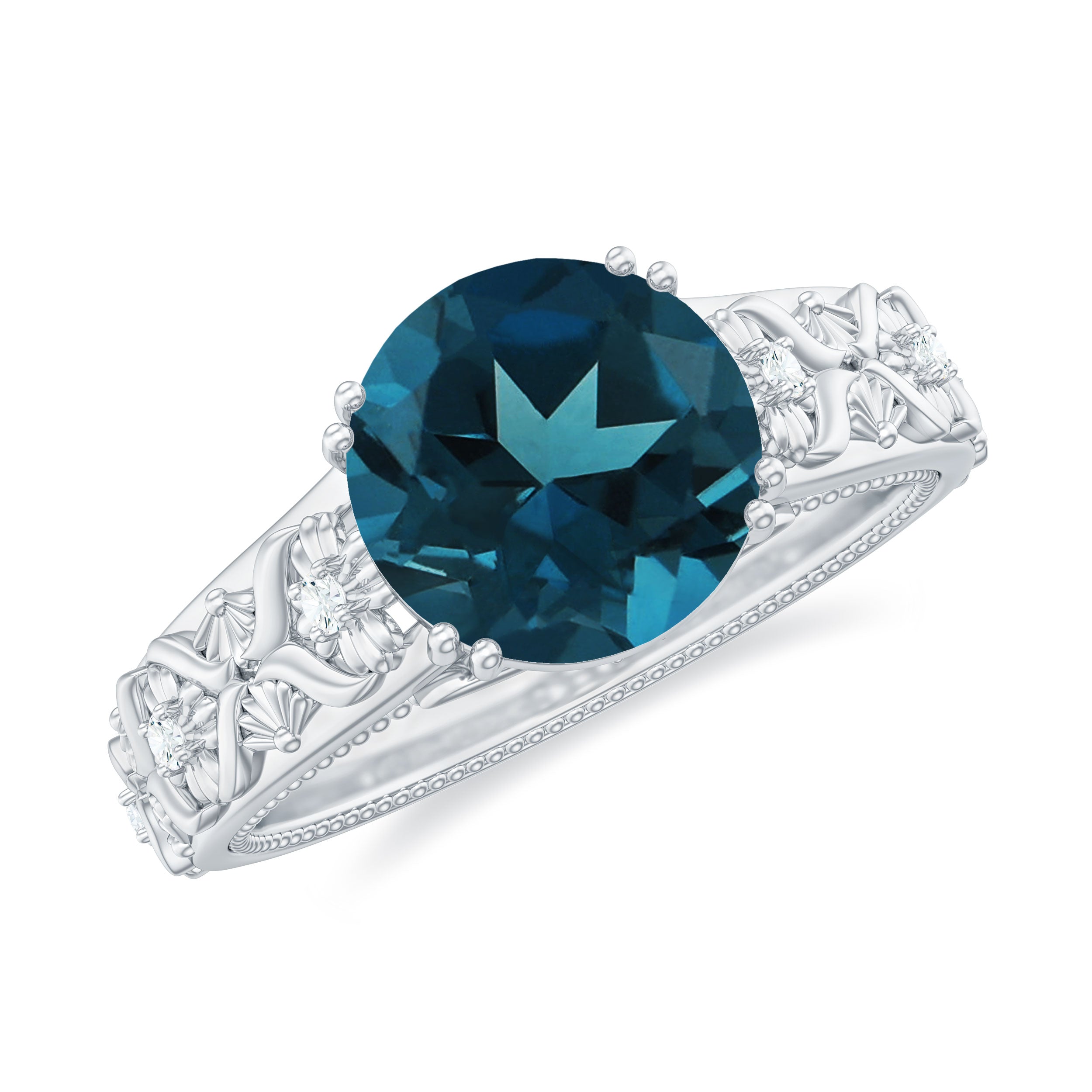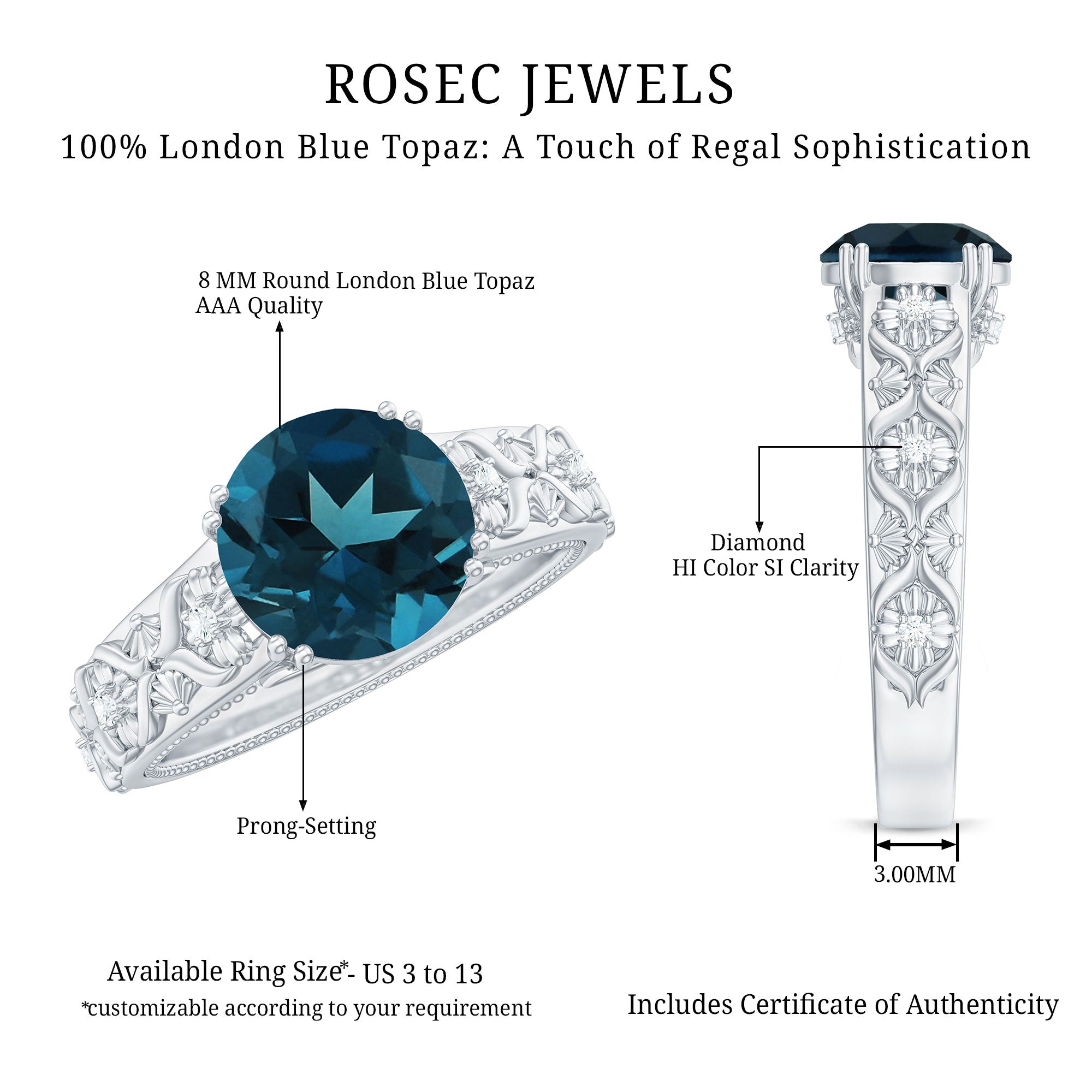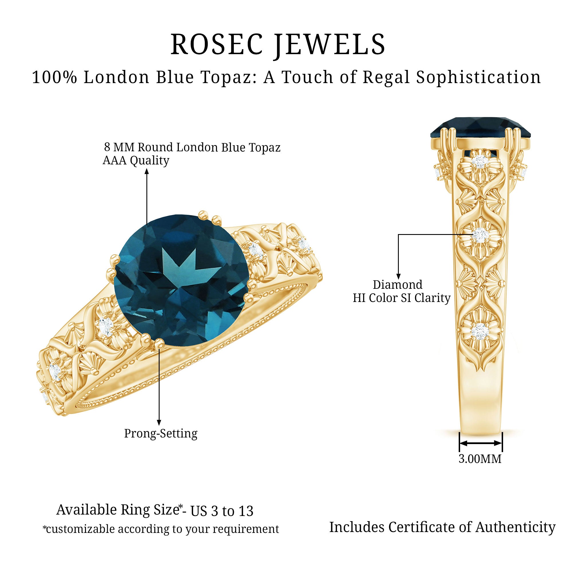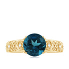 8mm Round London Blue Topaz Vintage Engagement Ring with Certificate