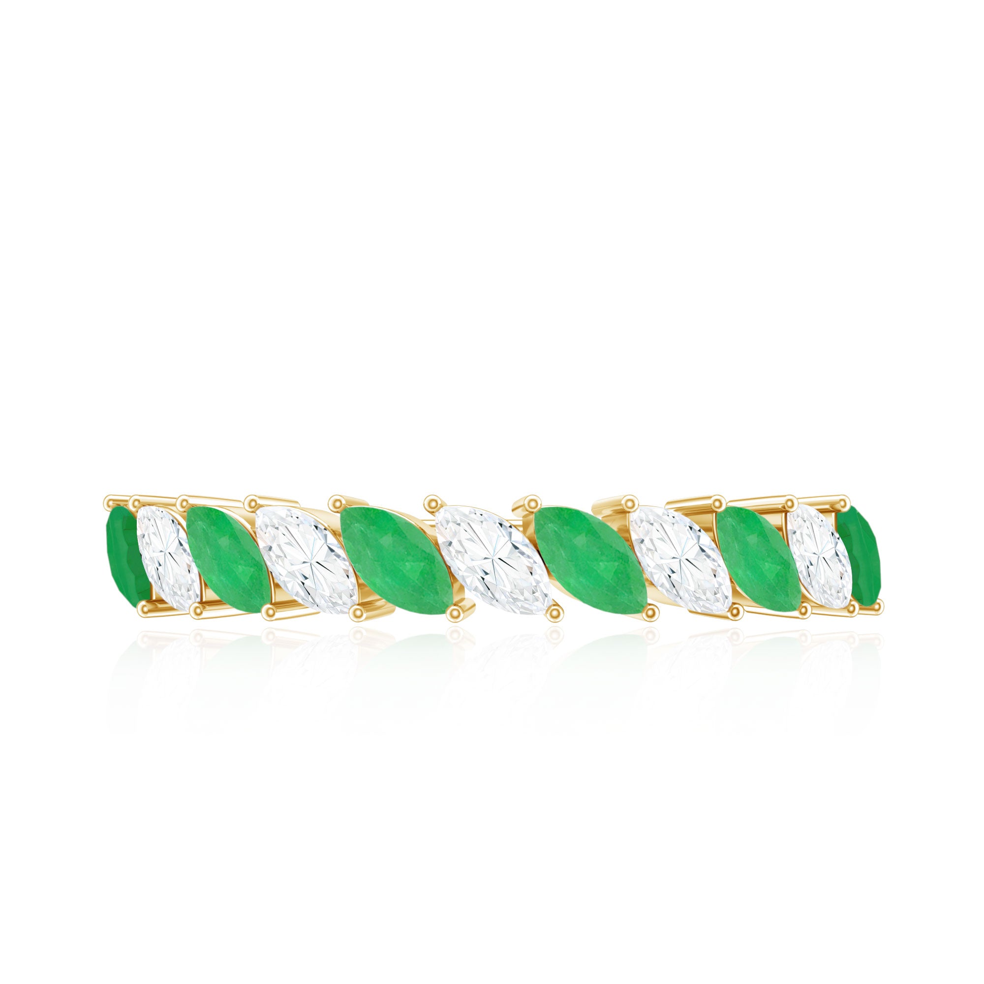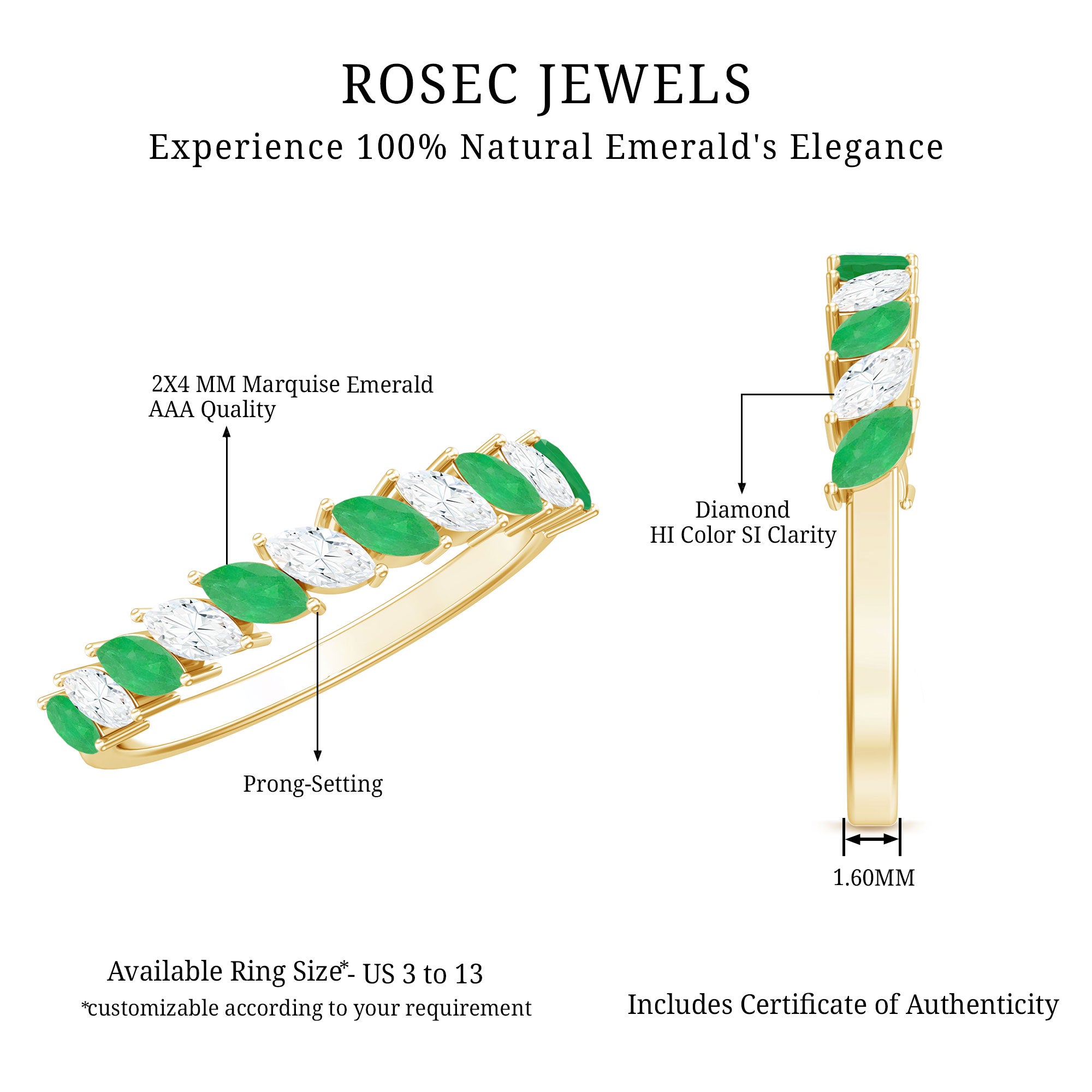 Genuine Marquise Emerald Diamond Half Eternity Ring for Wedding