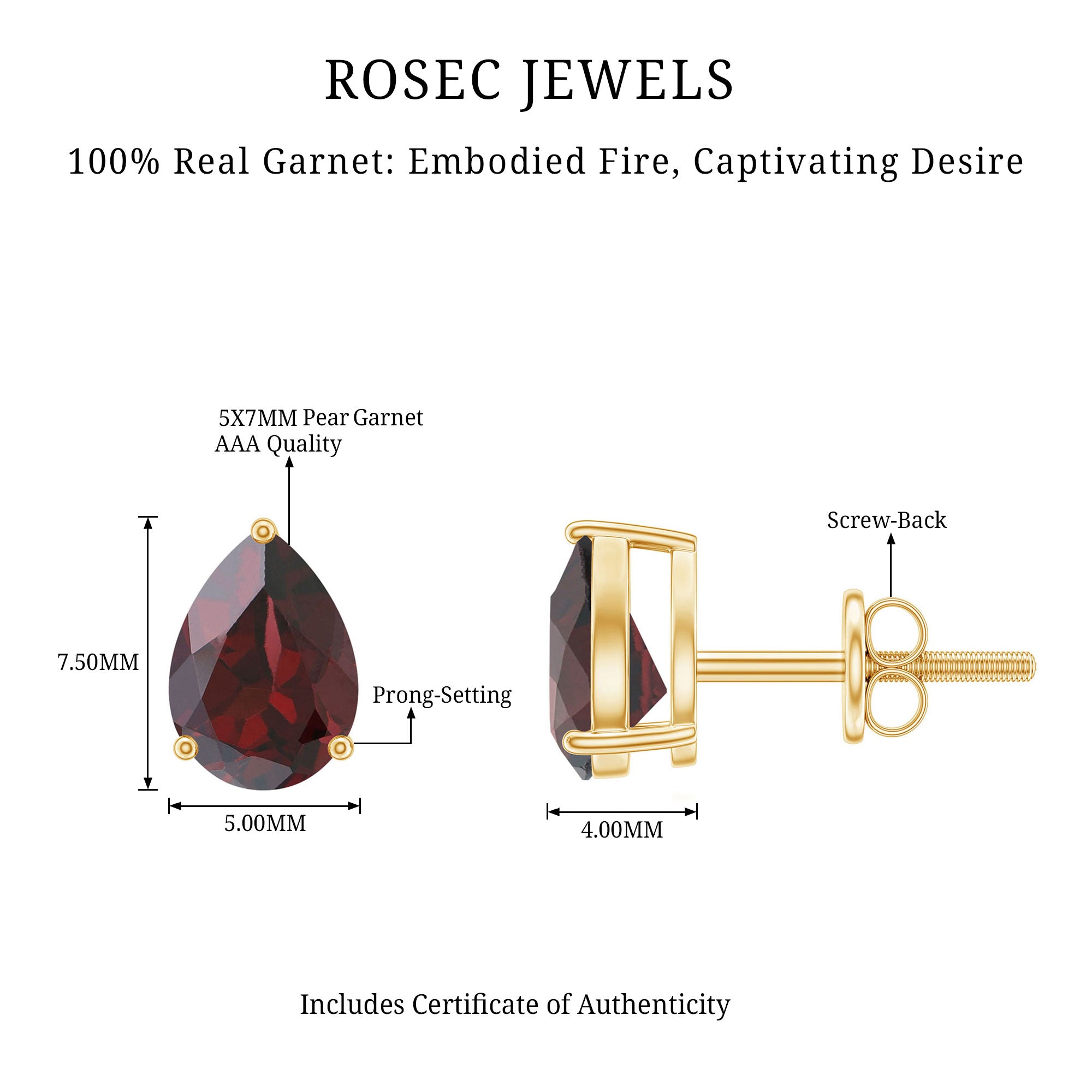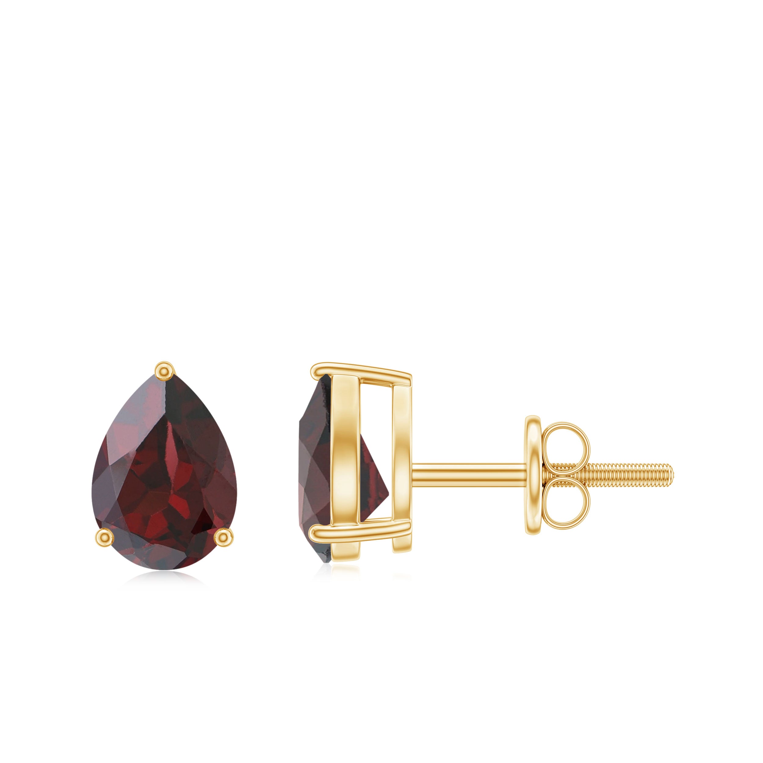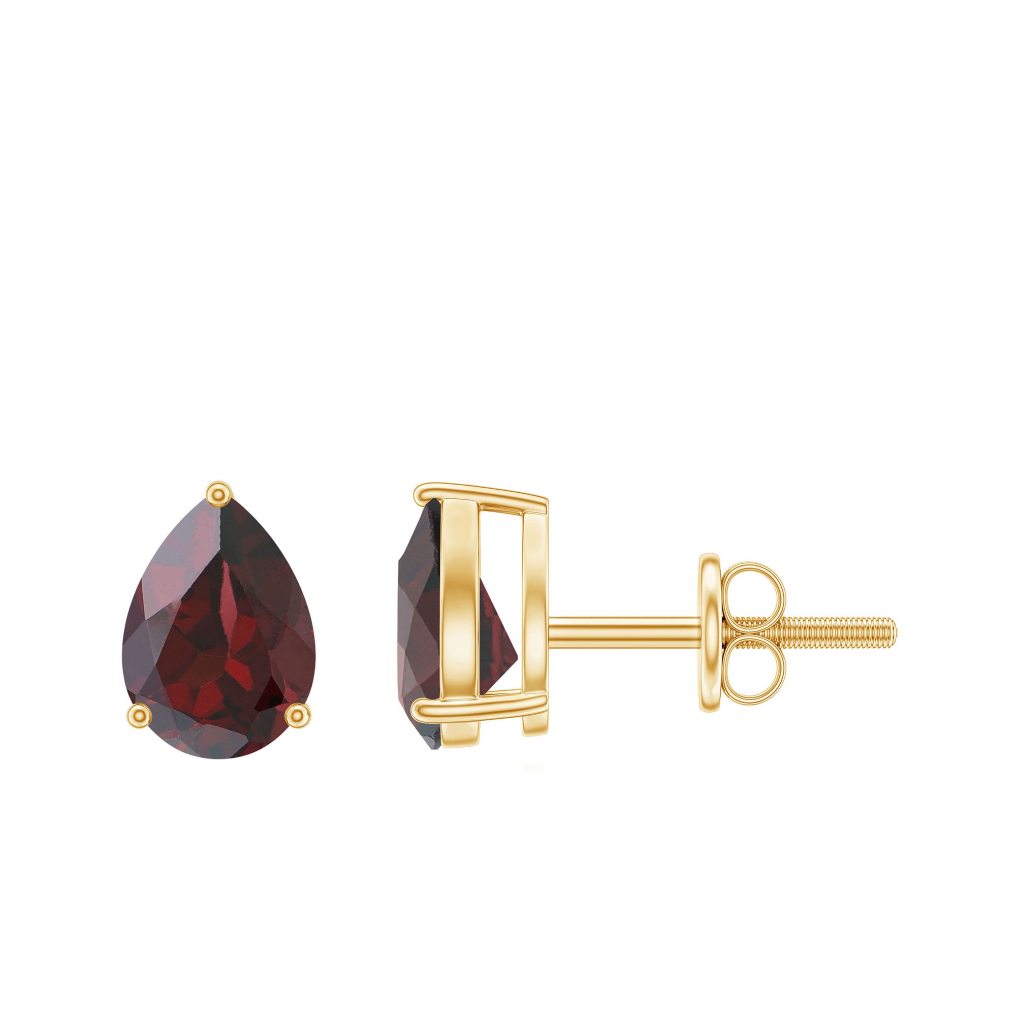 Genuine Pear Shaped Garnet Stud Earrings with Screw Backs