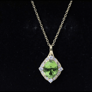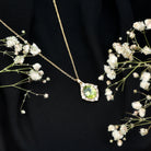 Genuine Peridot Vintage Necklace with Diamond Halo