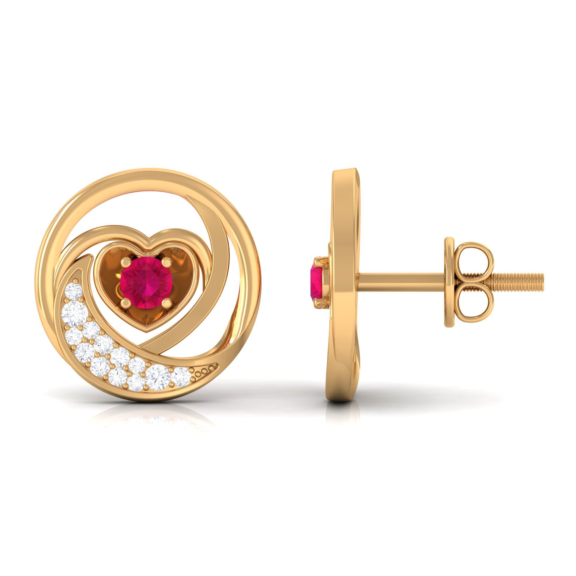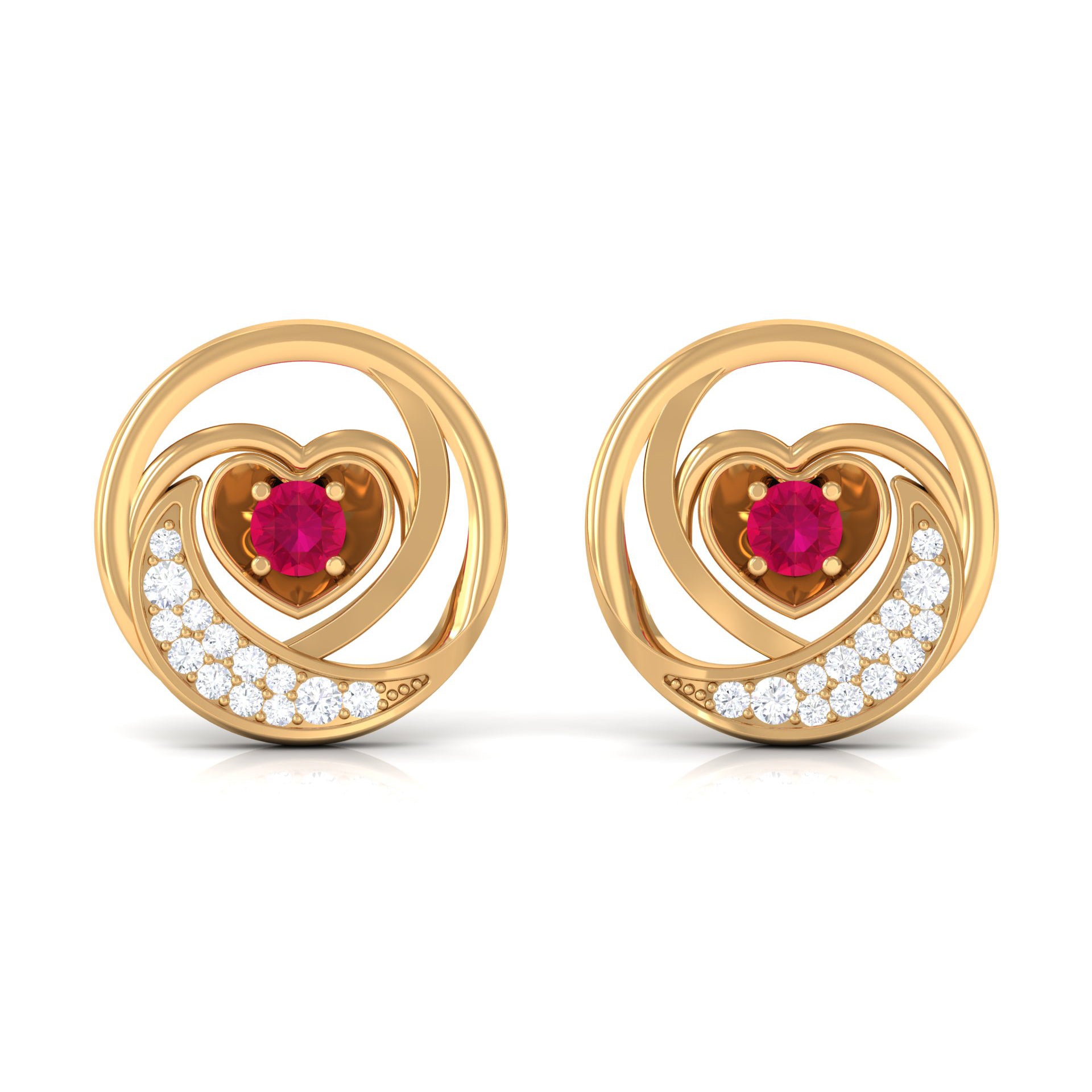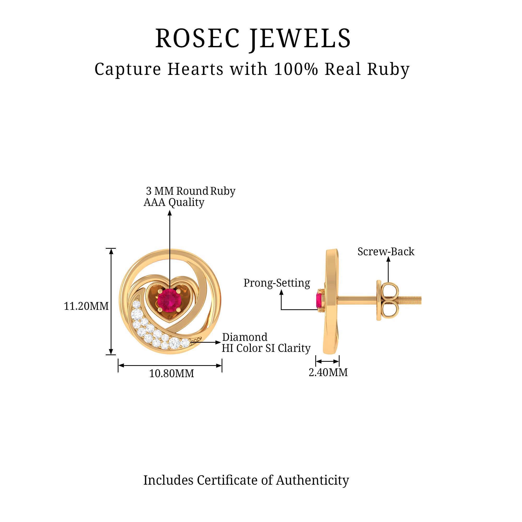 Genuine Ruby and Diamond Minimal Heart Stud Earrings