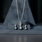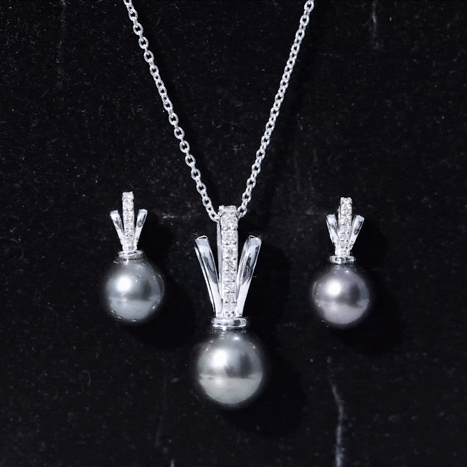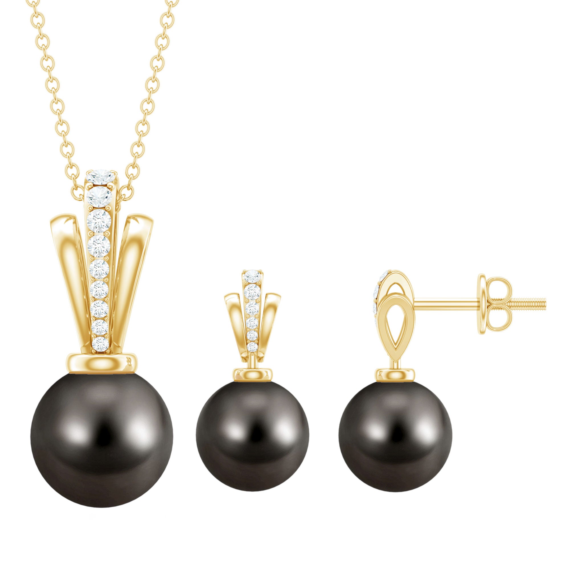 Genuine Tahitian Pearl and Diamond Drop Necklace Earrings Set