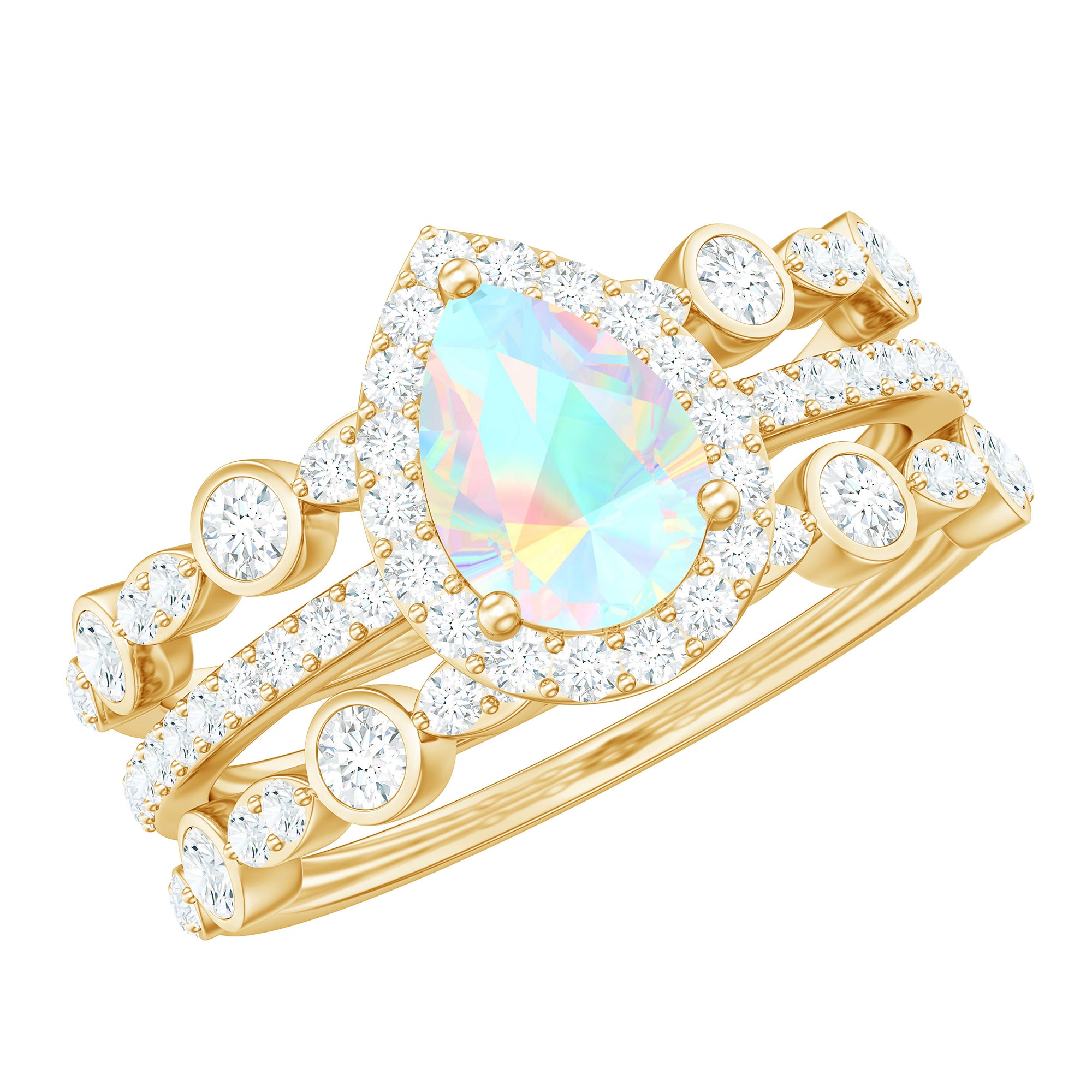 Genuine Vintage Style Opalescent Teardrop Engagement Wedding Ring Set of 3