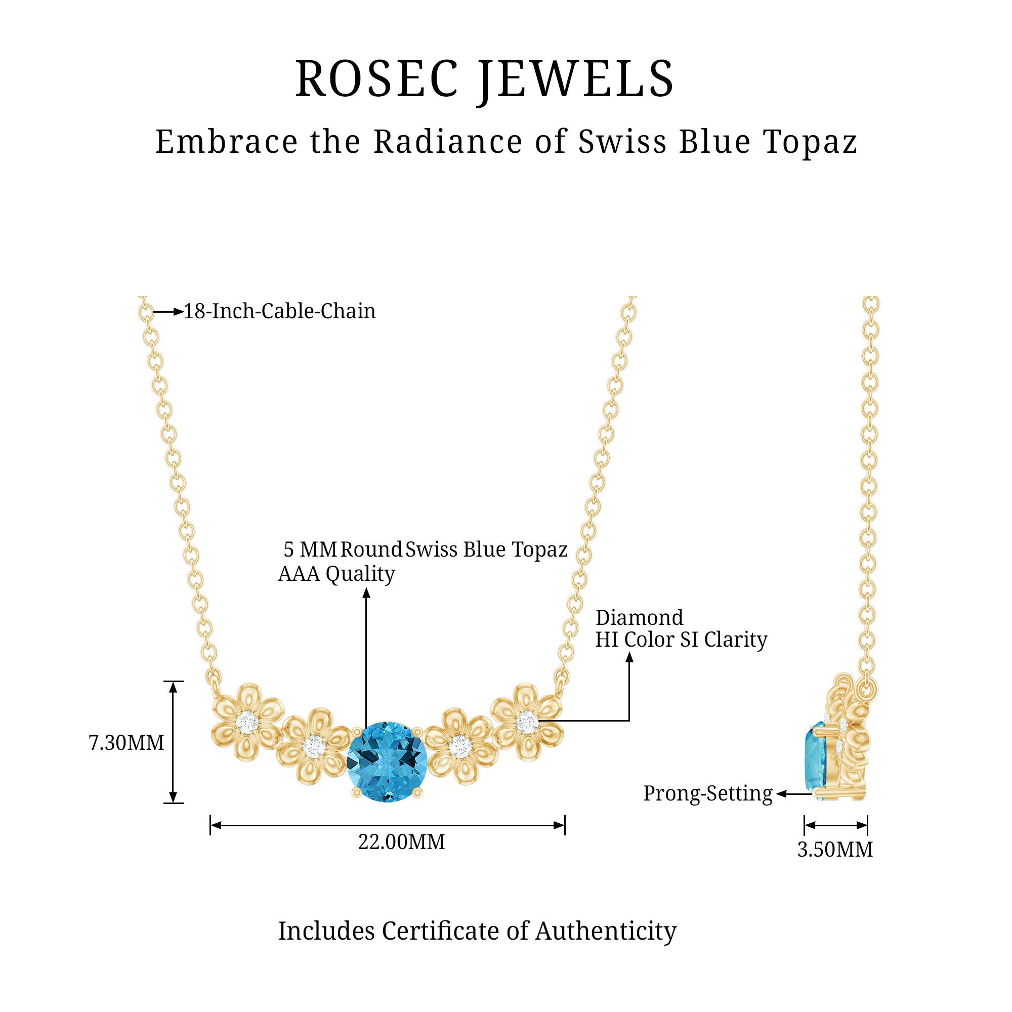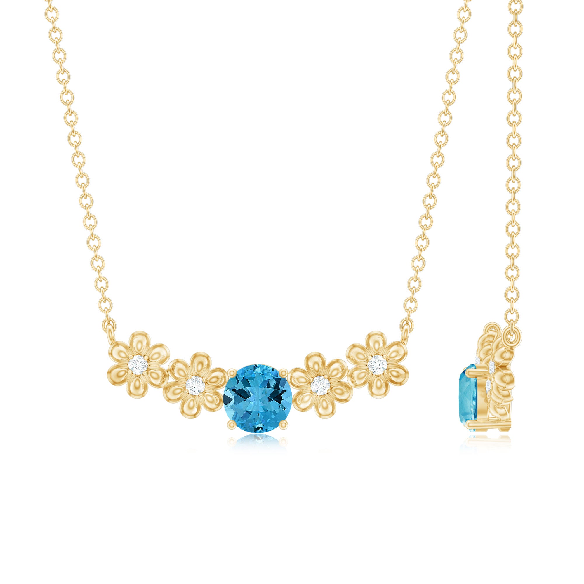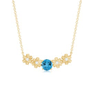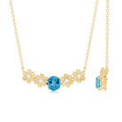 Gold Floral Minimal Necklace with Swiss Blue Topaz and Diamond