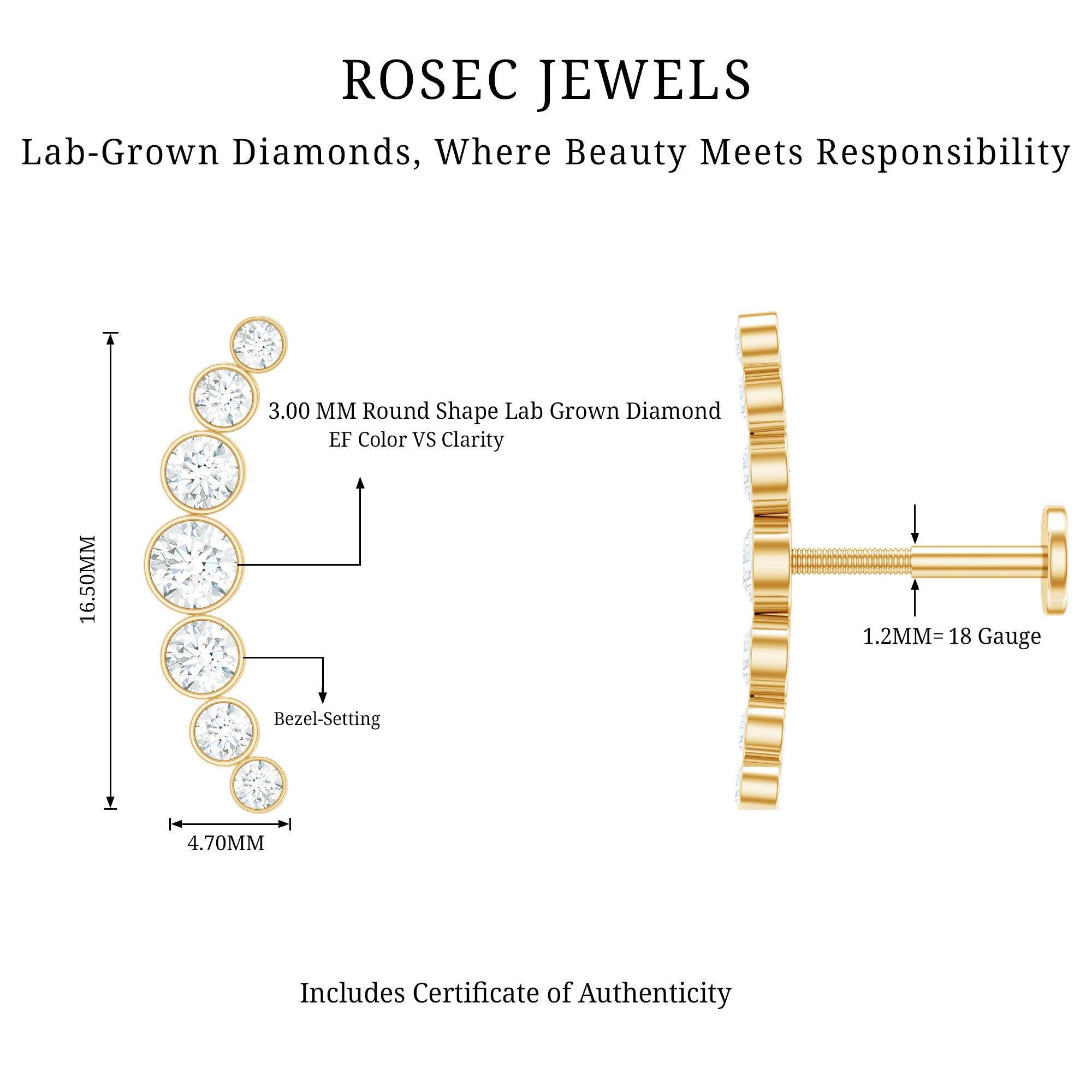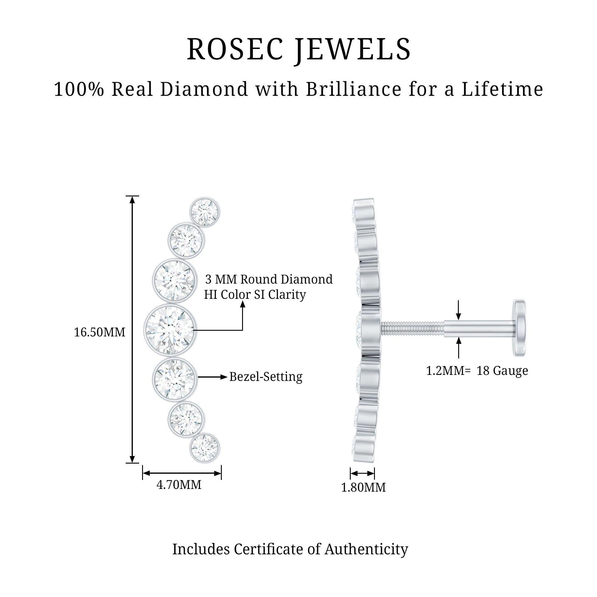This sparkling and trendy crawler helix earring is crafted with solid metal, earring features a row of bezel-set graduated-size diamonds that gently curves up the ear.
