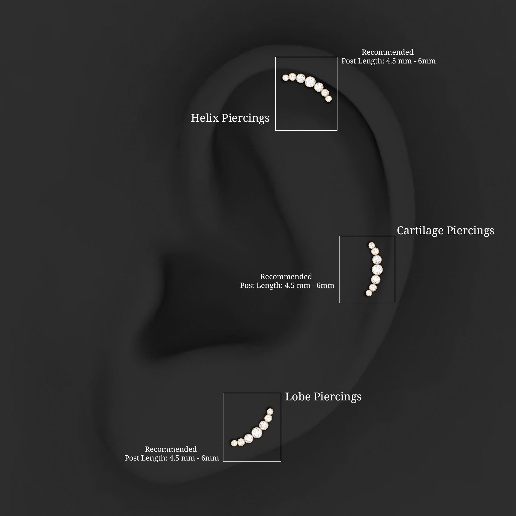 - You can style this climber earring on your Helix, Cartilage, or Upper Lobe Piercing as it comes with a flat back closure providing it a comfortable fit.