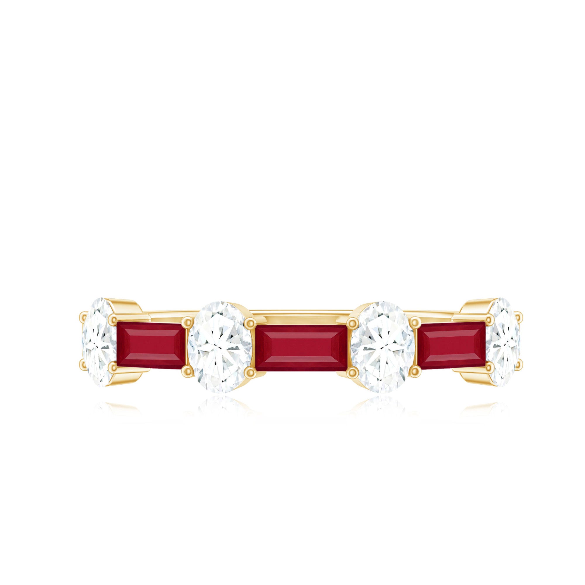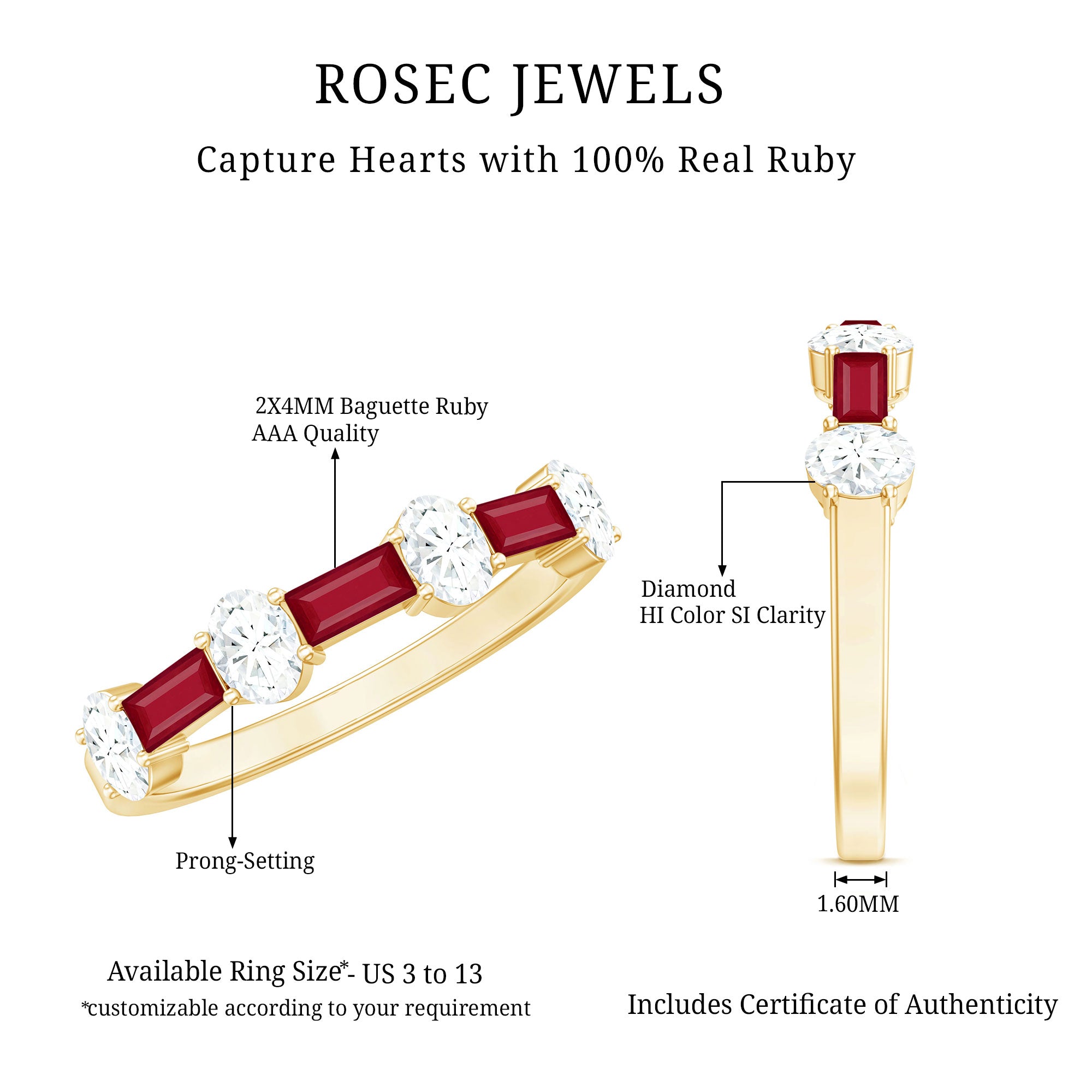 Experience the allure of love with this Half Eternity Ring featuring Ruby and shimmering Diamond gemstones, a captivating blend of beauty and brilliance.