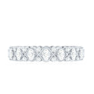When love feels like forever, there comes this designer Moissanite Eternity Band, a symbol of infinite devotion, elegantly wrapped in a criss cross design. Crafted in high quality metal, this Infinity Wedding Band features alternating round and oval cut moissanite stones, each meticulously selected for its brilliant D color and VS1 clarity. The oval stones sit in the center of criss cross pattern, while the smaller round gems dance between them, adding dimension and extra sparkle. The prong setting secures each moissanite beautifully, allowing maximum light to reflect from every facet, giving this Half Eternity Wedding Band a radiant, fiery glow that wont go unnoticed. As a Half Eternity Band, it delivers all the dazzle with added comfort and flexibility, perfect for everyday wear, while still looking effortlessly luxurious. Stack it with your engagement ring for a fuller bridal look, pair it with other bands for a layered aesthetic, or wear it solo to let its timeless charm shine on its own. Whether gifted for an anniversary, wedding, or on a special moment, this Moissanite Stackable Ring is the kind of piece that turns moments into forever memories.