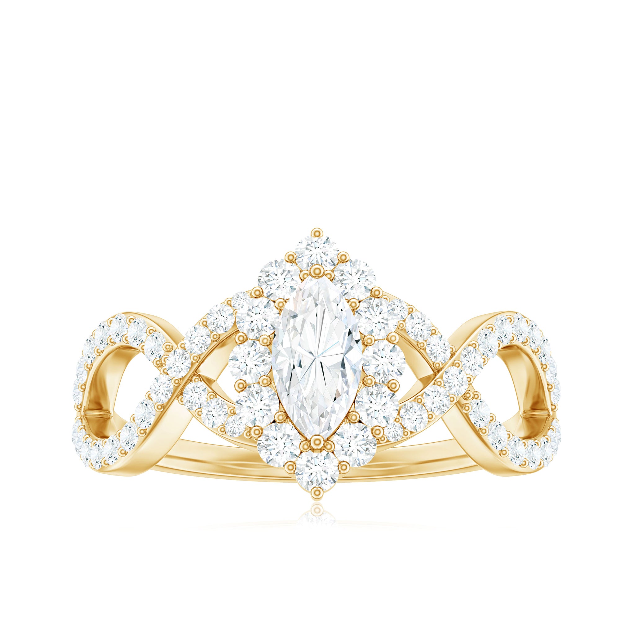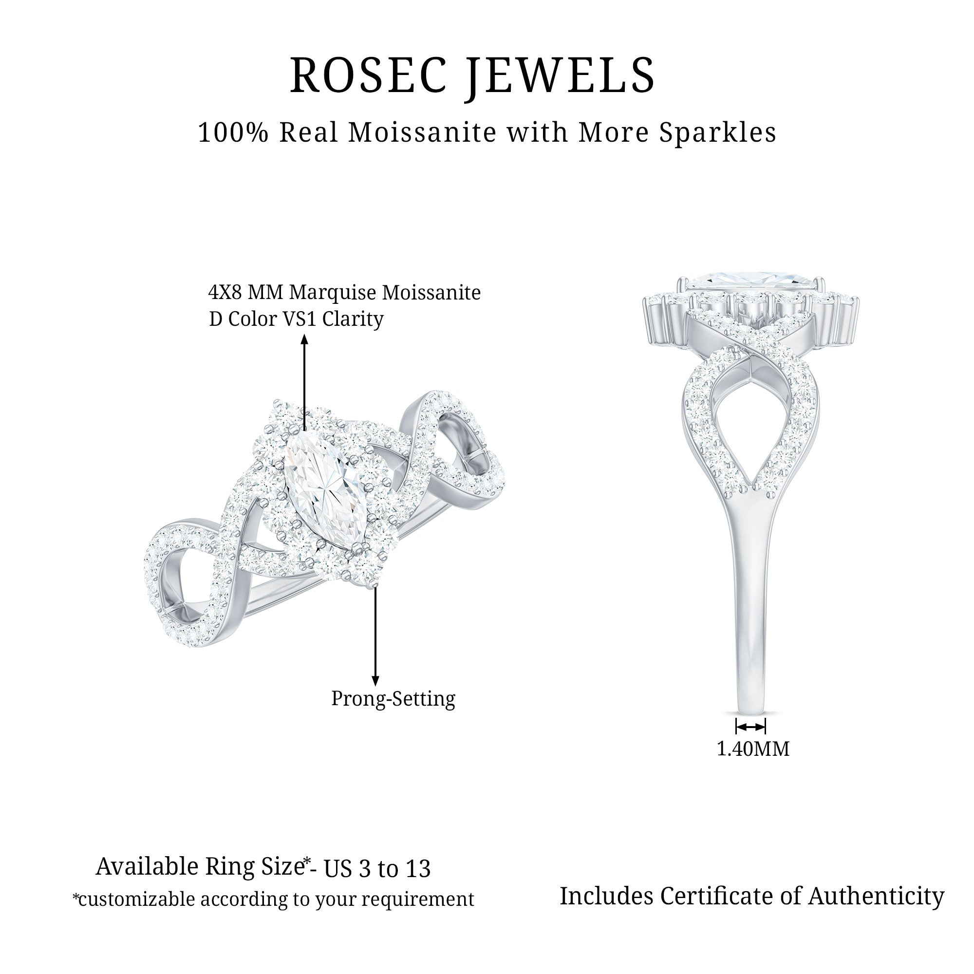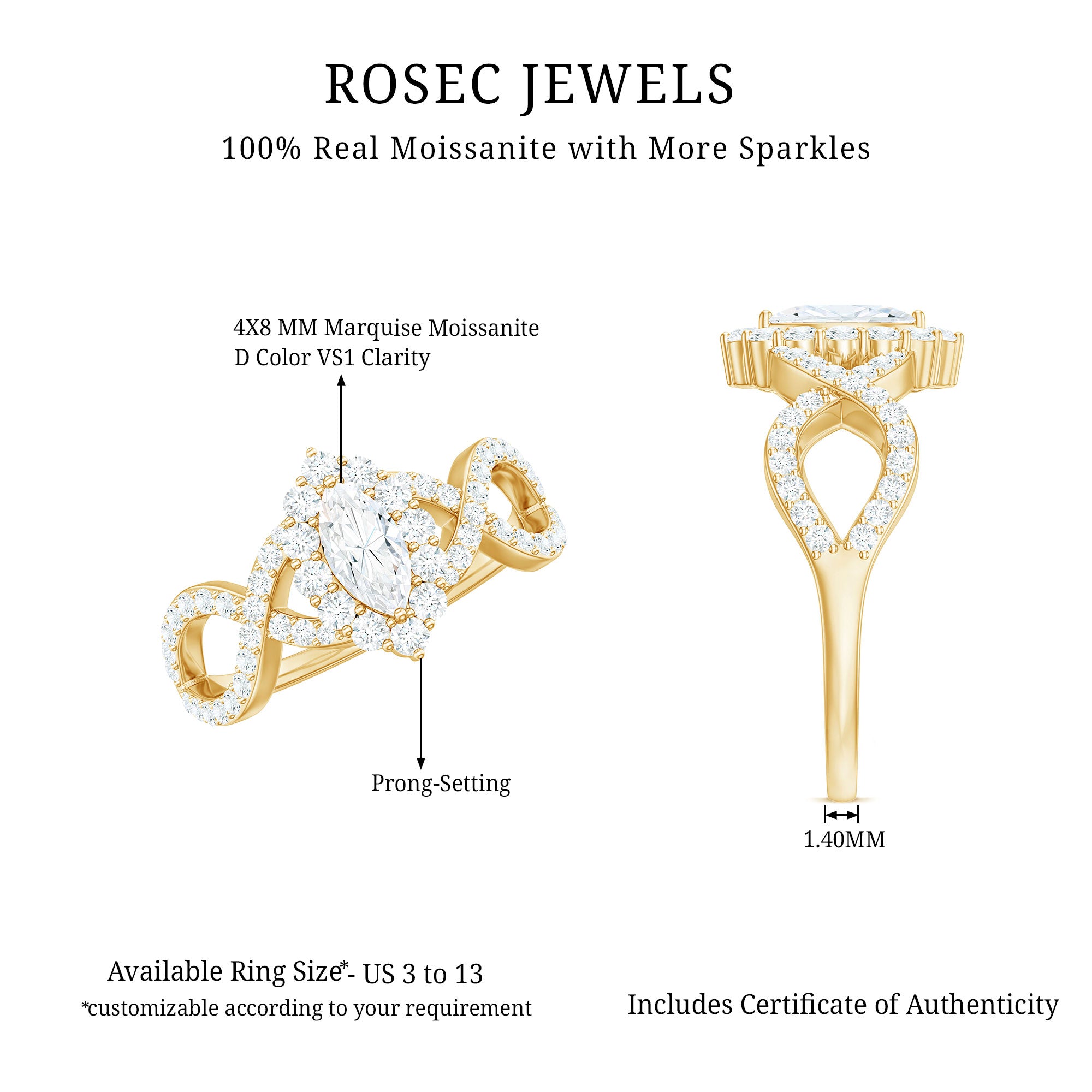 Marquise Moissanite Criss Cross Engagement Ring with Halo