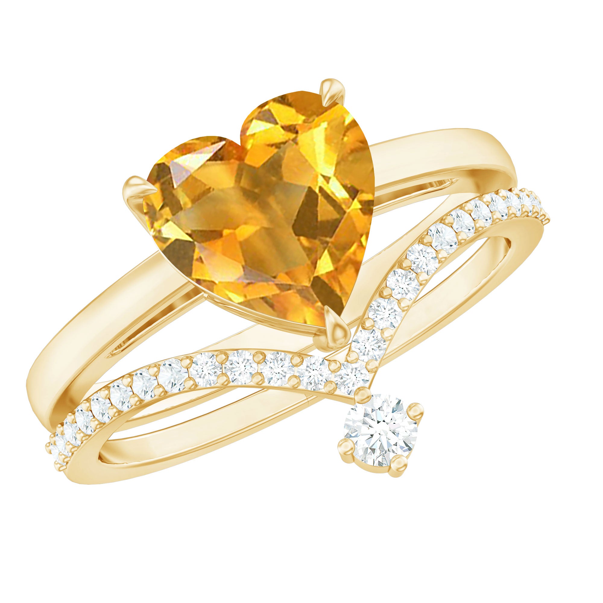 Fall in love with our heart citrine solitaire ring set, adorned with sparkling Diamond stones. Discover timeless beauty today!