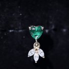 The Helix Drop Earring is a stunning piece of jewelry that combines elegance and romance. The Heart Shape Lab Created Emerald is perfectly complemented by the sparkling Marquise Cut Moissanites, creating a look thats both sophisticated and eye-catching. Wear it on your Helix, Cartilage, Tragus, or Upper Lobe Piercing and create mesmerizing looks.