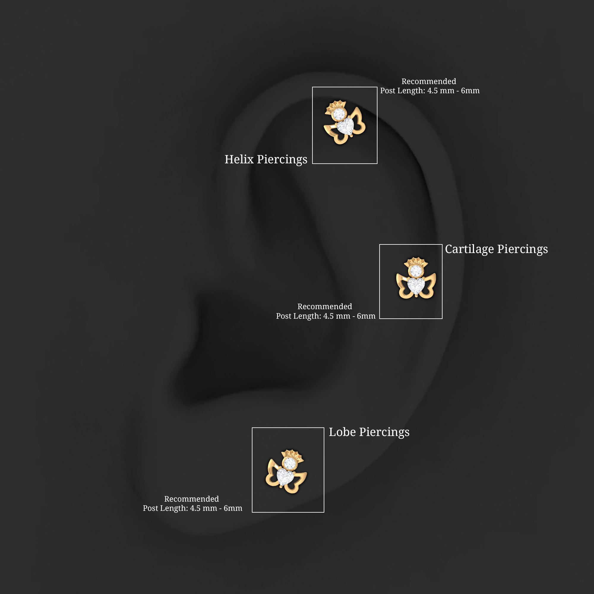 - And because were all about that divine drama, wear this diamond earring into your Helix, Cartilage, or Upper Lobe Piercings. Comes with a Flat Back Closure to keep those angels secure, of course.
