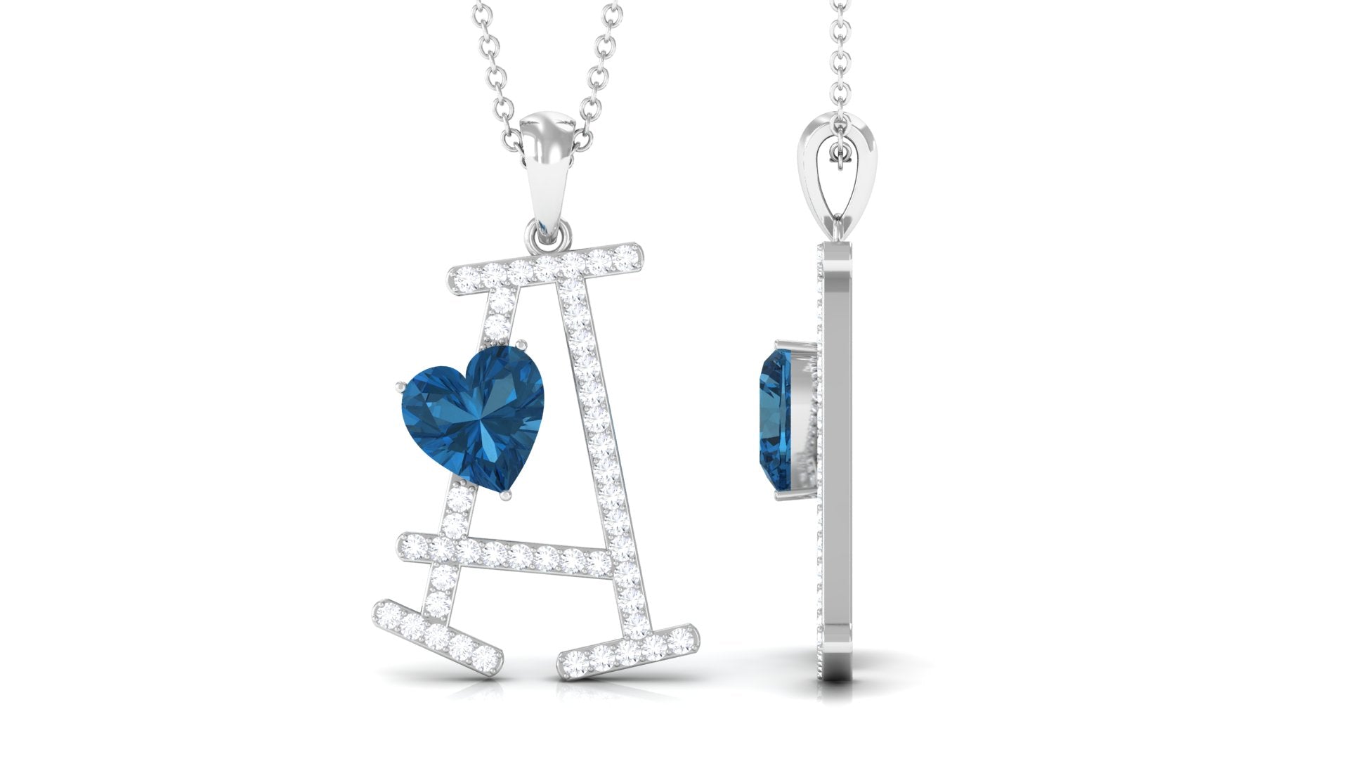 Heart Initial A Pendant with London Blue Topaz and Diamond