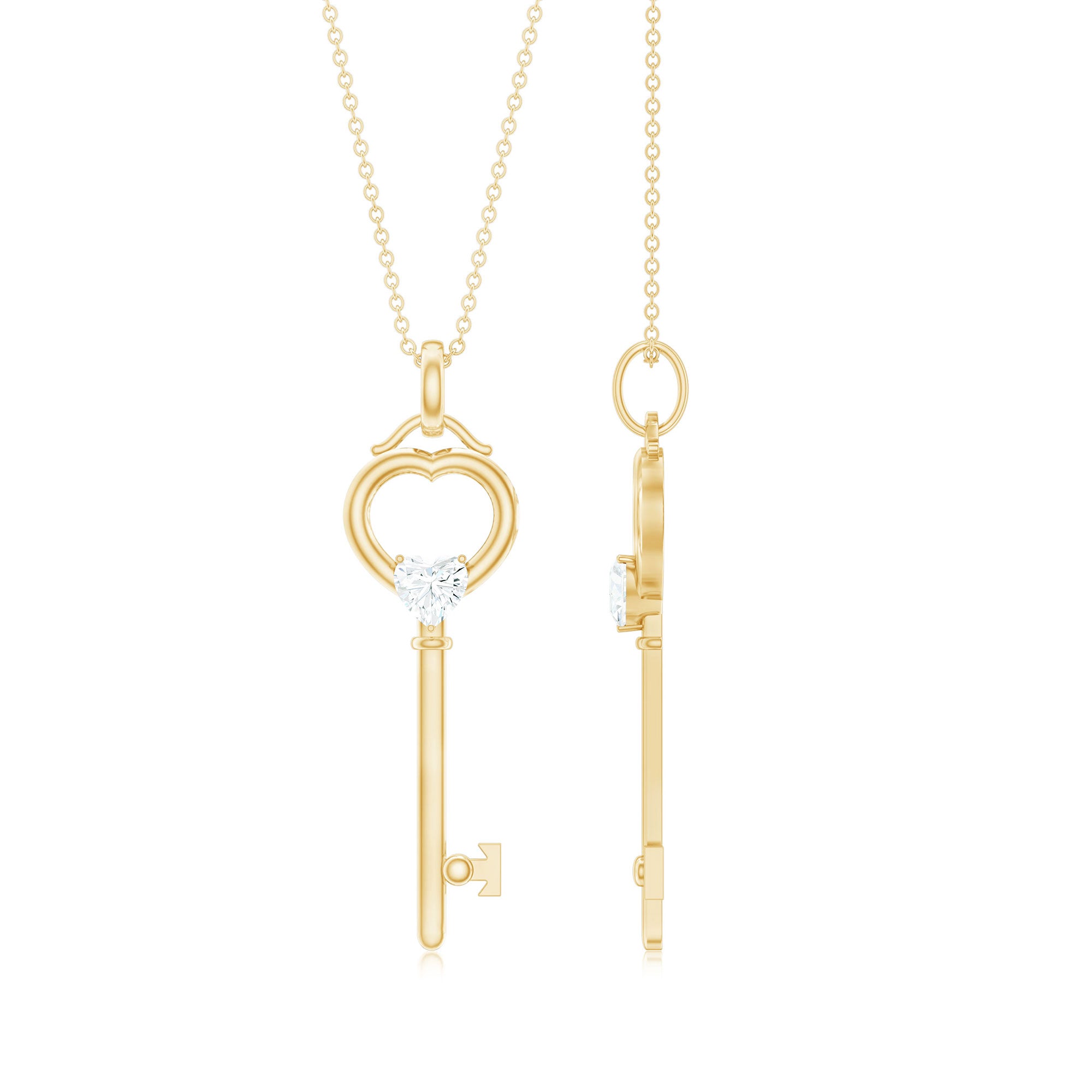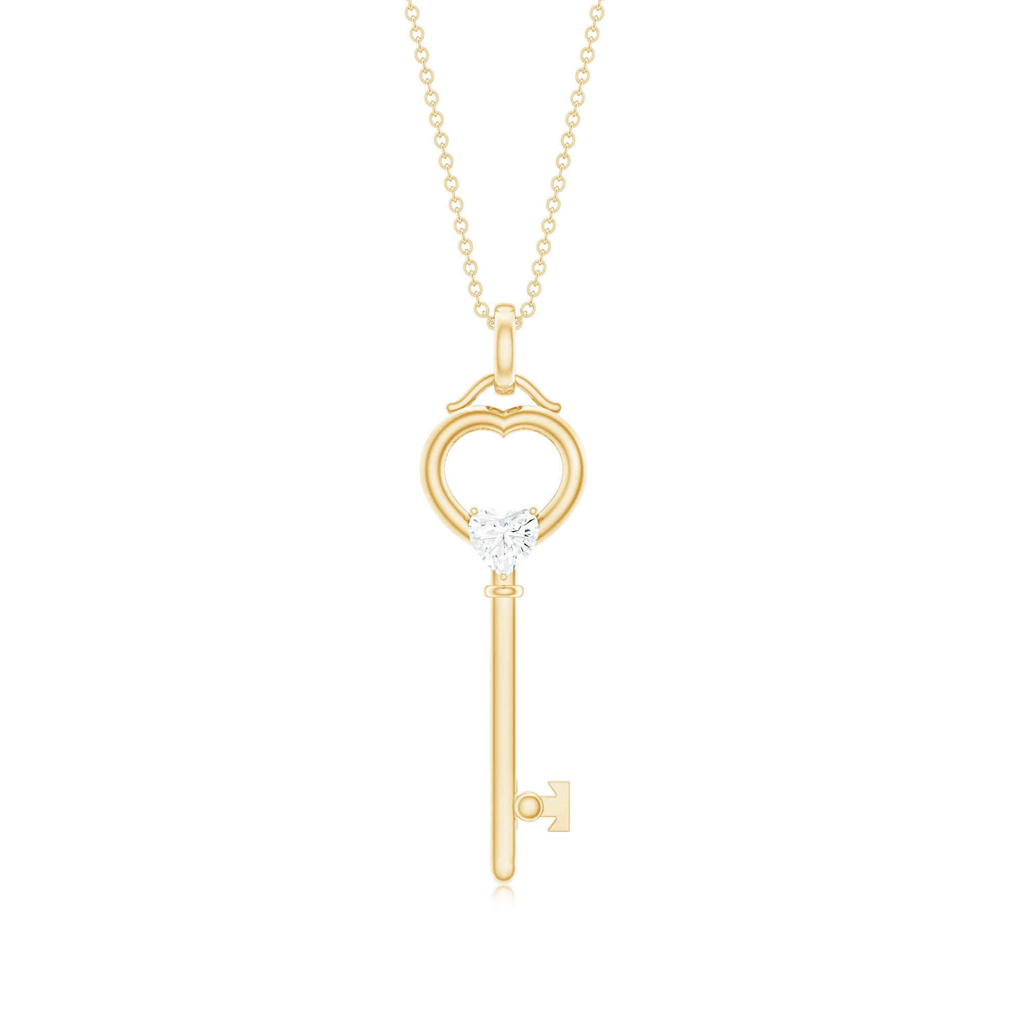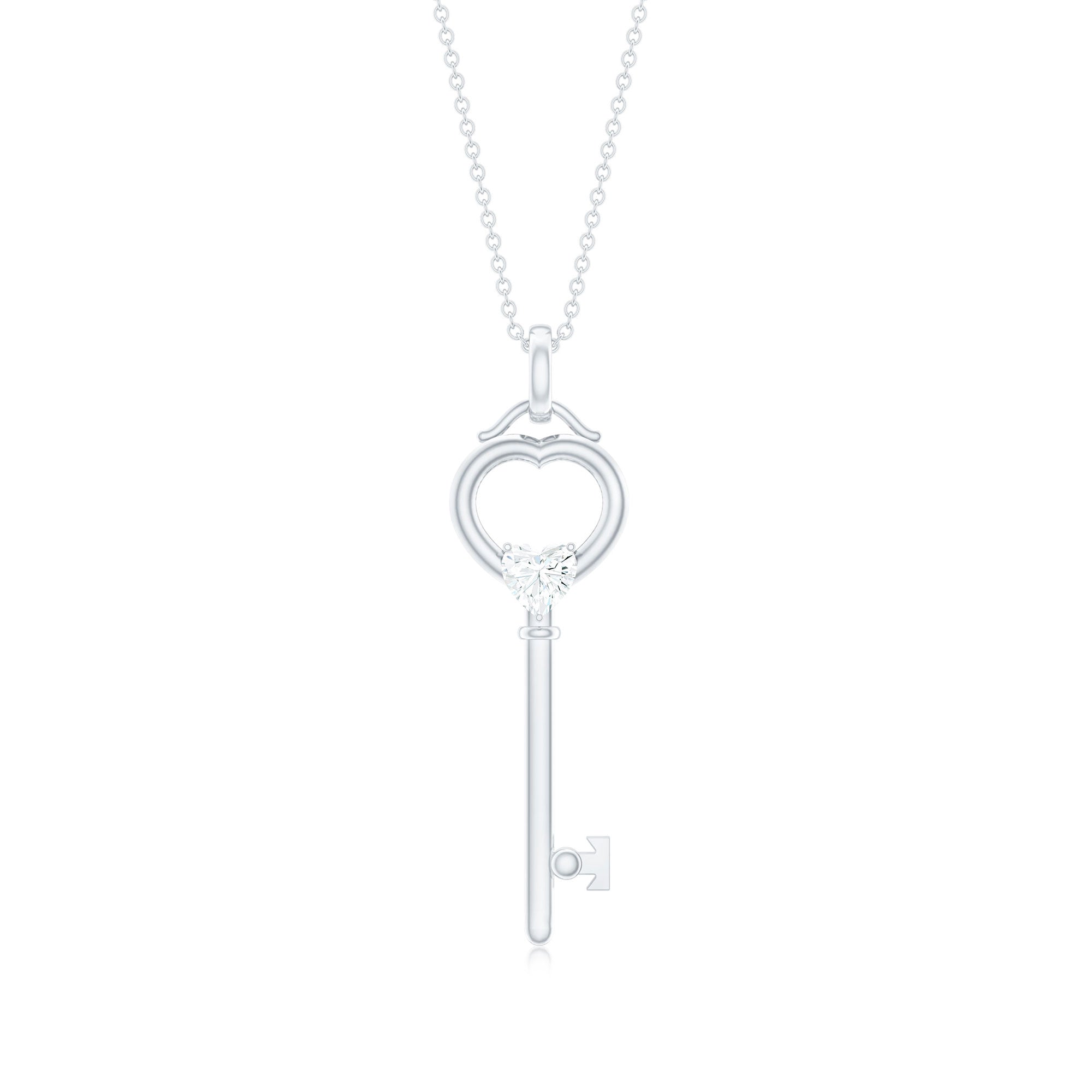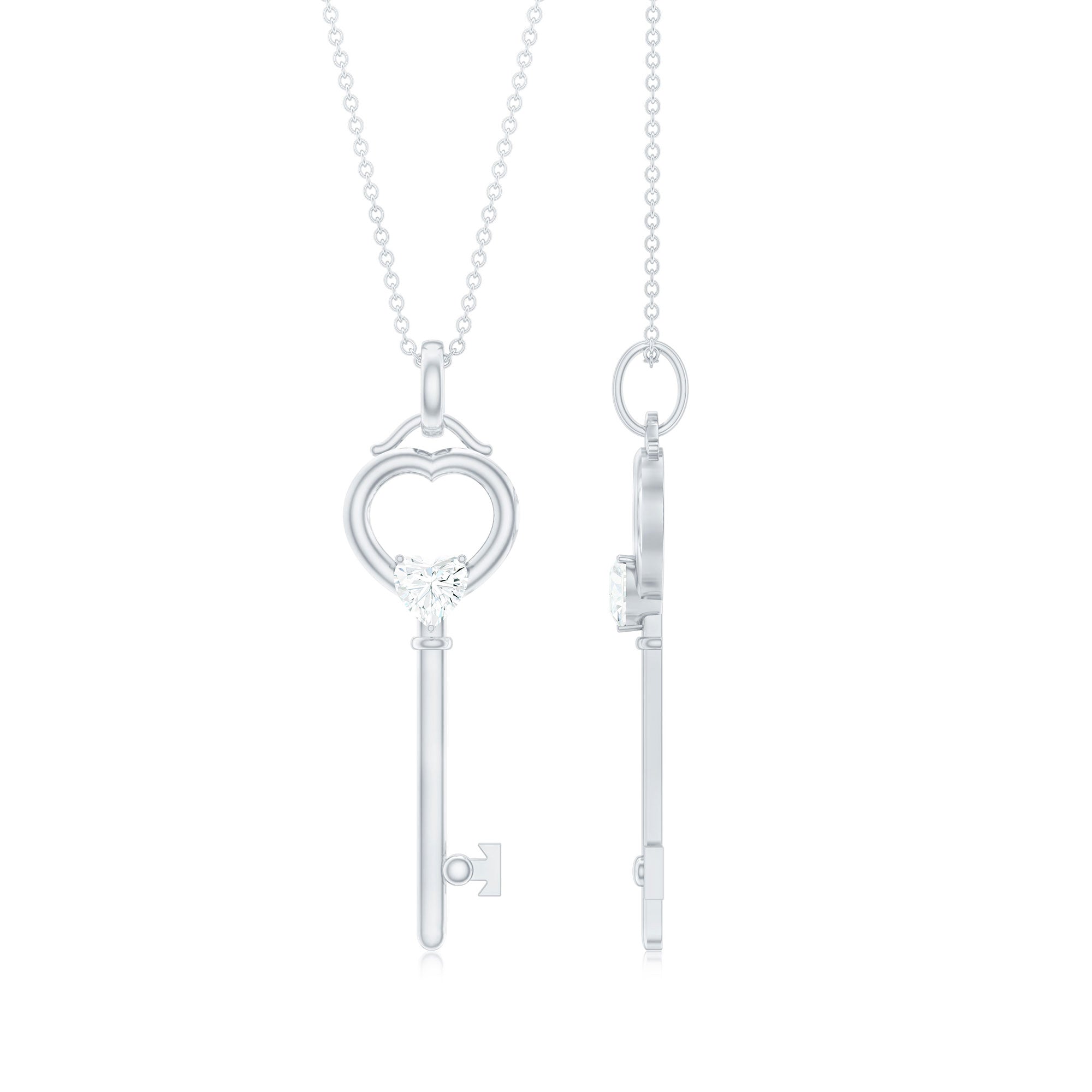 Unlock a world of love and style with this Key Pendant Necklace with Heart Design. Crafted with a 5 MM Heart Shape Lab Grown Diamond gemstone set in 3 Prong Setting, this Pendant Necklace exudes elegance and sentiment. The heart motif speaks of affection and emotion, while the key represents the power to unlock hearts. Whether youre gifting it to a loved one or wearing it as a personal statement, our Simulated Diamond Pendant Necklace adds a touch of romance and individuality to any outfit.