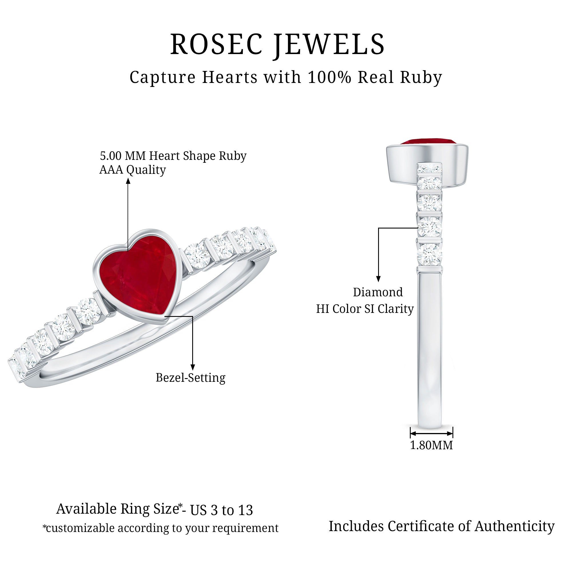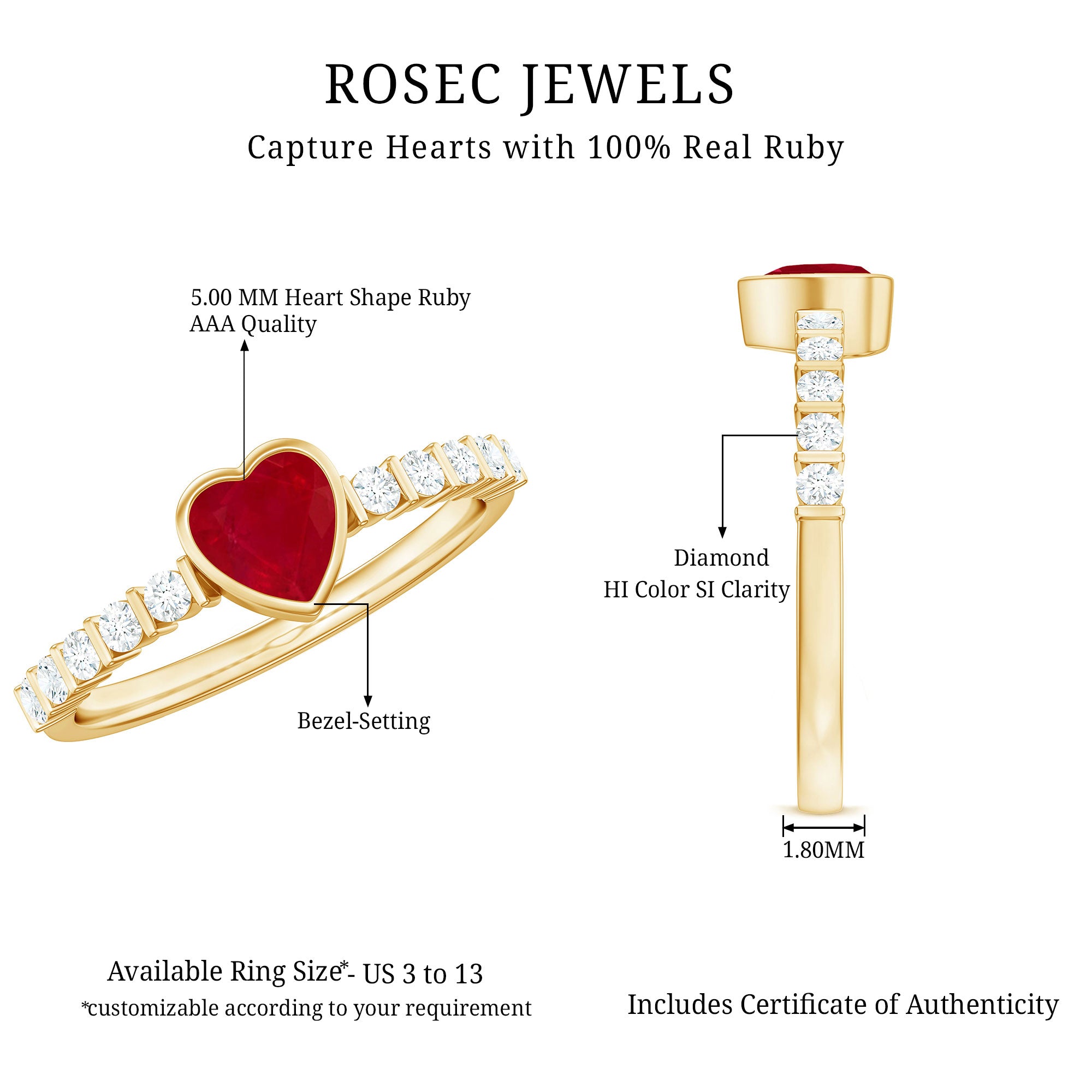 Heart Ruby Solitaire Engagement Ring with Diamond in Bezel Setting