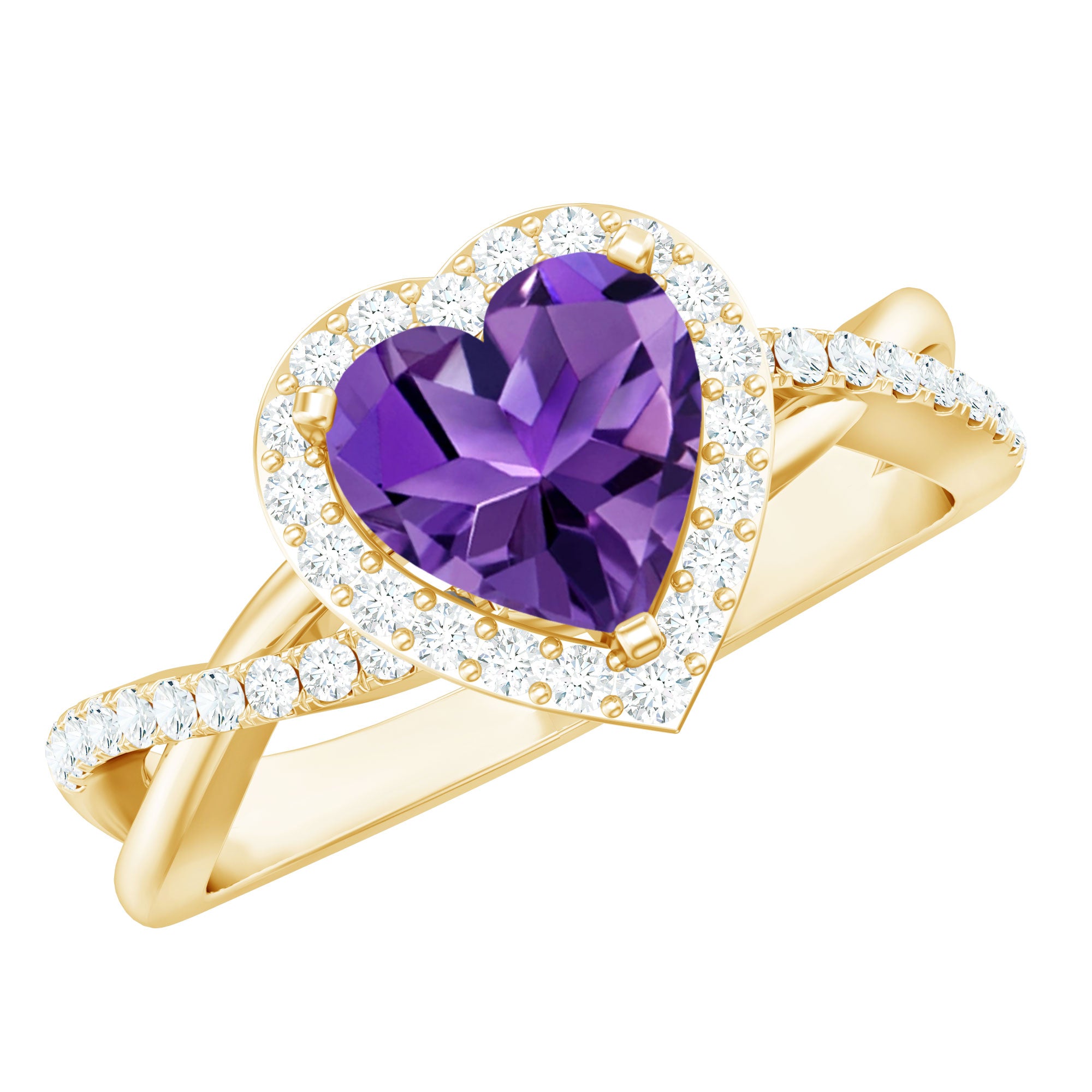 Heart Shape Amethyst Crossover Engagement Ring with Diamond