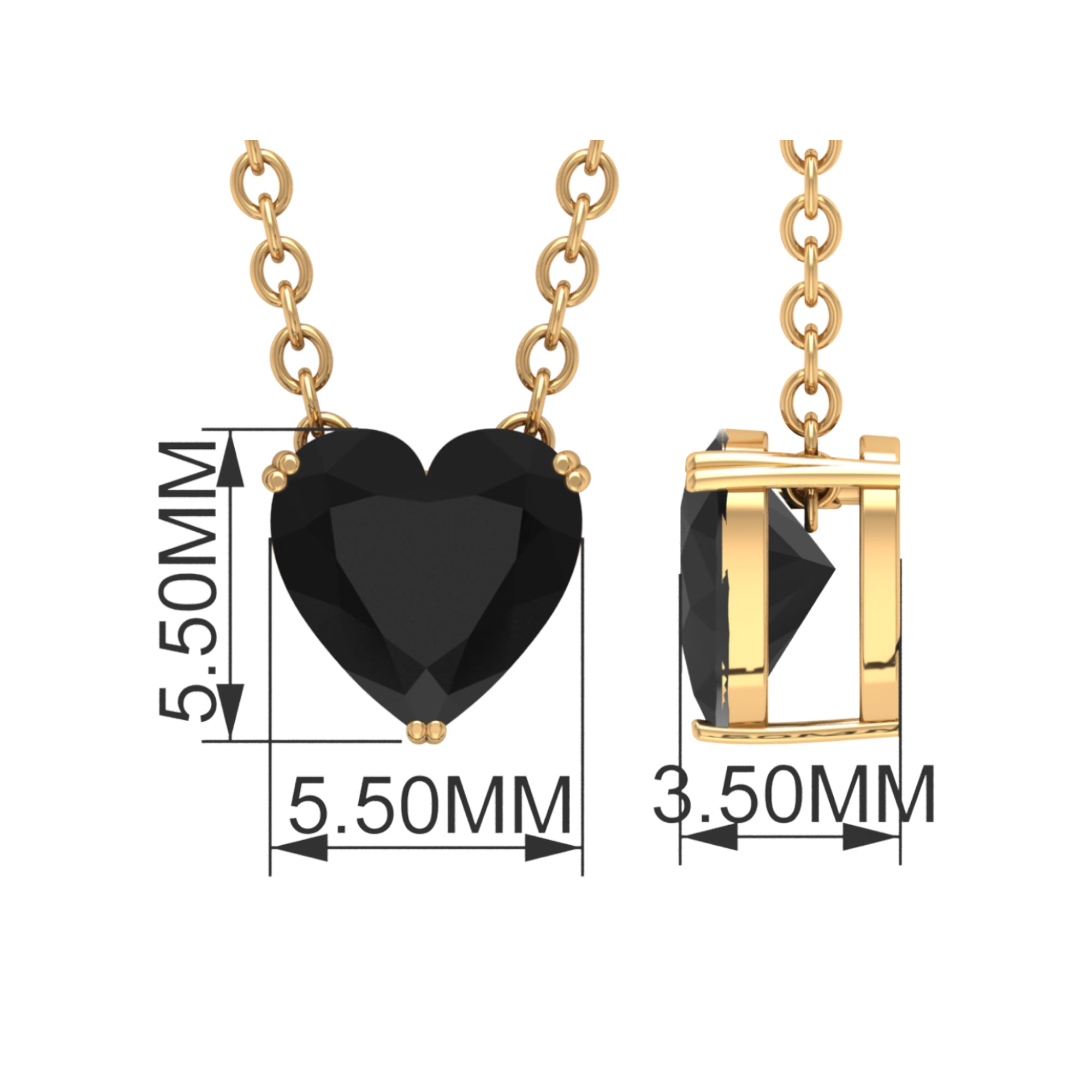 Heart Shape Black Onyx Solitaire Pendant Necklace