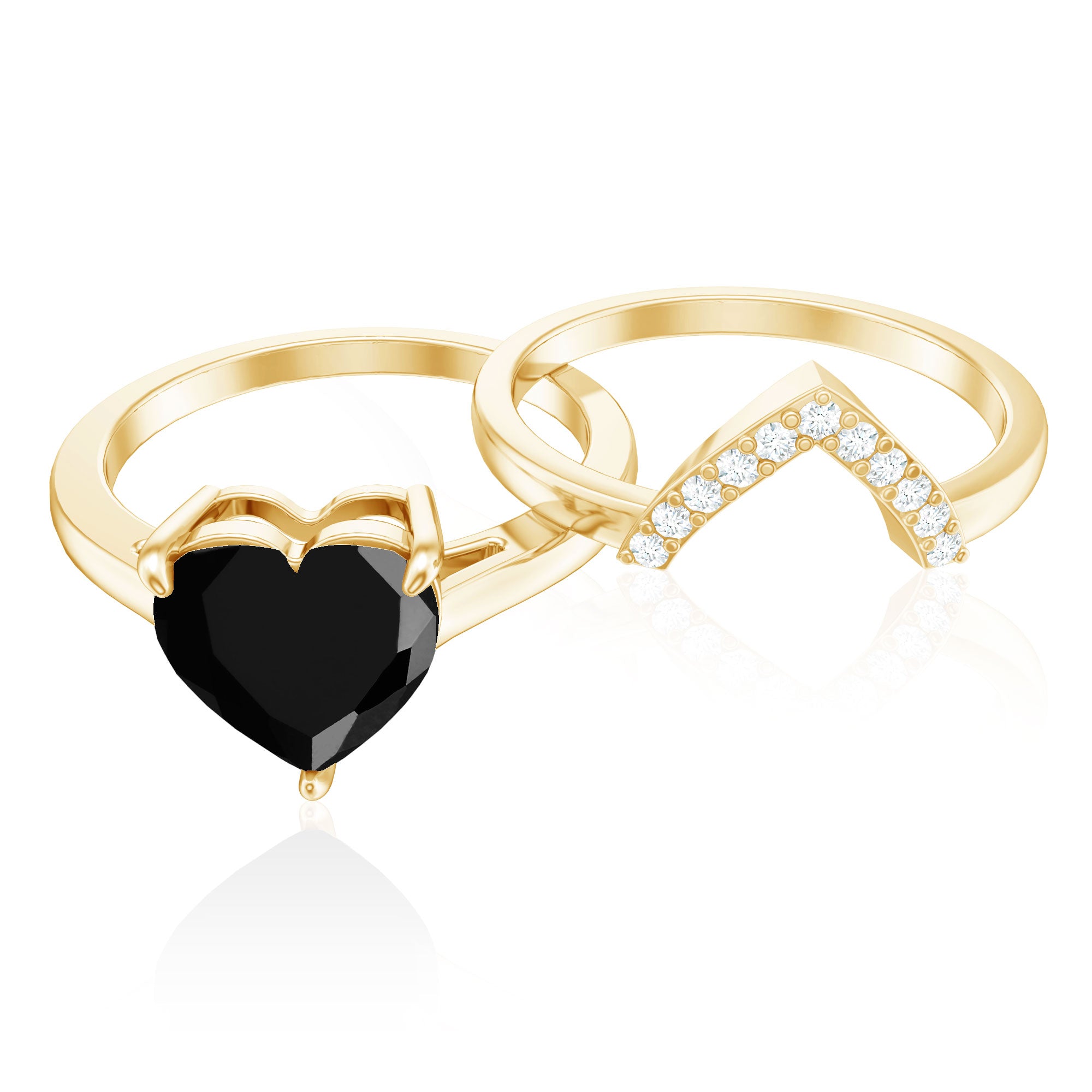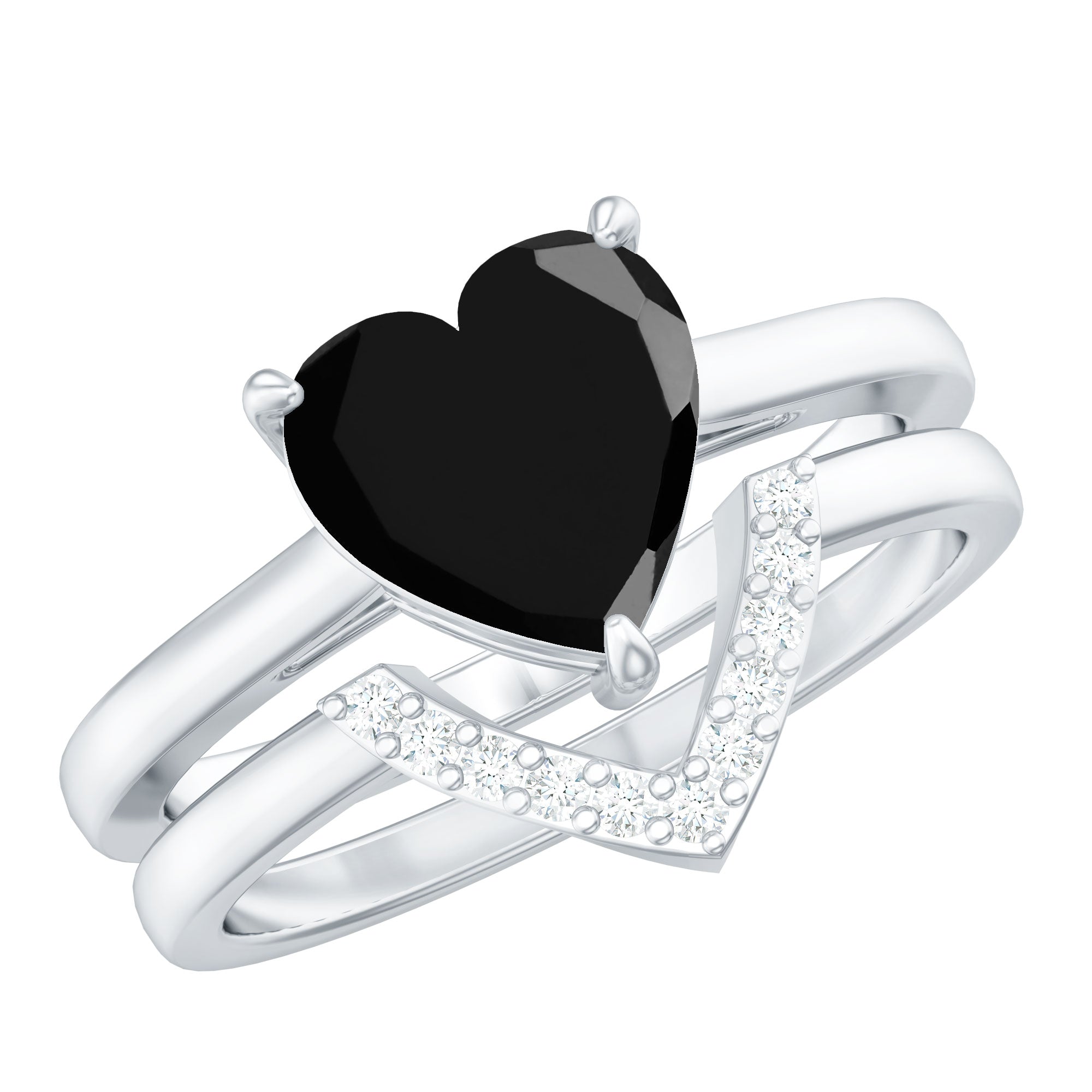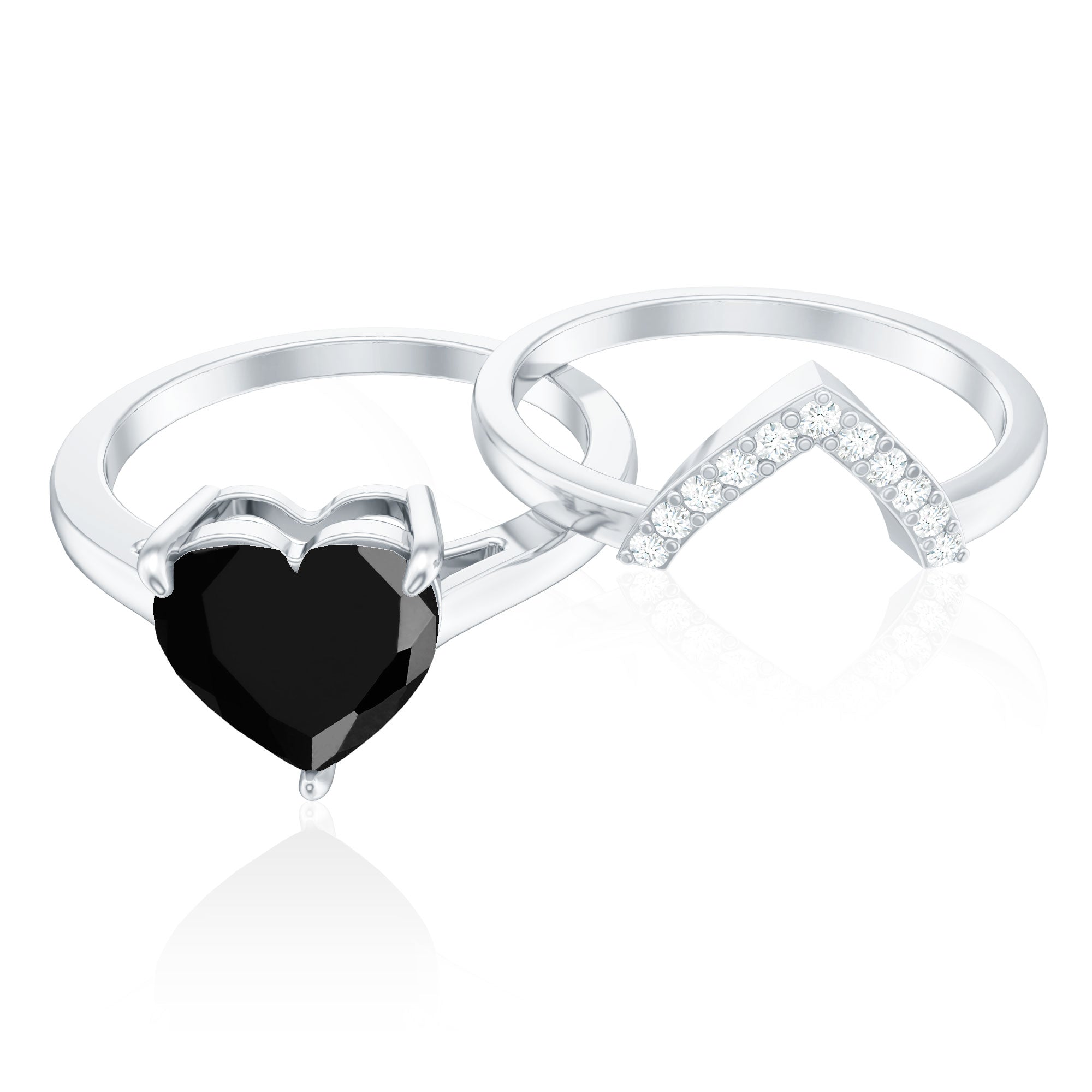 This enchanting Heart Ring Set is a perfect fit for your queen. The Heart Shape Black Spinel as Solitaire in Claw Setting and Diamond on V Shape Band.