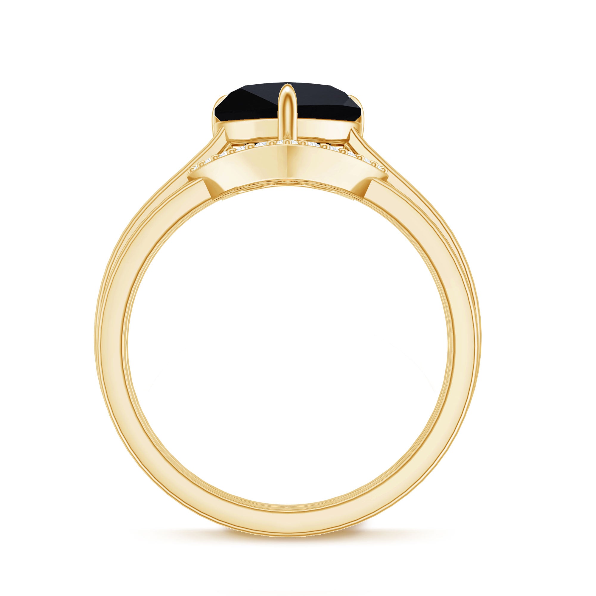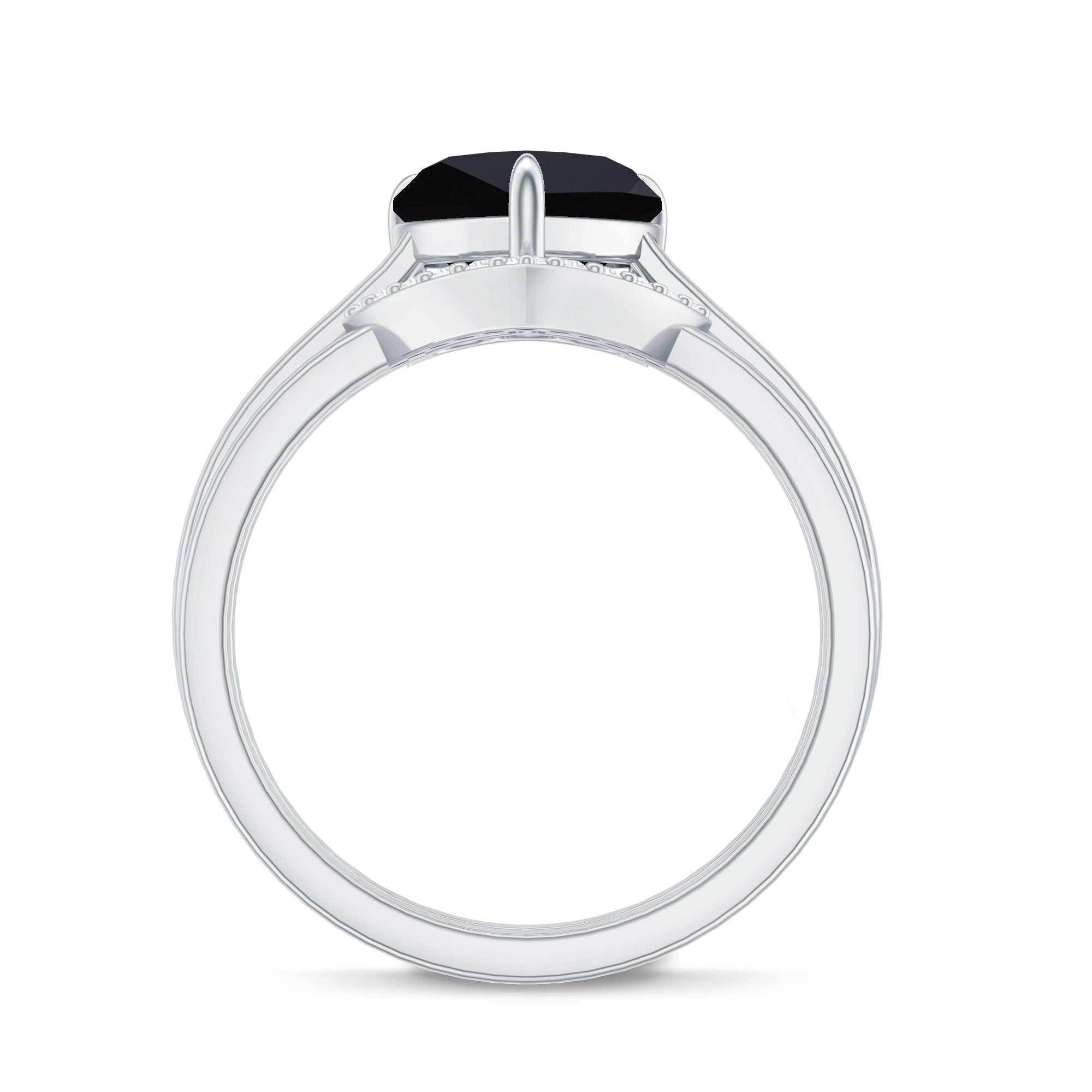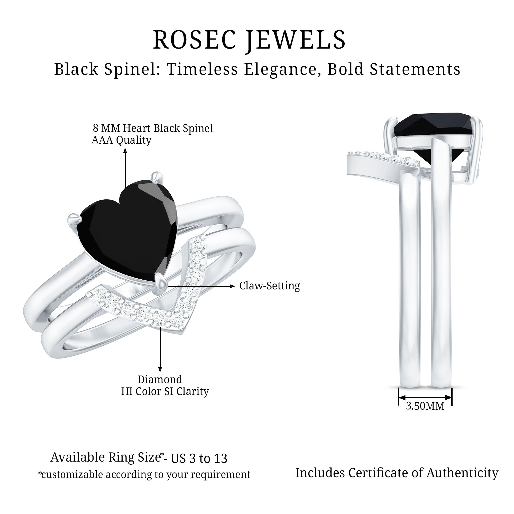 This enchanting Heart Ring Set is a perfect fit for your queen. The Heart Shape Black Spinel as Solitaire in Claw Setting and Diamond on V Shape Band.
