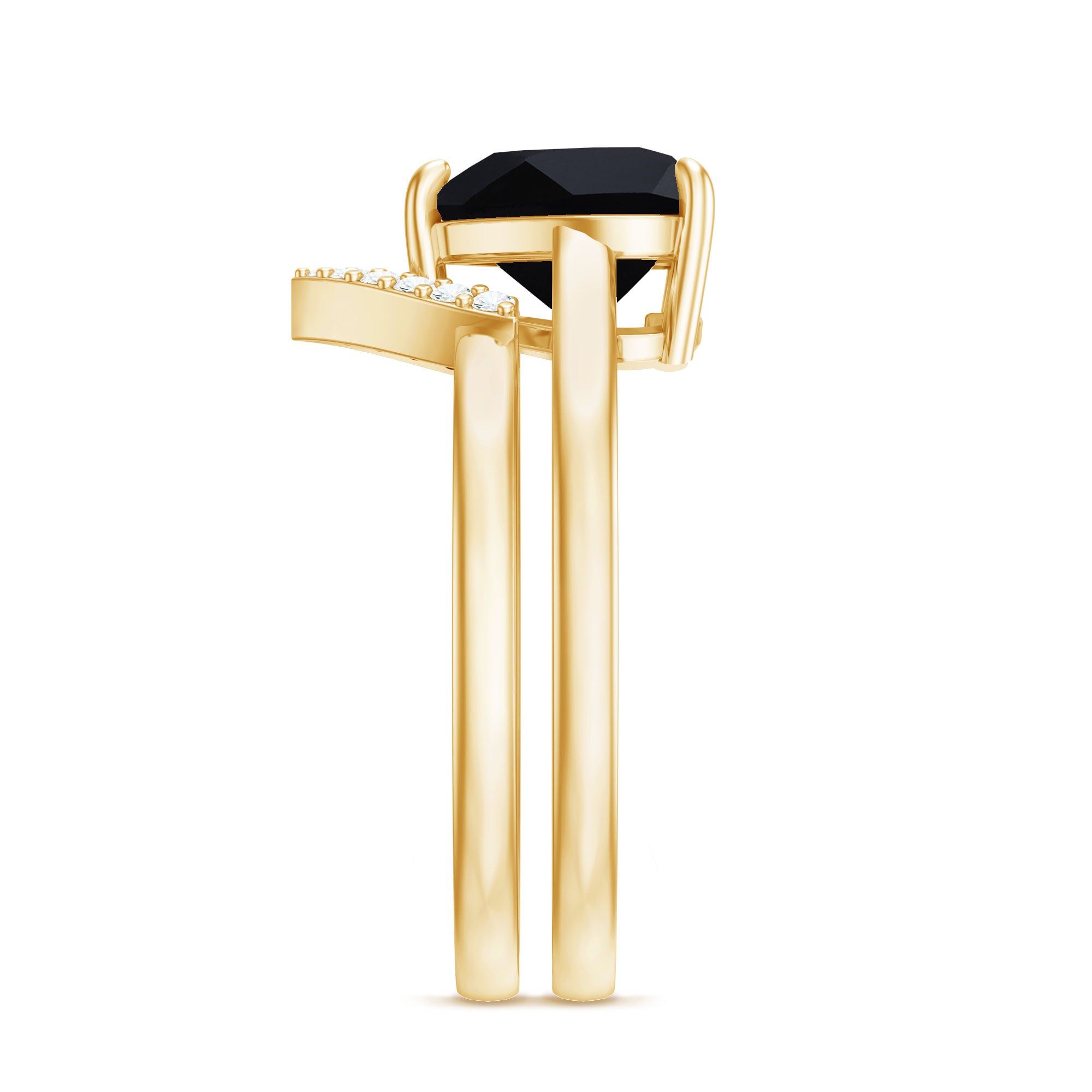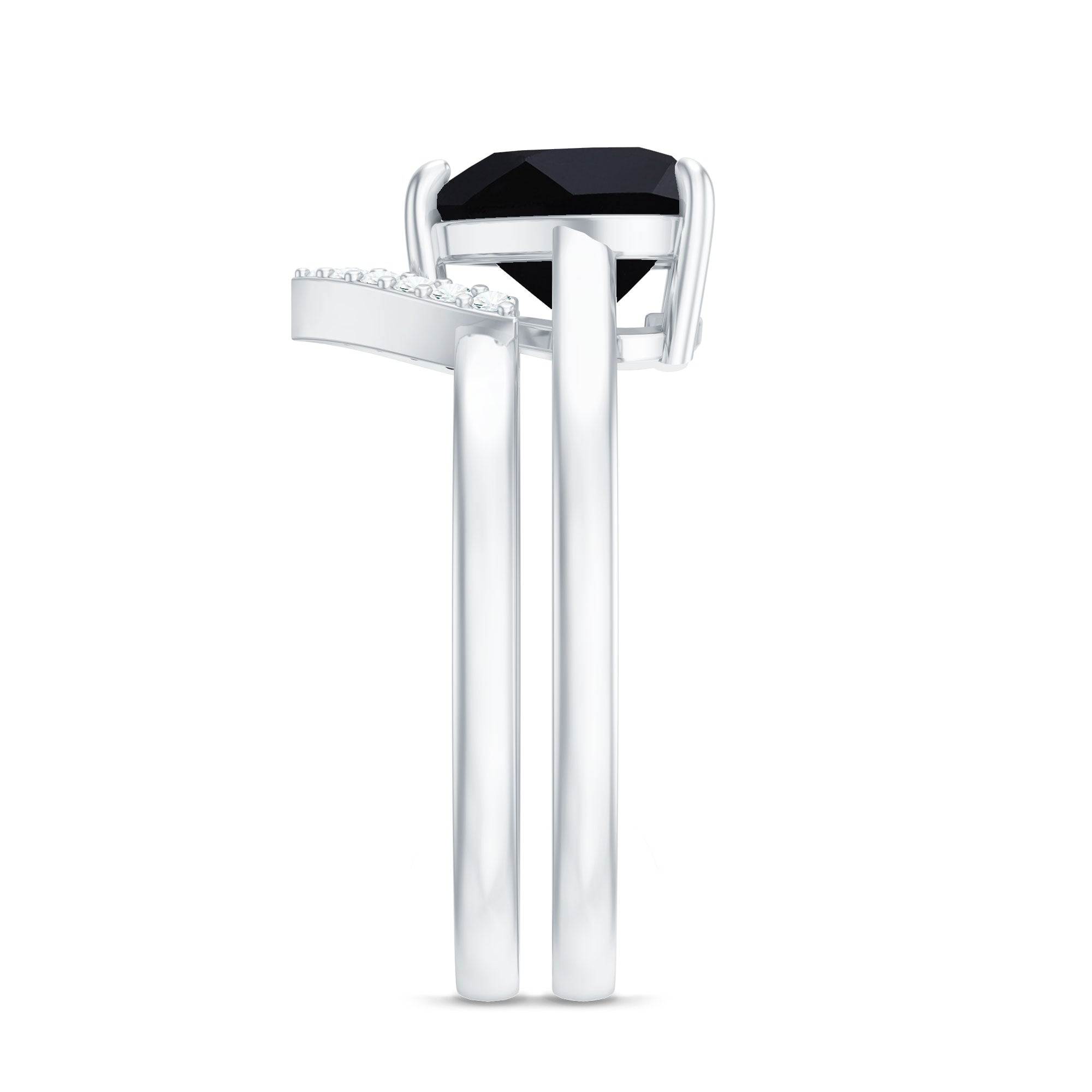 Heart Shape Black Spinel Ring Set with Diamond