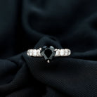 Heart Shape Black Spinel Solitaire Engagement Ring with Diamond