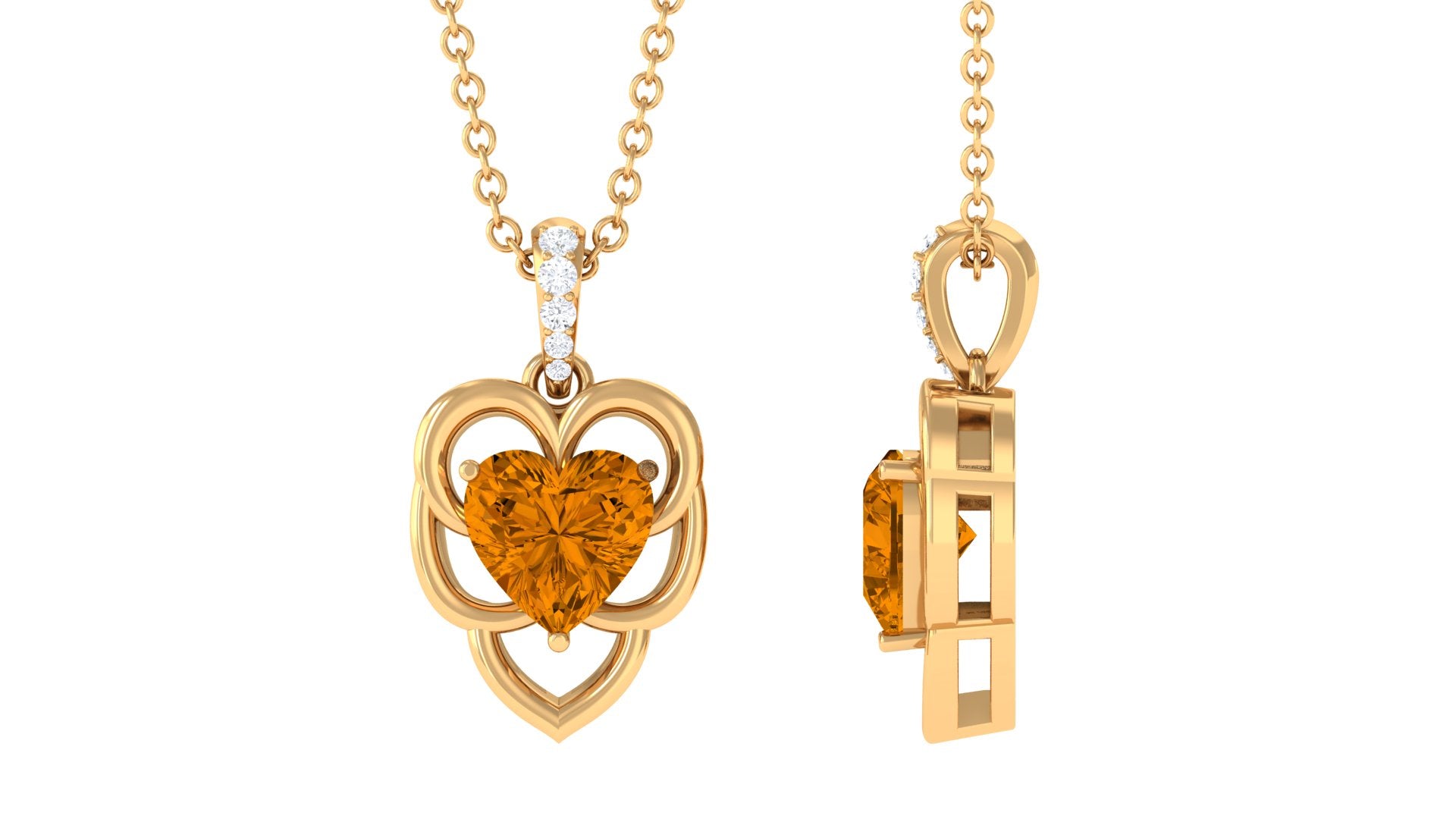 Heart Shape Citrine Pendant with Diamond Accent Bail