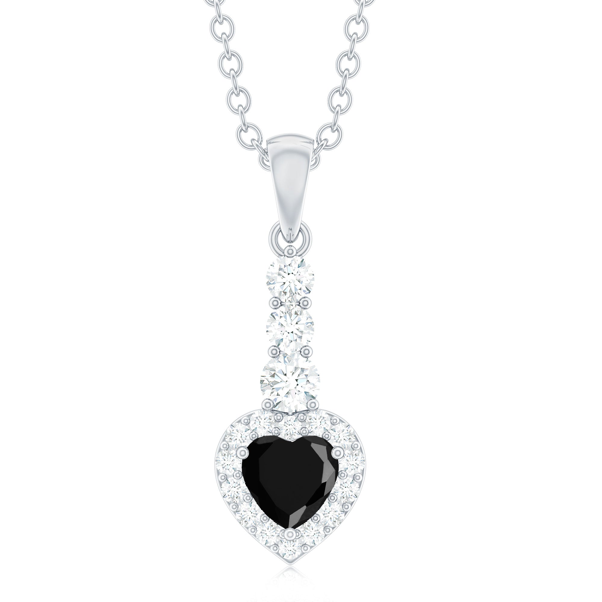 Heart Shape Created Black Diamond Drop Pendant with Diamond Accent
