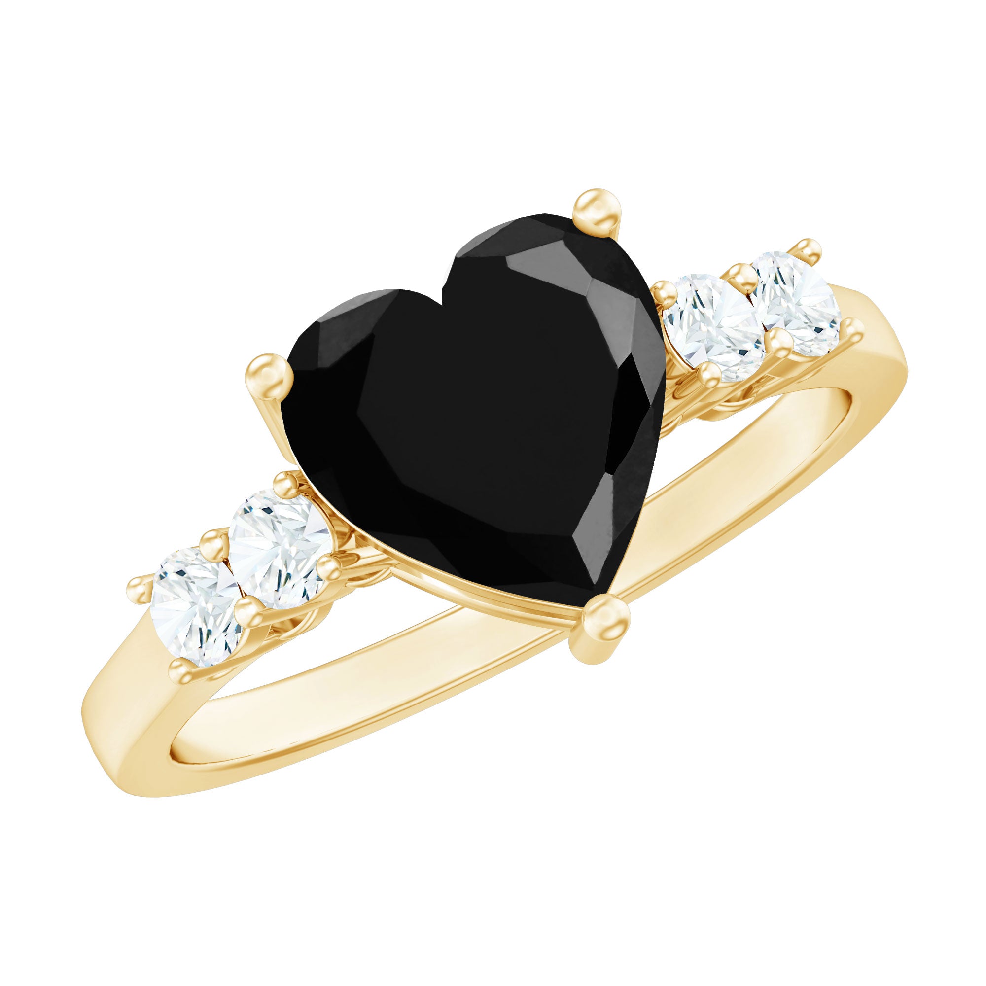 The Solitaire Promise Ring is a romantic and meaningful piece of jewelry that is perfect for a special occasion. This ring features a heart-shaped created Black Diamond in the center, with sparkling round Diamond stones on both sides. The created Black Diamond provides a bold and modern look, while the Diamond stones add extra sparkle and brilliance to the overall design. This ring is a beautiful symbol of love and commitment, making it a perfect choice for a promise or engagement ring.