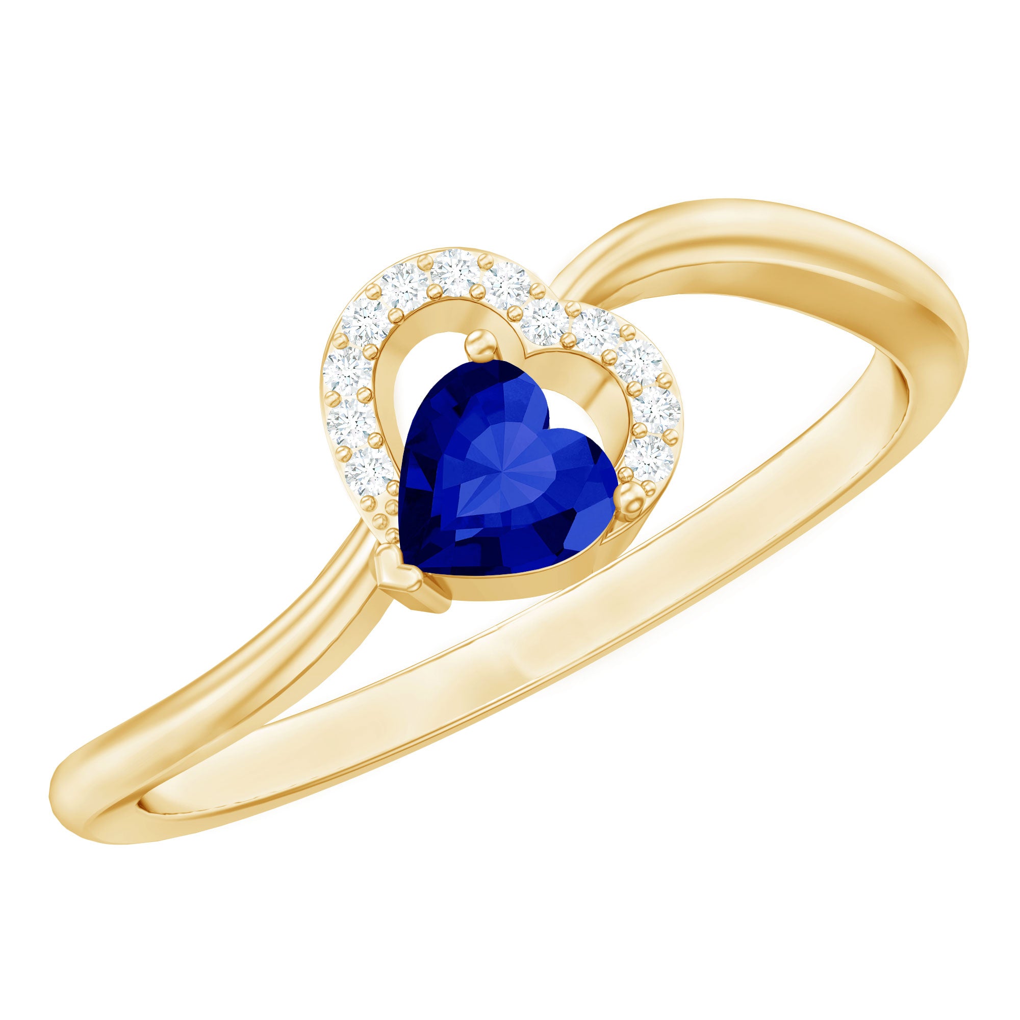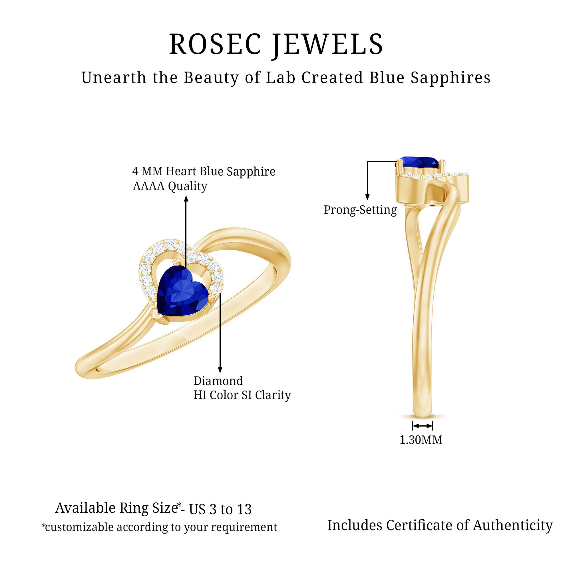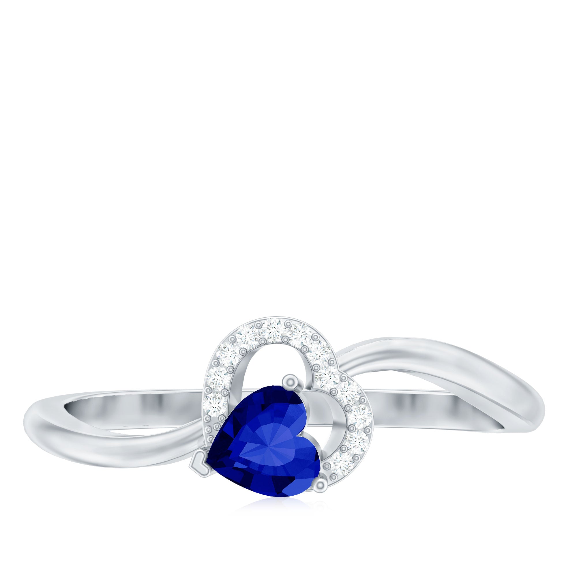 Heart Shape Created Blue Sapphire and Diamond Twisted Promise Ring